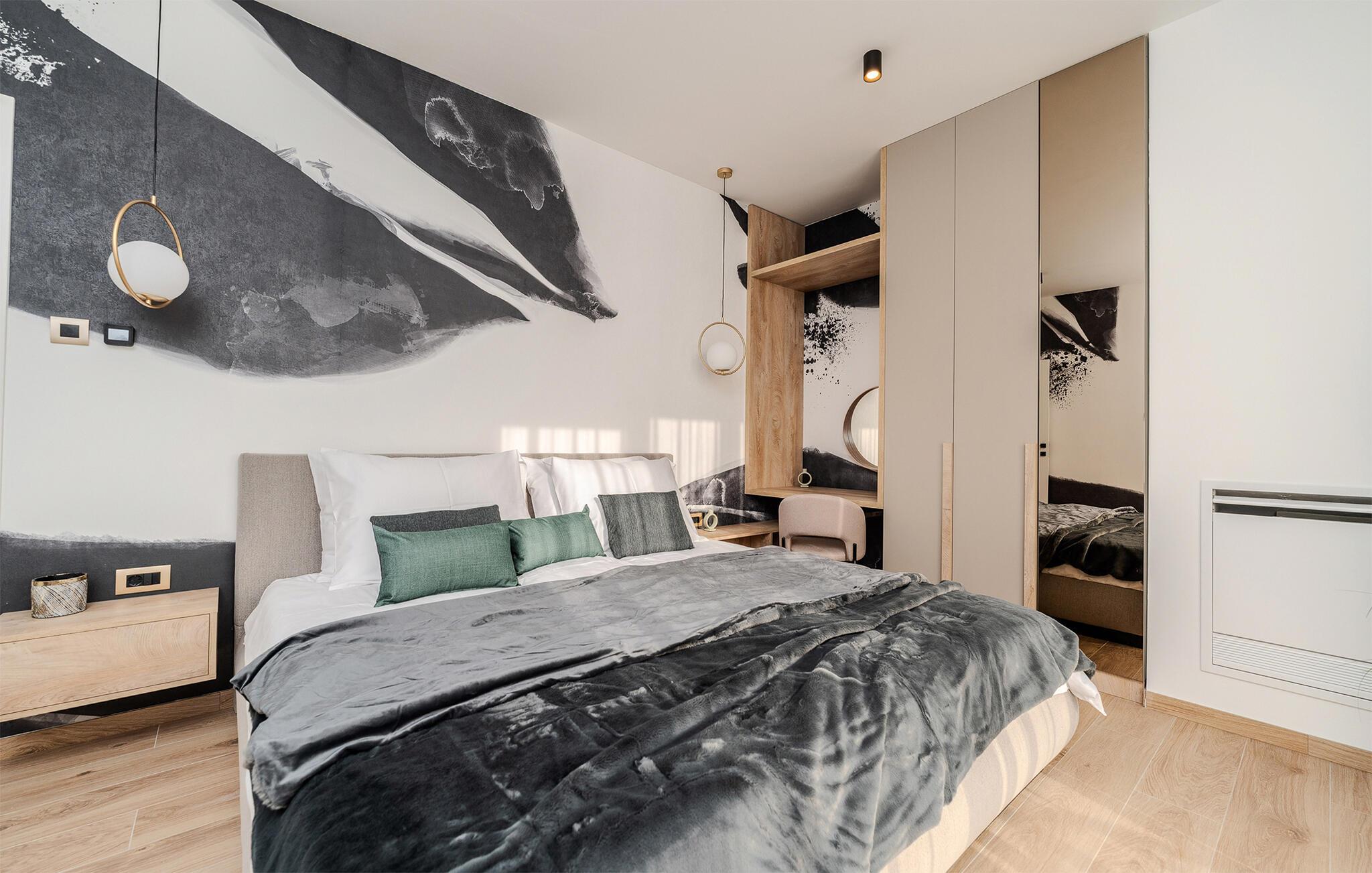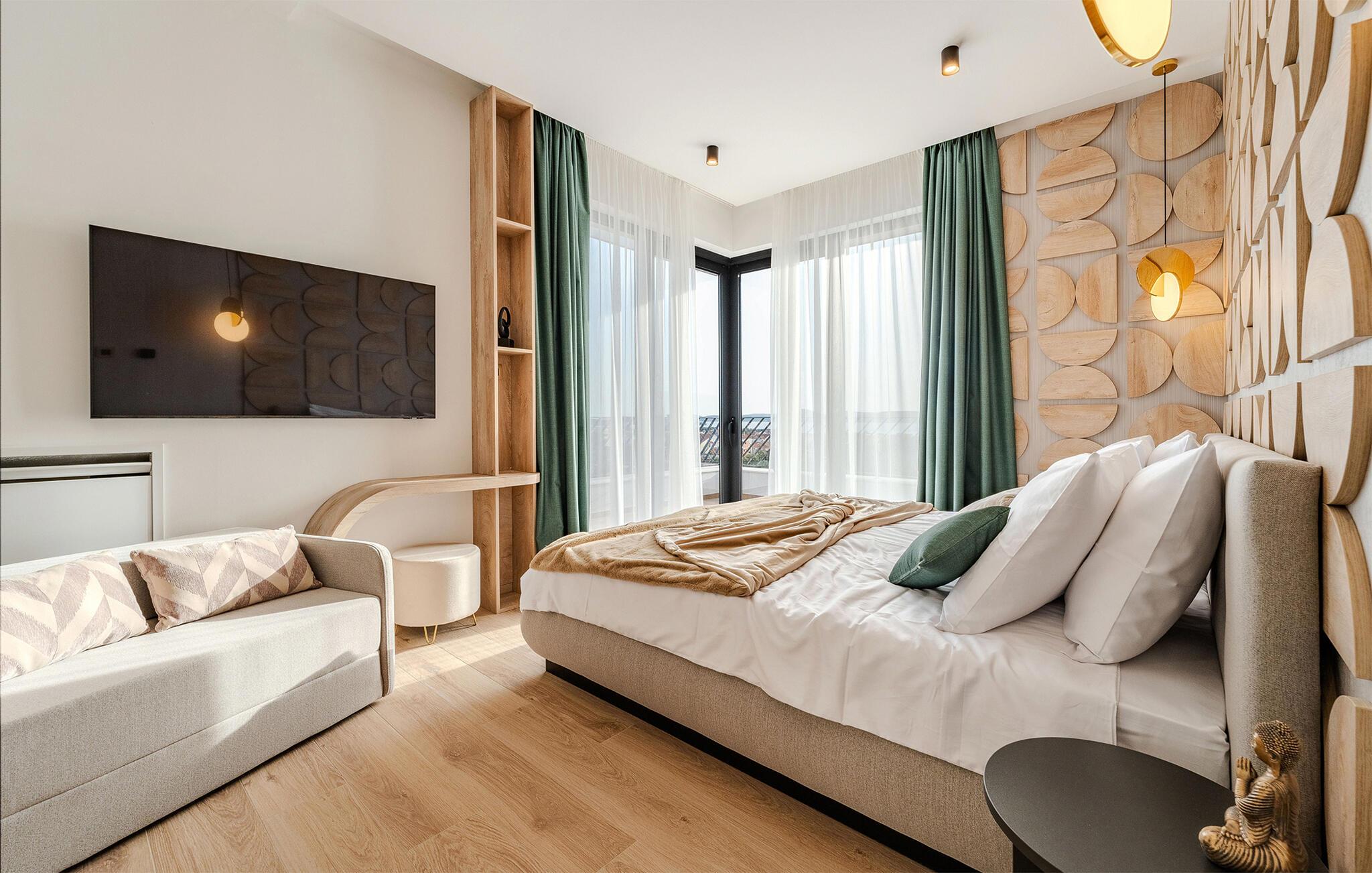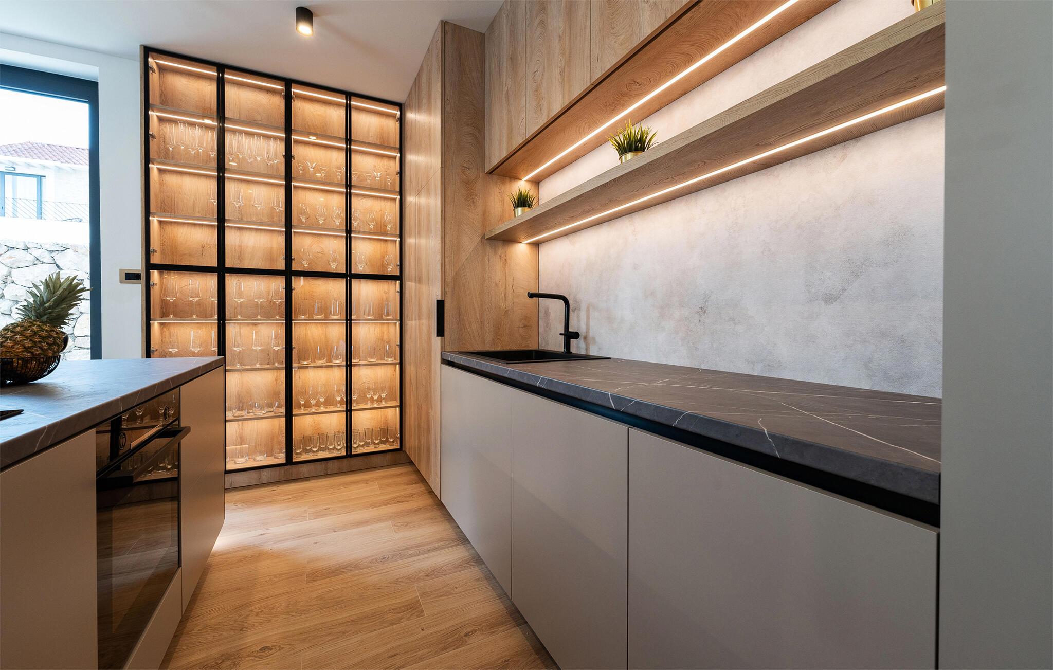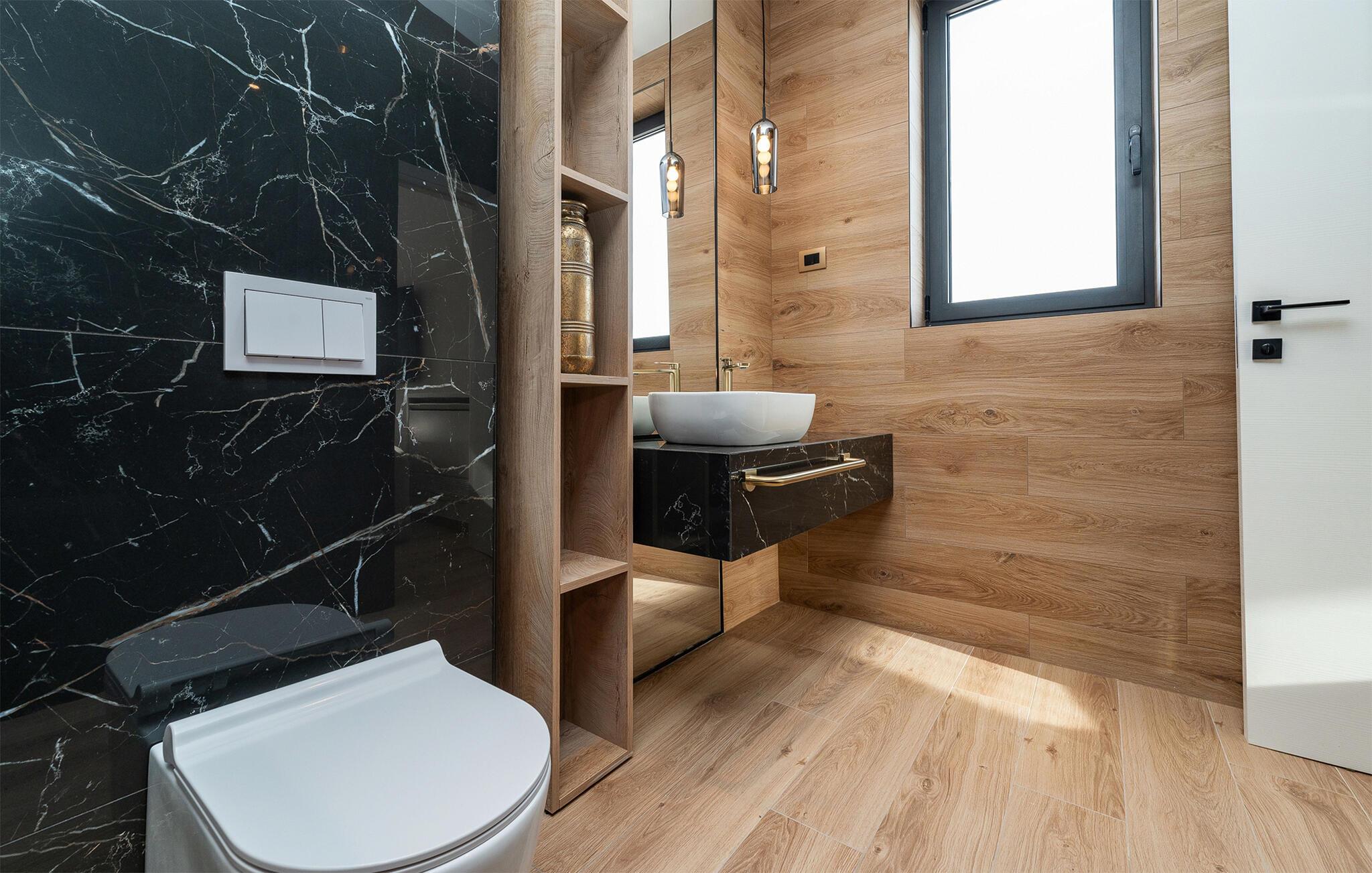 Der er lagt op til en ferie med alt, hvad hjerterne måtte begære, i denne rummelige luksusvilla ved Vodice. Med sine endog rigtig mange kvadratmeter og yderst komfortable er der lagt op til en ferie, hvor ingen kommer til at mangle noget; en ferie, hvor privatlivet kan nydes i soveværelserne med badeværelse en-suite, og hvor I kan nyde mange sociale stunder i de flot indrettede opholdsrum. Interiøret fremtræder virkelig lækkert med sans for detaljen, rene linjer og møbler af højeste kvalitet, så jeres ferie bliver til en både sjov og afslappende leg på tværs af generationerne. Sved igennem i saunaen, sæt jer godt til rette i spabadet eller udfordr hinanden ved bordtennisbordet, inden I sætter jer godt til rette med et glas vin i sofaen.