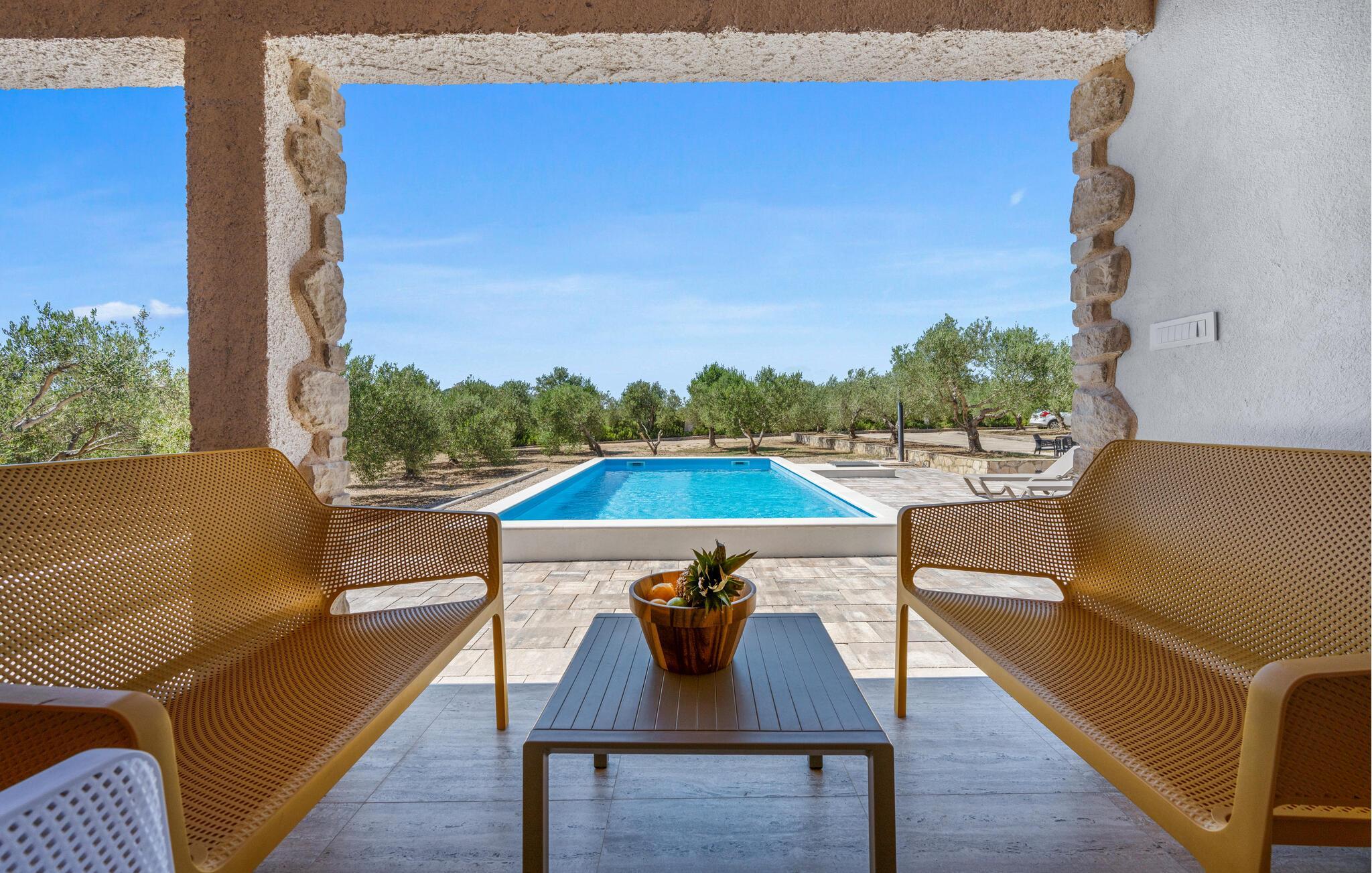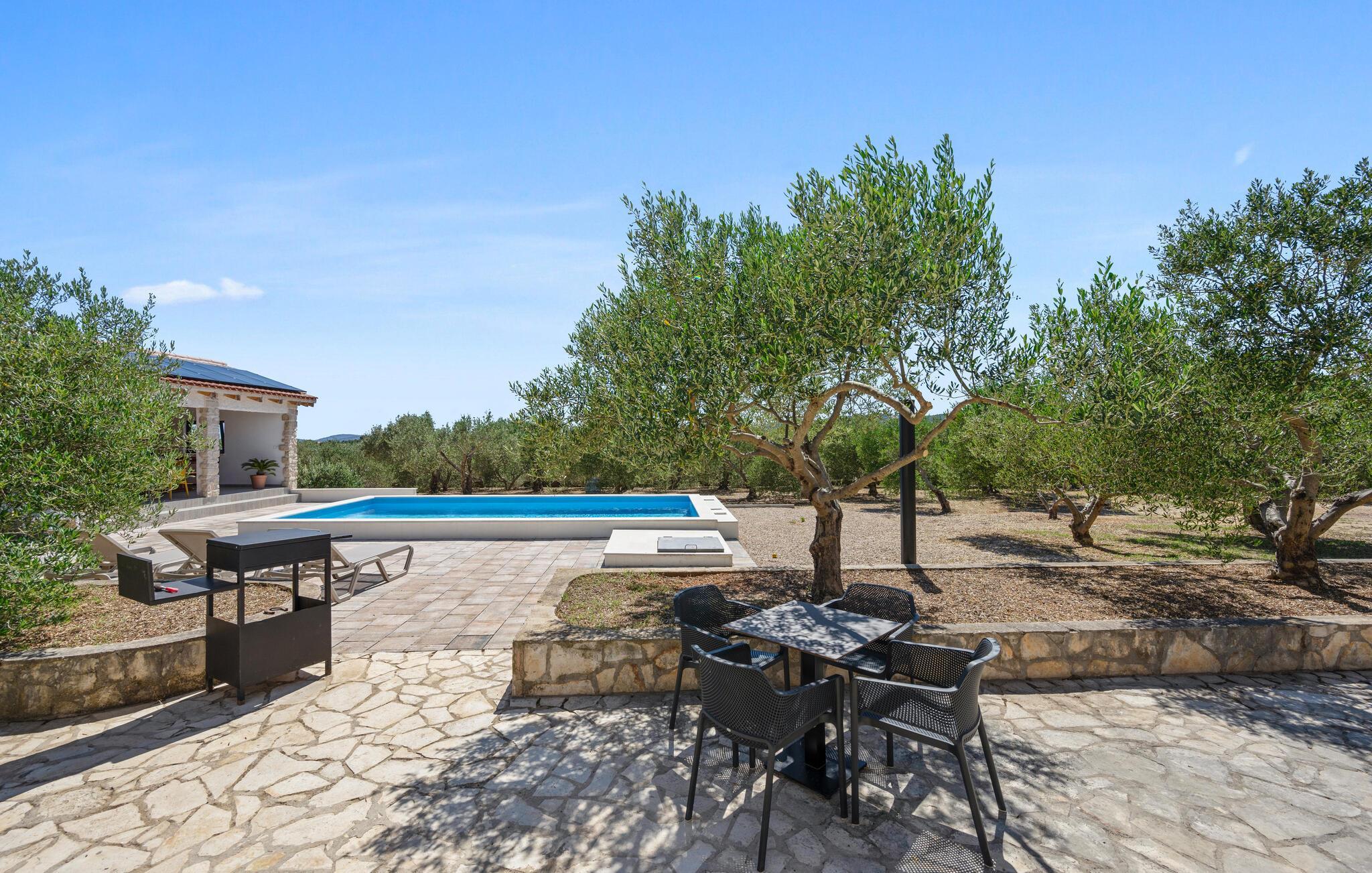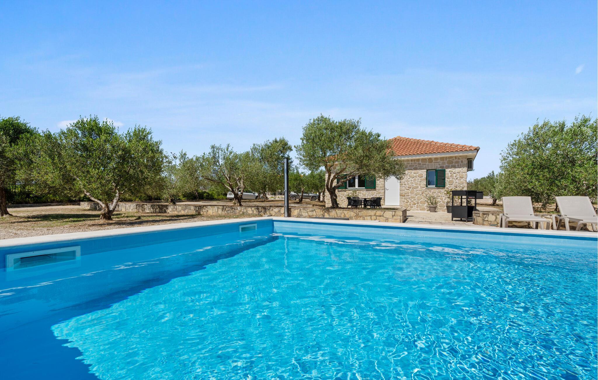 Dette charmerende feriehus med pool og sommerkøkken ligger i udkanten af Vodice.