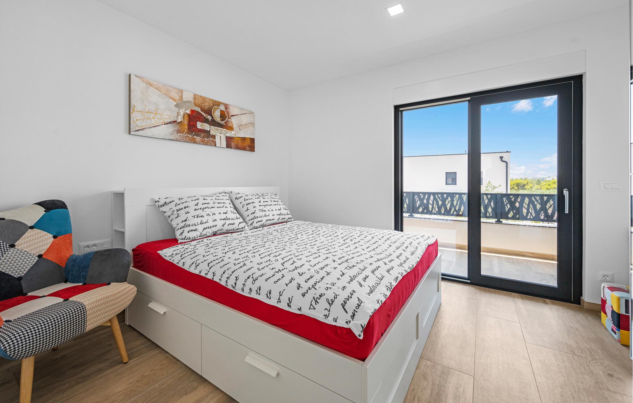 Træd ind i jeres helt eget feriehus, hvor middelhavscharme møder moderne stil. Husets lyse rum giver en følelse af frihed, mens de nøje udvalgte møbler og naturfarverne skaber en afslappet, harmonisk atmosfære. Det rummelige hus giver jer de optimale værelser på to etager til at slappe af om natten eller til at nyde sociale stunder i den åbne stue i stueetagen.
