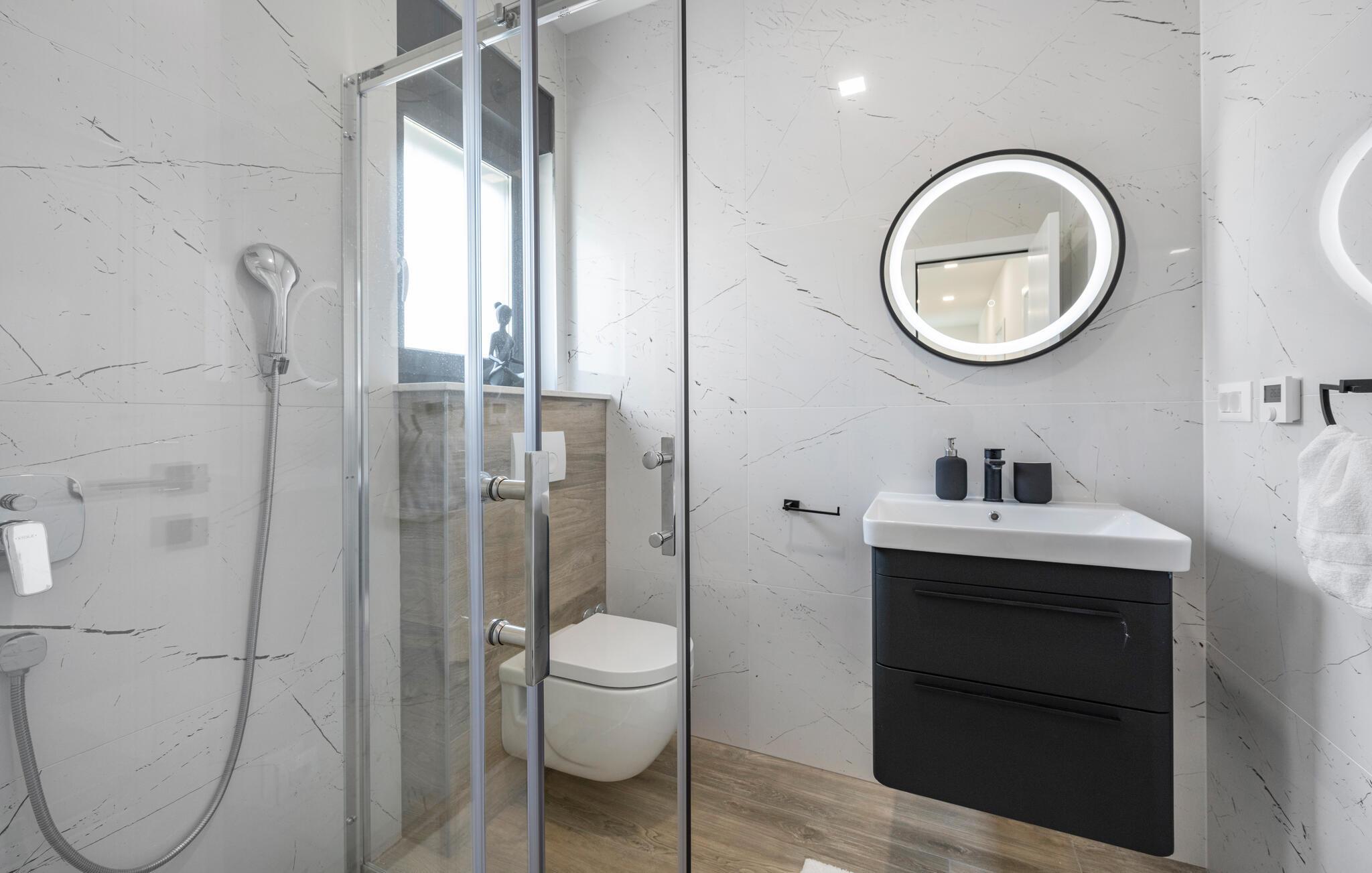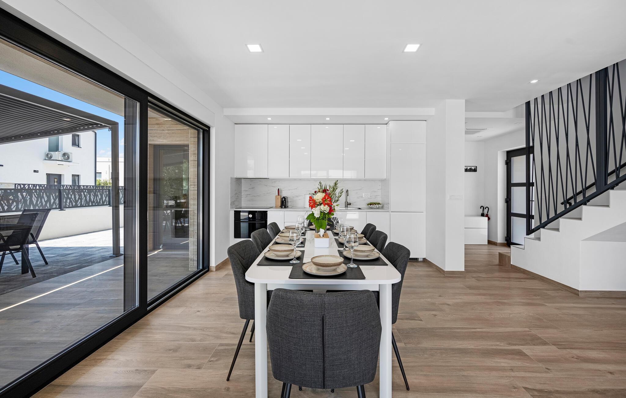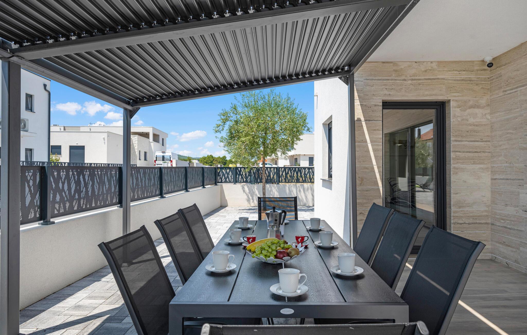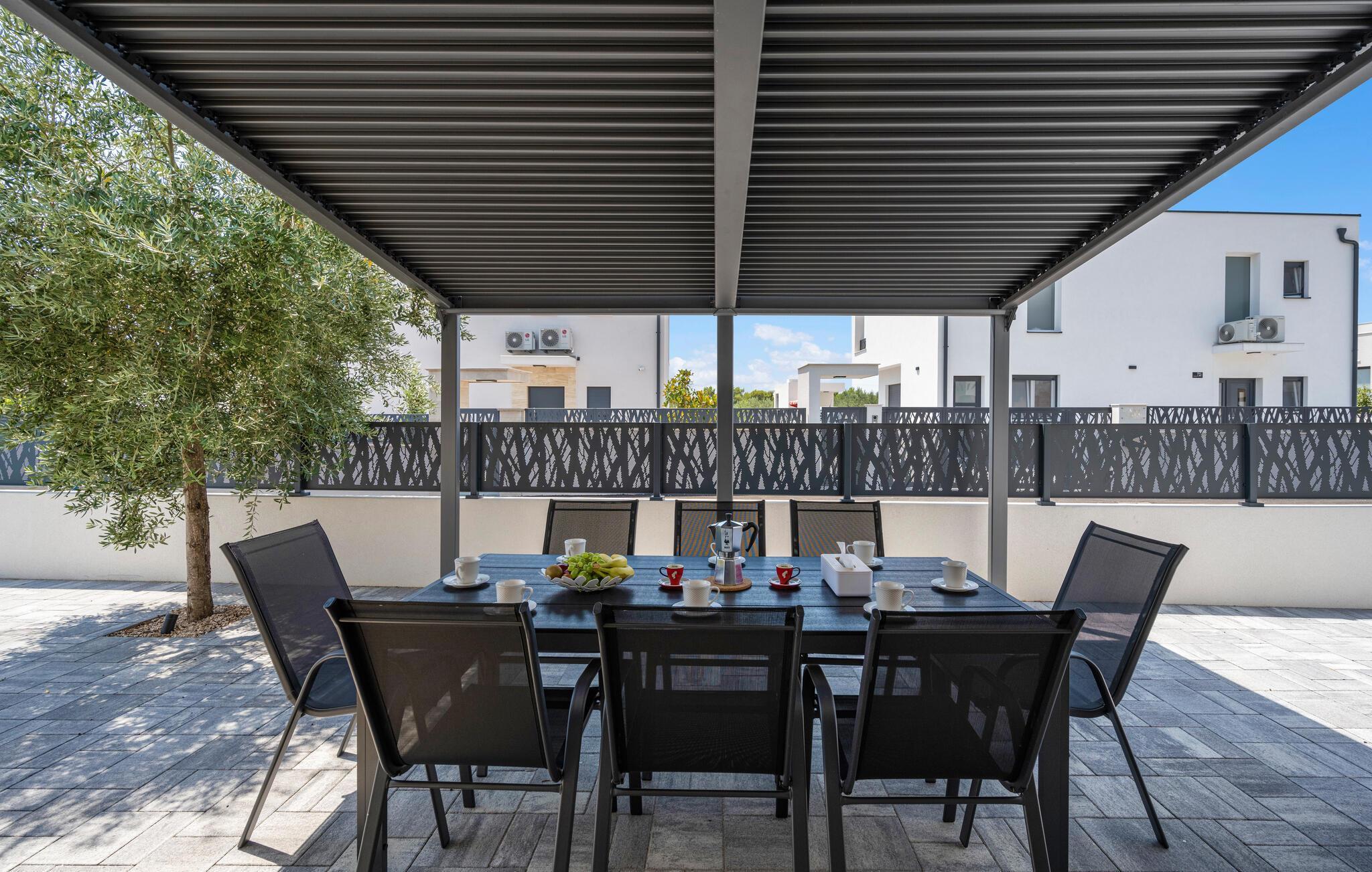 På den store terrasse eller balkon kan I slappe af og nyde duften af kystbrisen. Nyd luksusen ved den private pool, på solterrassen og i sommerkøkkenet til en grillmiddag. Der er kun en smuk gåtur til det turkise hav, så I kan se frem til den perfekte blanding af afslapning og aktivitet – altid med havet som jeres faste baggrund.