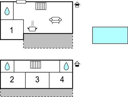 Badeværelse (nr. 2) - WC. Varmt og koldt vand. Bruser