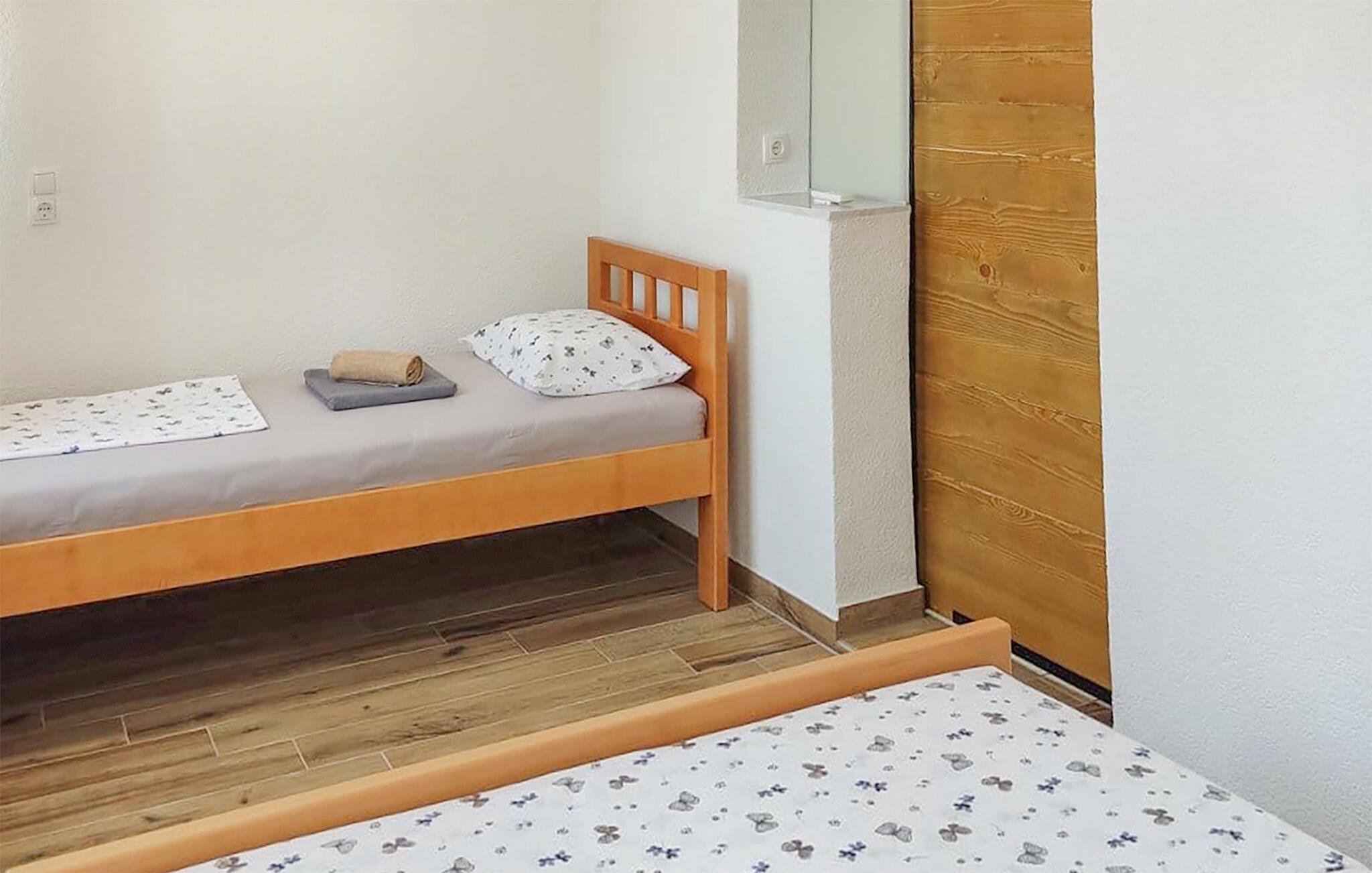 Denne lyse og praktiske ferielejlighed byder jer velkommen i hjertet af Vodice. I denne moderne lejlighed vil I opleve en perfekt familieferie, der byder på alle bekvemmeligheder. Kun få hundrede meter fra det livlige centrum er lejligheden let tilgængelig og byder stadig på et roligt tilflugtssted. De lyse, praktiske værelser er stilfuldt indrettede og skaber en behagelig atmosfære, der lægger op til afslapning. Her kan I sidde hyggeligt sammen efter en dag på stranden eller bruge det praktiske køkken til at lave mad sammen. Den gennemtænkte indretning garanterer, at I straks vil føle jer hjemme. Vodice er et sandt ferieparadis med en række aktiviteter for hele familien. De nærliggende strande lægger op til at bade og solbade, mens strandpromenaden med restauranter og barer lægger op til at blive hængende. Gæsterne kan udforske området på cykler eller nyde vandsport som kajaksejlads eller jetski. Den charmerende gamle bydel med sine historiske bygninger er også et besøg værd. De nærliggende nationalparker Krka og Kornati er optimale til dagsture og garanterer jer betagende naturoplevelser og uforglemmelige eventyr.