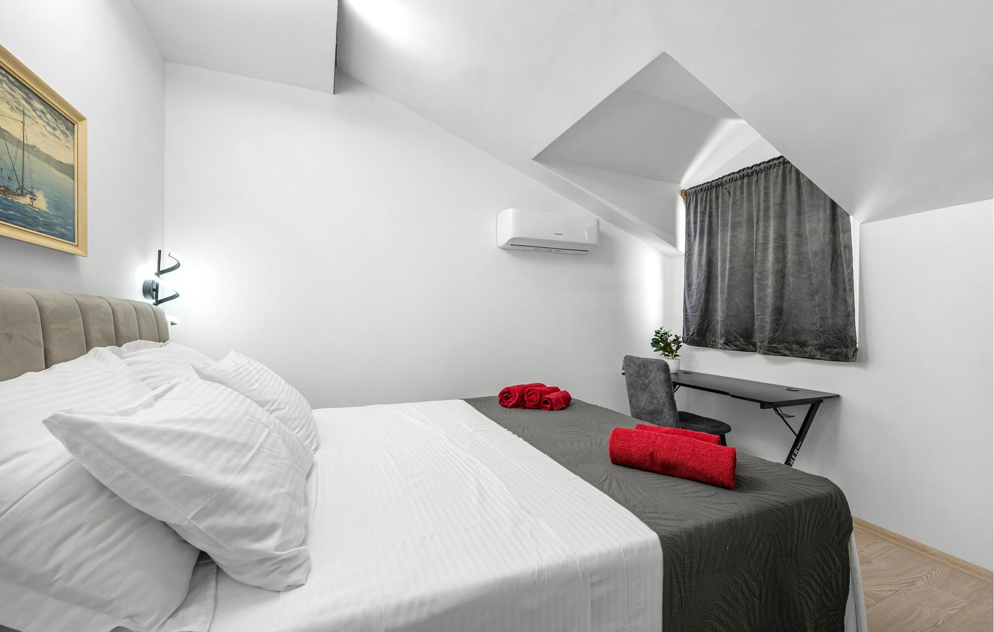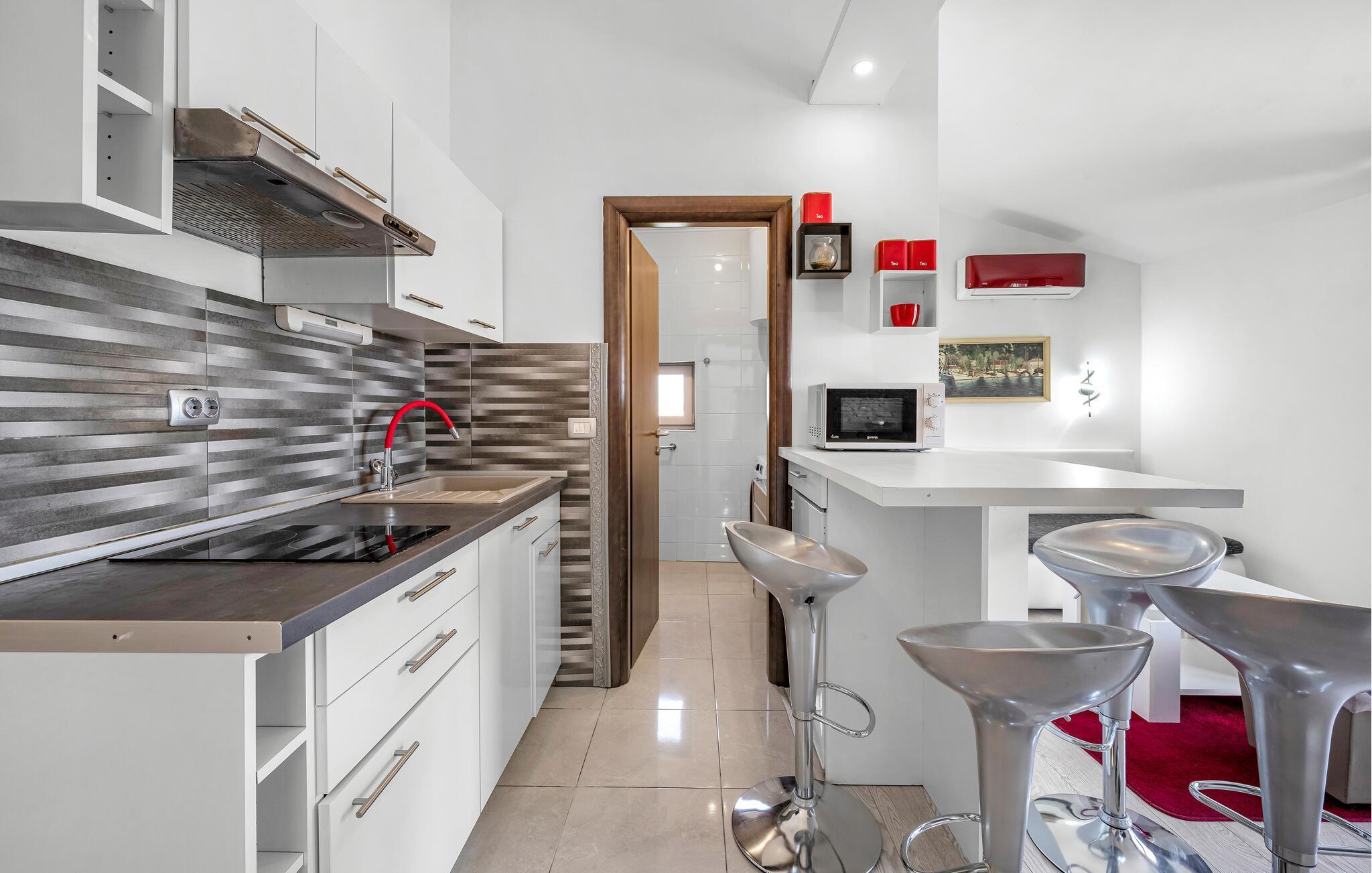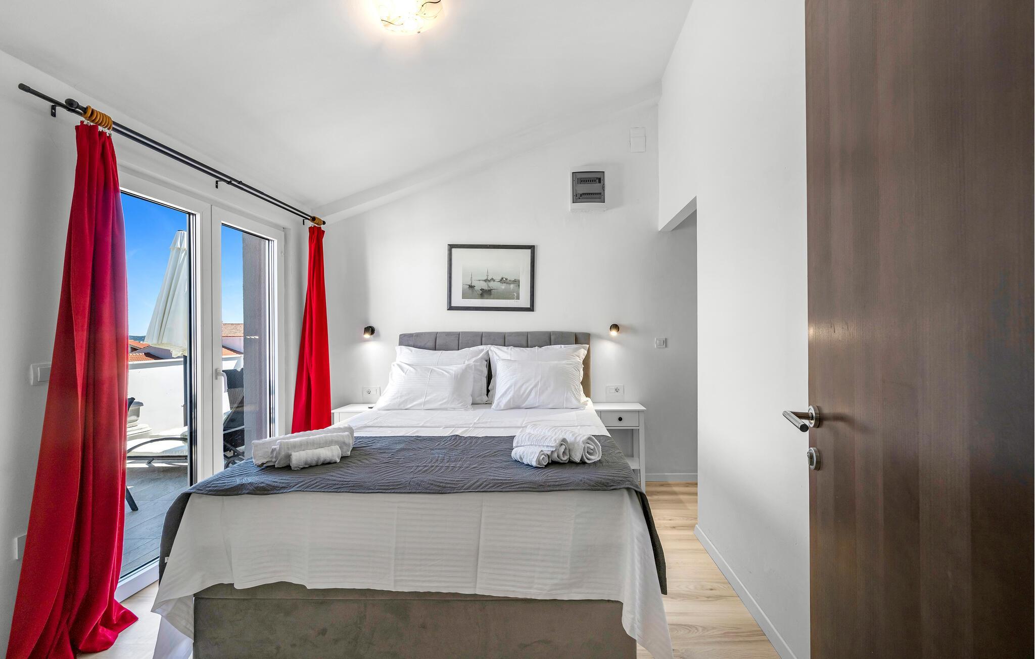 Dette indbydende apartment i Vodice byder på en hyggelig atmosfære, der straks får jer til at føle jer hjemme. Her finder I alt, hvad I skal bruge for en afslappende ferie. Tilbring hyggelige aftener på terrassen, og brug grillen til en rolig afslutning på dagen. Nogle af værelserne har endda en balkon, hvor I kan nyde den friske luft.