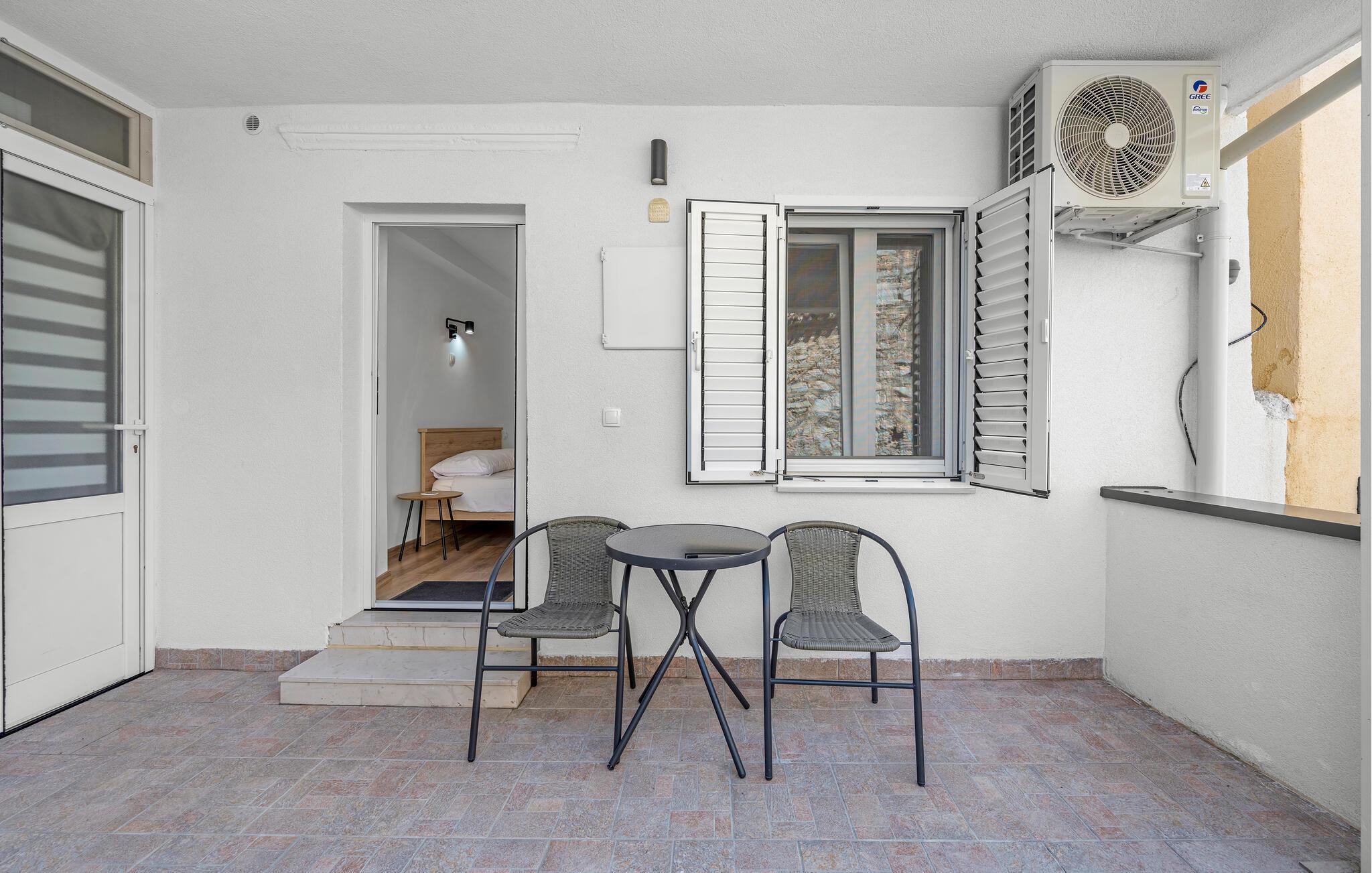 Denne komfortabelt møblerede studiolejlighed byder jer velkommen midt på Vodices havnepromenade og lægger op til at tilbringe afslappende dage, hvor alt er inden for gåafstand. Forkæl hinanden med lækre måltider, planlæg jeres aktiviteter over et glas vin, og stream jeres yndlingsserier efter en begivenhedsrig dag.