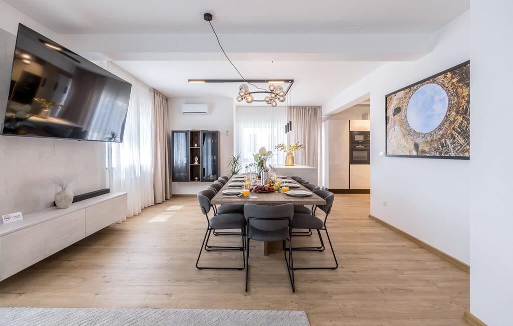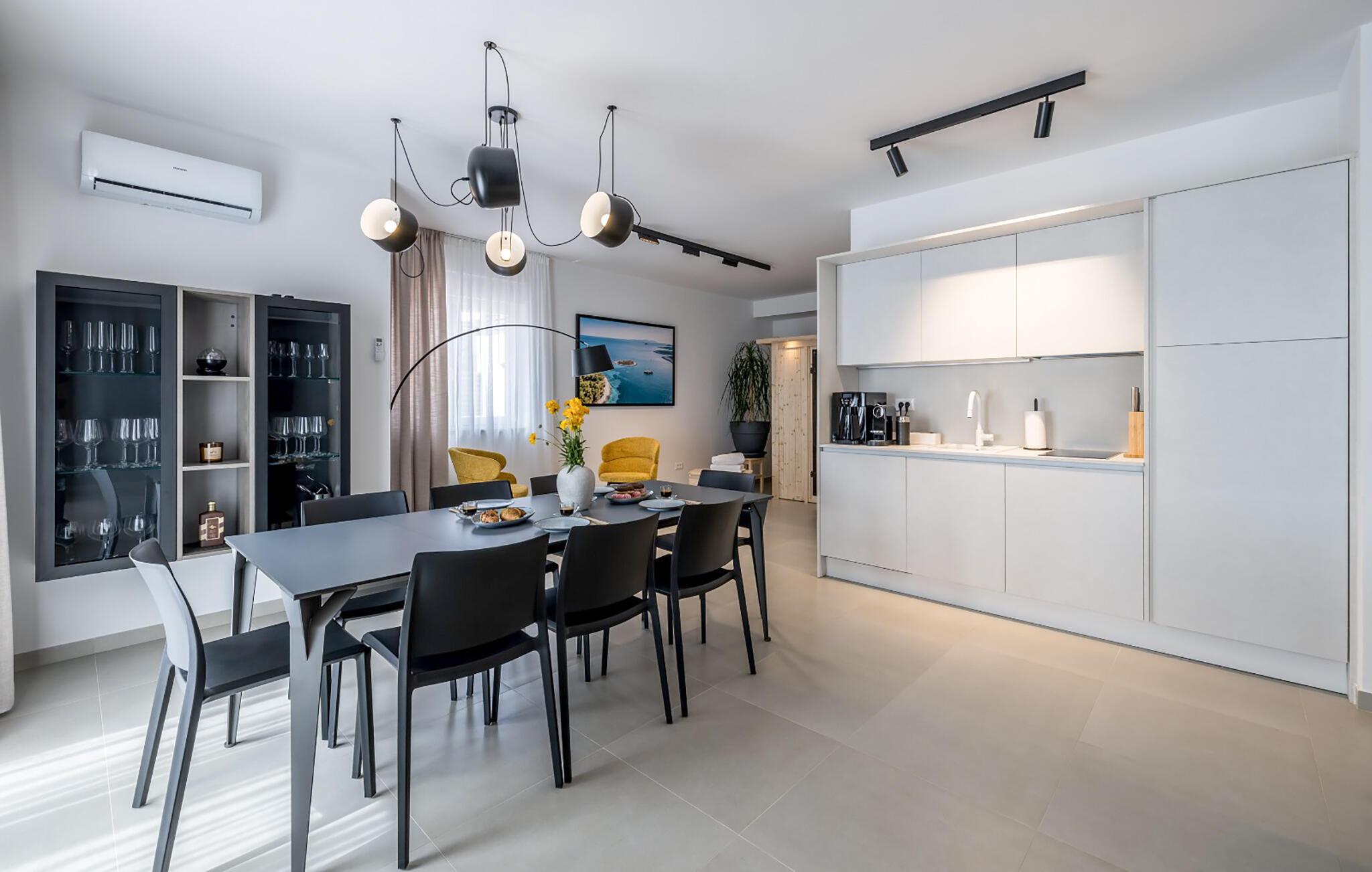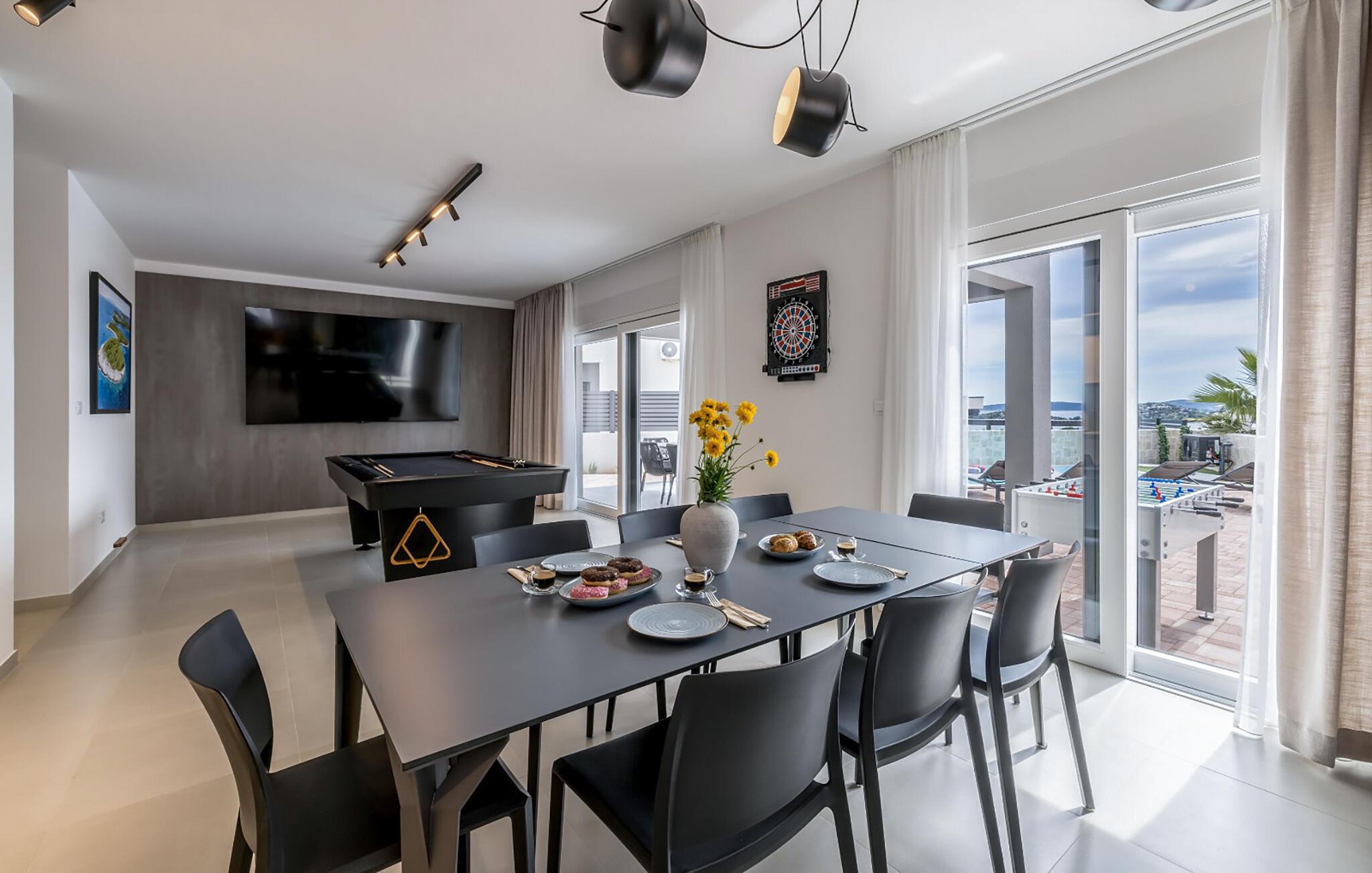 Slap af i dette luksuriøse feriehus med pool, spabad og sauna. Dette moderne hjem kombinerer stilfuld elegance og komfort på en unik måde. Rummelige opholdsrum med gulv-til-loft-vinduer, stilfulde møbler og et moderne udstyret køkken skaber en afslappet atmosfære, hvor I hurtigt kan genoplade batterierne. Slap af i sofaen med en kop kaffe, lyt til jeres yndlingsmusik eller en interessant podcast. Hvis I leder efter noget motion, er der intet, der forhindrer jer i at spille billard, bordfodbold eller træne i fitnesscentret. Hop i poolen om morgenen og tag en afslappende svømmetur. Slap af på en liggestol med en kølig drink og nyd udsigten over havet og de fjerne kystlinjer. Slap af i spabadet om eftermiddagen, inden I nyder en grillfest med familie eller venner og en afslappende aften. Tilbring afslappende timer på Vodices strande, hvor klart vand, fine småsten og hyggelige strandbarer venter på jer. Gå en tur gennem Vodices livlige centrum med restauranter, butikker og smukke havnepromenade. Tag bådture til øerne uden for kysten, eller udforsk nærliggende nationalparker som Krka eller Kornati. De, der leder efter noget mere aktivt, kan nyde cykling, snorkling eller kajaksejlads langs kysten.