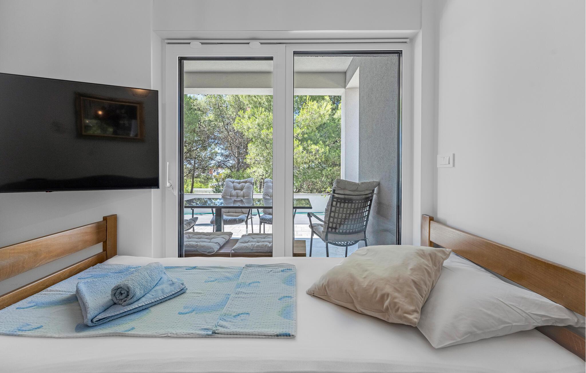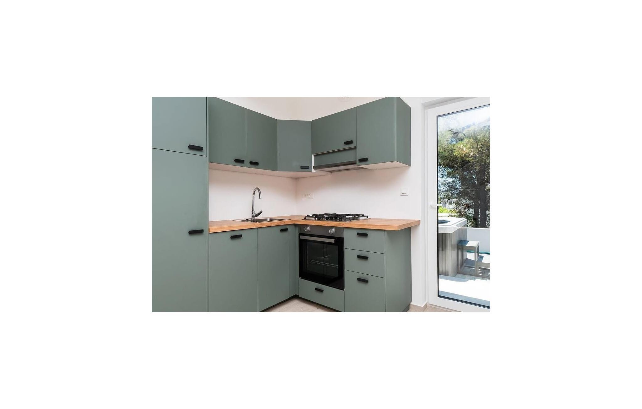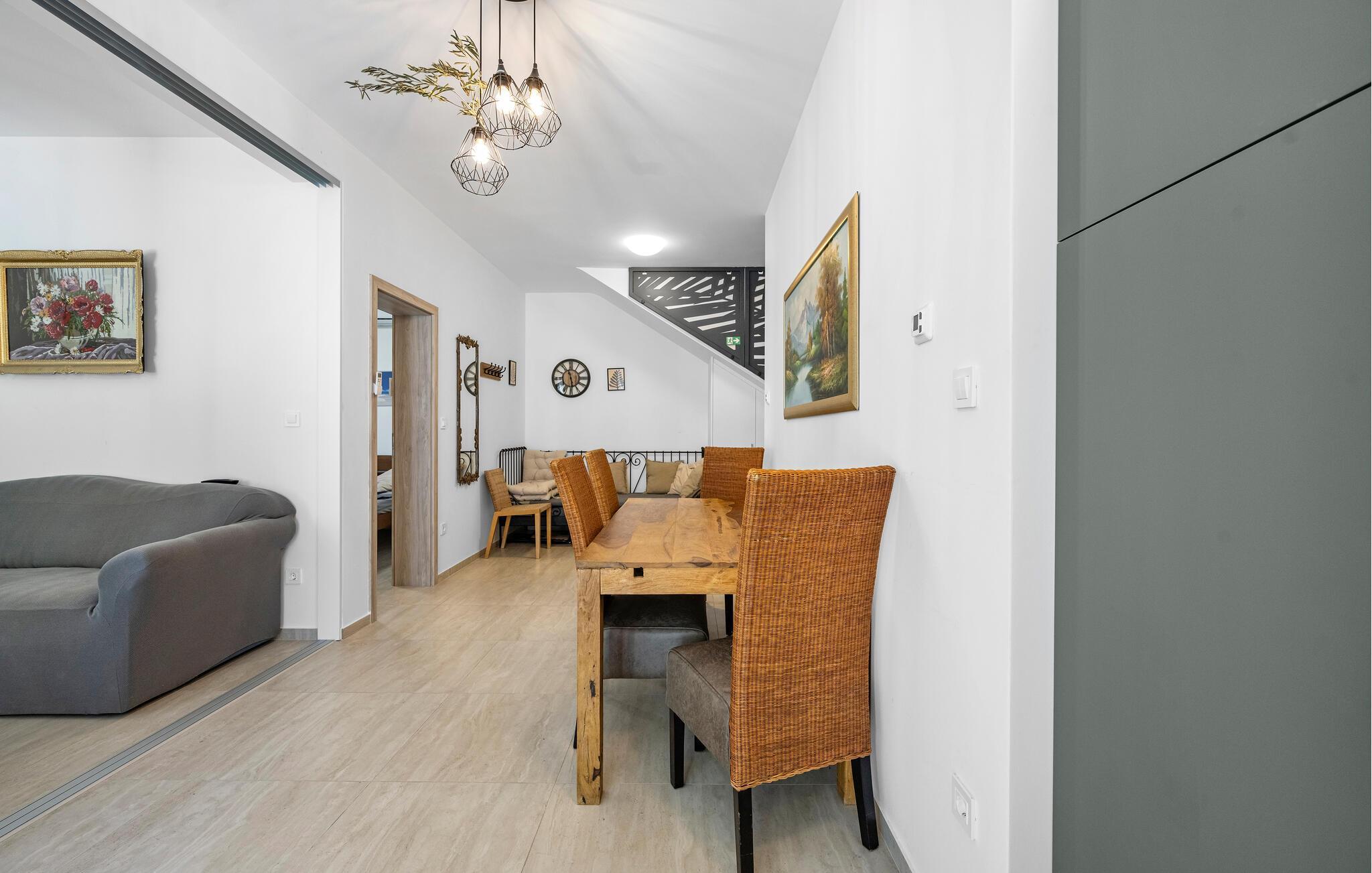 Nyd et afslappende ophold i denne smukke ferielejlighed med spabad. Denne lejlighed kombinerer stil og komfort på harmonisk vis. Diskrete farver, et smukt trælook og et moderne køkken skaber en atmosfære, hvor I hurtigt kan genoplade batterierne. Tilbered lækre måltider, tilbring en spændende filmaften på sofaen, og afslut aftenen med et glas kroatisk vin. Hop i spabadet for en forfriskende dukkert om morgenen, og slap derefter af med en kølig drink på en liggestol. Nyd freden og roen, der omgiver jer, og slap af. Om aftenen kan I nyde et lækkert måltid på grillen og reflektere over oplevelserne fra jeres feriedag. Nyd afslappende dage på den nærliggende sandstrand, ideel til svømning og solbadning. Gå en tur gennem Vodice's livlige centrum med dens charmerende gader, caféer og små butikker. Tag på udflugter i det omkringliggende område, for eksempel til Krka Nationalpark med dens imponerende vandfald. Afslut dagen på en af de mange restauranter ved havet og nyd frisk fisk og dalmatiske specialiteter.