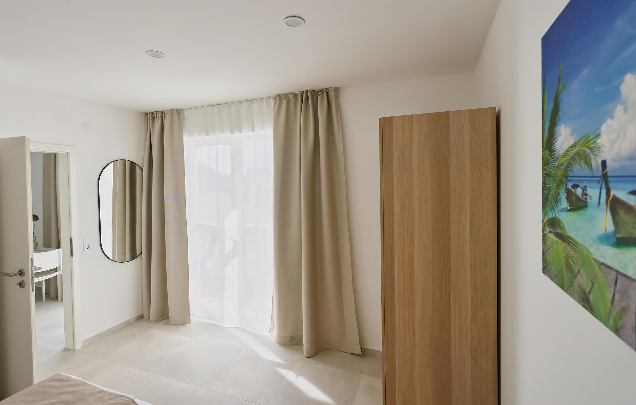 Tilbring en afslappende ferie i denne funktionelle ferielejlighed nær havet. Ved ankomsten vil I blive mødt af den lyse opholdsstue med dens behagelige, rolige atmosfære. Denne lejlighed er det ideelle sted at lægge hverdagen bag sig, hvad enten det er med en morgenkaffe, en lille madlavningssession for to eller en afslappende aften foran fjernsynet. Alt er kompakt, gennemtænkt og designet til at sikre et ubekymret ophold. Start dagen på den rummelige altan, nyd middelhavsstemningen og kickstart jeres ferie med en god morgenmad. Lav planer for jeres udflugter, eller vend tilbage hertil om aftenen for at afslutte dagen med et fælles måltid og et glas vin. Gå en tur til den nærliggende strand og tilbring solrige timer ved Adriaterhavets klare vand – svøm, snorkel eller slap blot af og nyd udsigten. Oplev den charmerende by Vodice med dens livlige gyder, indbydende caféer og maleriske havn. Tag en bådtur til de nærliggende øer eller til Kornati Nationalpark, og nyd frisk fisk og andre dalmatiske delikatesser på de lokale restauranter.