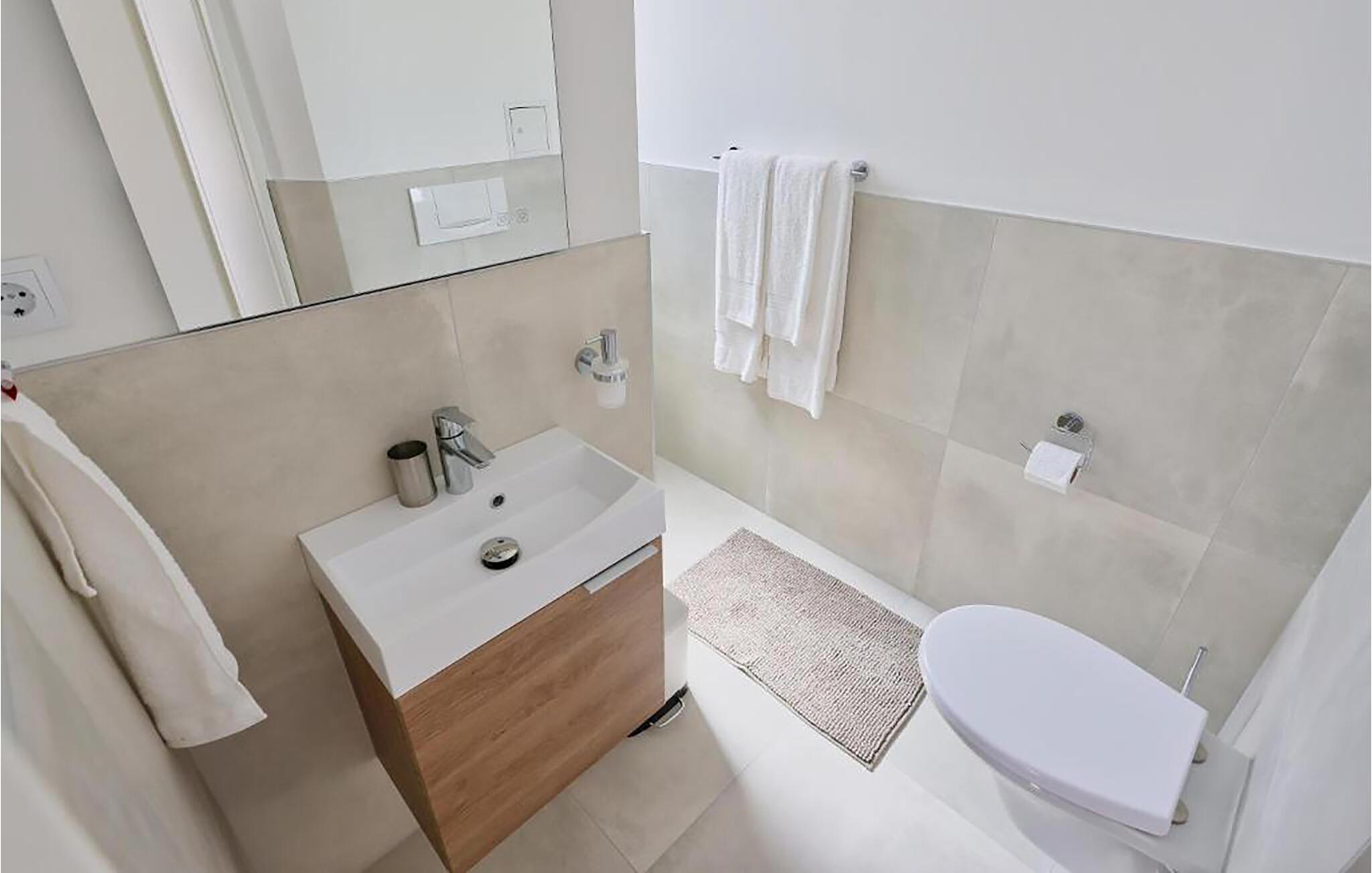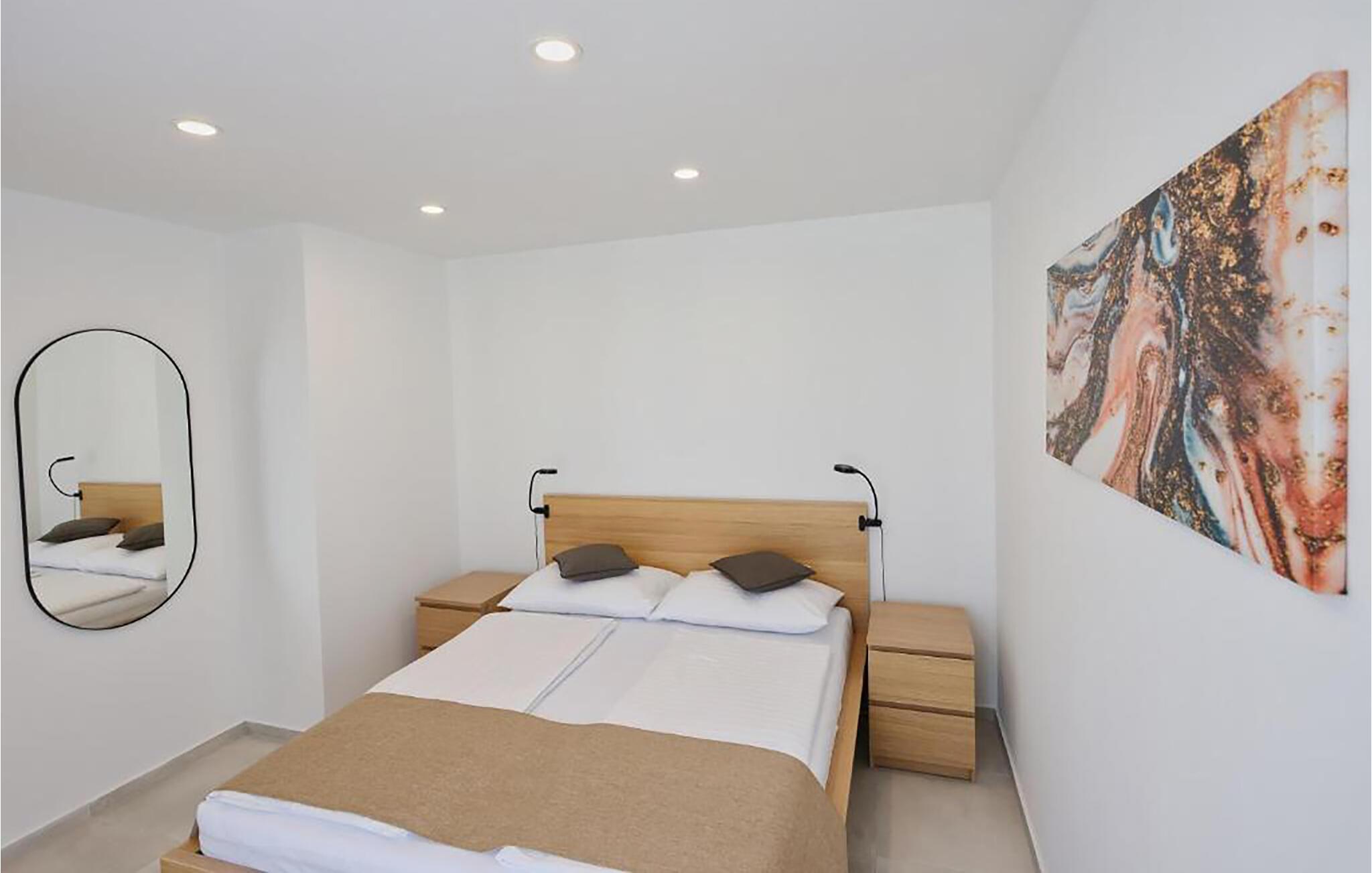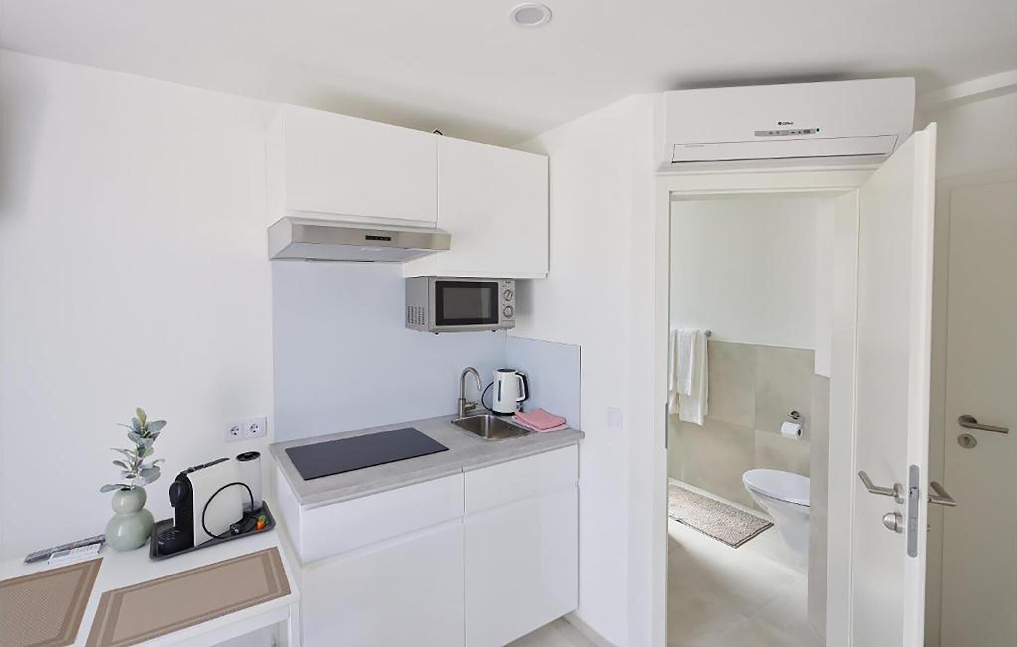 Nyd en afslappende ferie i denne rolige ferielejlighed nær havet. Når I træder ind i lejligheden, vil I blive mødt af den lyse opholdsstue med dens indbydende atmosfære. Uanset om I nyder en morgenkaffe, en lille madlavningssession for to eller en hyggelig aften foran fjernsynet - det er nemt at lægge hverdagen bag sig her. Møblerne er kompakte, veldesignede og helt rettet mod jeres velbefindende. Start dagen på den rummelige altan, indånd middelhavsstemningen og nyd en god morgenmad, inden I planlægger jeres udflugter. Om aftenen kan I afslutte dagen i en afslappet atmosfære med et fælles måltid og et glas vin. Tag en slentretur til den nærliggende strand og tilbring dejlige timer i Adriaterhavets klare vand. I kan svømme, snorkle eller blot nyde udsigten over havet. Oplev den charmerende by Vodice med dens livlige gader, hyggelige caféer og maleriske havn. Tag en bådtur til de omkringliggende øer eller Kornati Nationalpark og nyd frisk fisk og andre dalmatiske specialiteter i regionens restauranter.