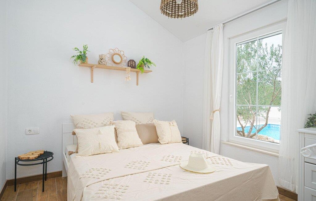 Tilbring en afslappende ferie i dette komfortable feriehus med pool og panoramaudsigt. Dette charmerende feriehus byder jer velkommen med et hyggeligt og smagfuldt interiør, hvor I vil føle jer hjemme fra den allerførste dag. Glæd jer til hyggelige måltider ved det indbydende spisebord, planlæg jeres aktiviteter sammen, og efter en lang dag kan I slappe af på sofaen for at streame en film eller slappe af med et brætspil. Jeres terrasse er det ideelle sted til en lækker morgenmad og mindeværdige grillfester. Forfrisk jer selv i poolen, når I har lyst, lad batterierne op på liggestolene, spil bordtennis, og lad jeres børn have det sjovt på trampolinen. Tag en bådtur til Kornatiøerne og snorkel i de turkisblå bugter omkring Tribunj og Srima. Tag en dagstur til Šibenik, og beundr den storslåede Sankt Jakobs Katedral. Beundr de imponerende vandfald i Krka Nationalpark, og smag frisk fisk og skaldyr og lokale vine i traditionelle konobas.