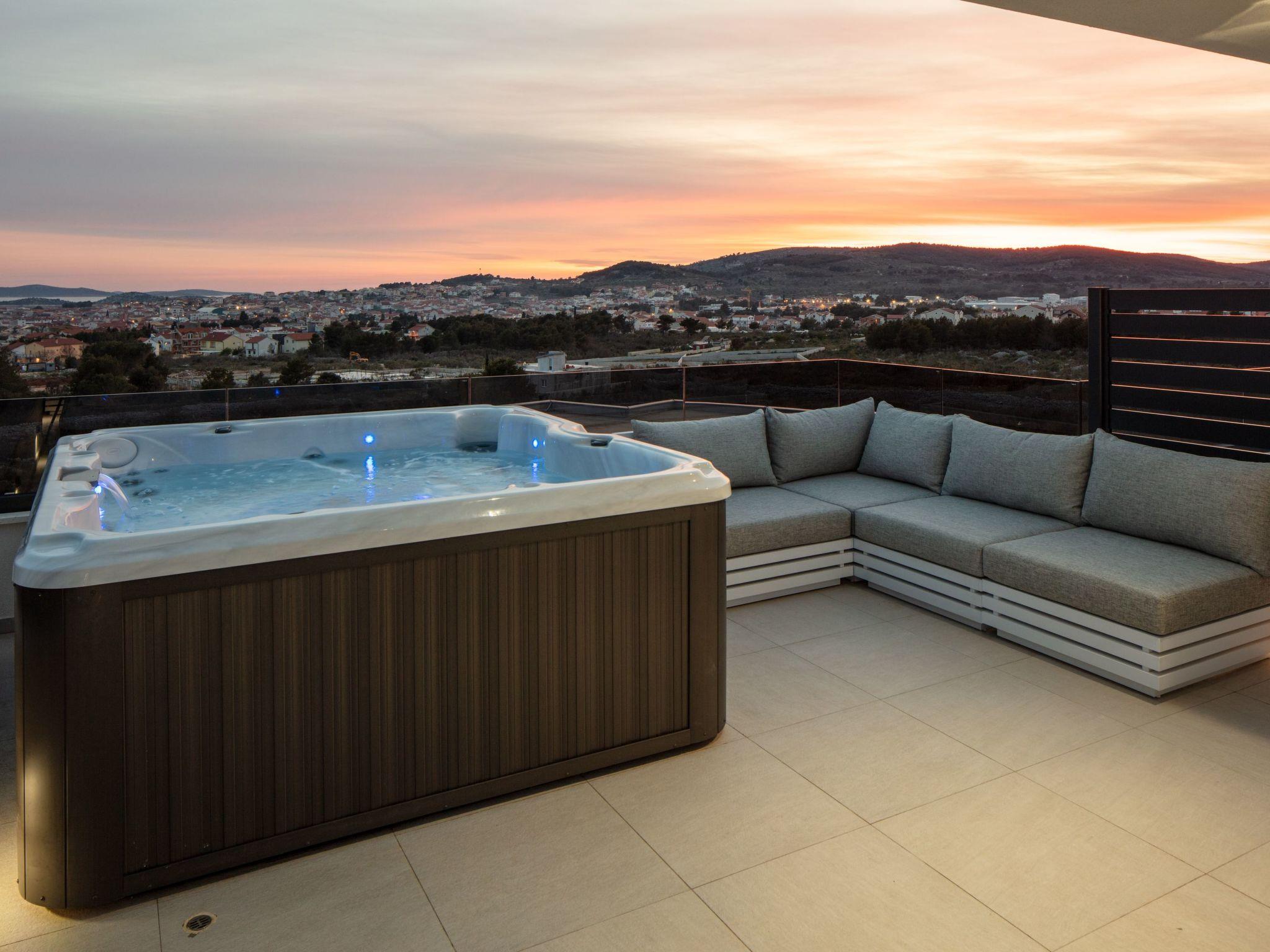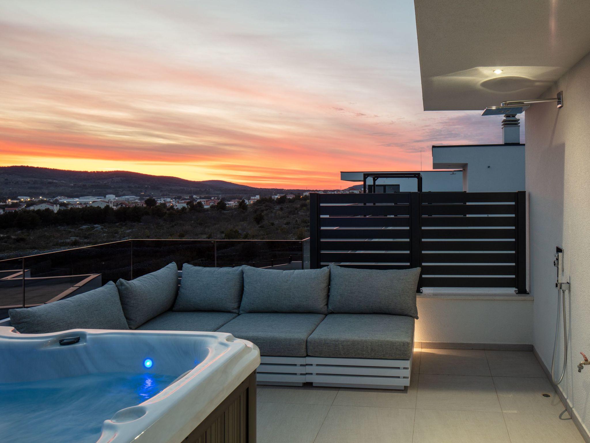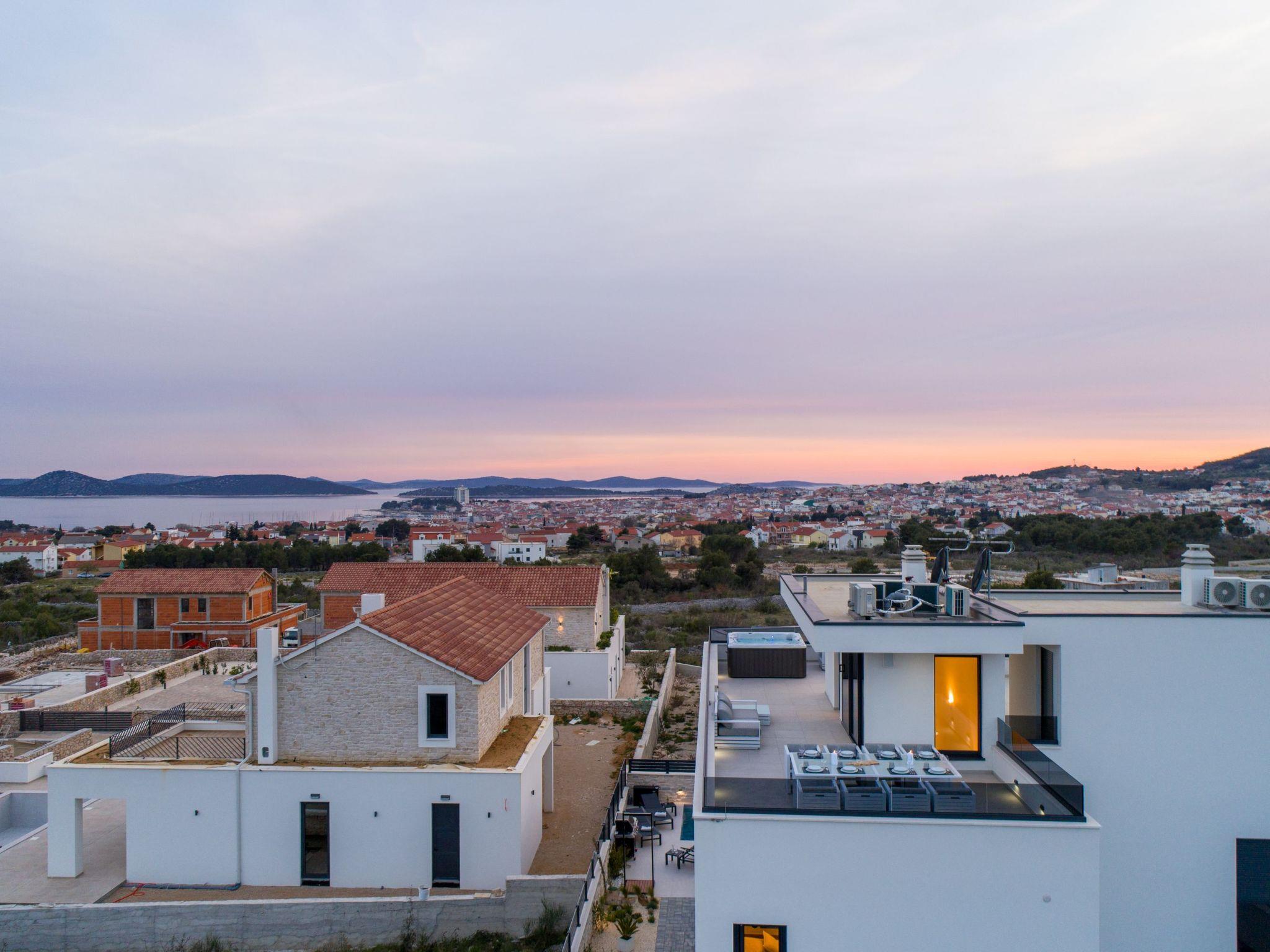 Villa Vodice Sky is located in Vodice, just 1 km from the beach and town center. Its location overlooks the town and has an amazing sea view.