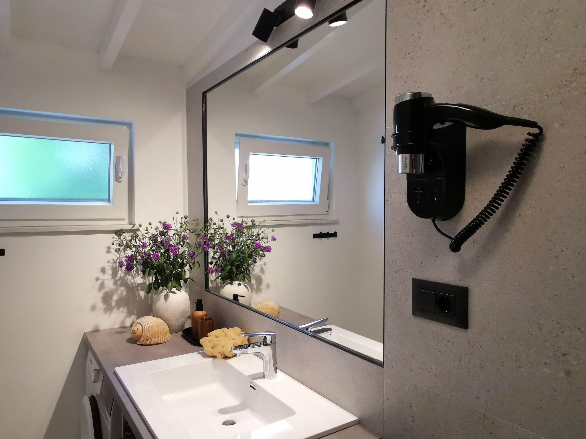 This house is our small paradise and has everything you need if you like spending your holidays in a small, lively place.ade on arrival.There is also bathroom with shower cabine, toilet with toilet paper, soap and washing machine. This apartment has large terrace with garden furniture. Villa has private parking space and for 1 apartment is reserved 1 parking space.