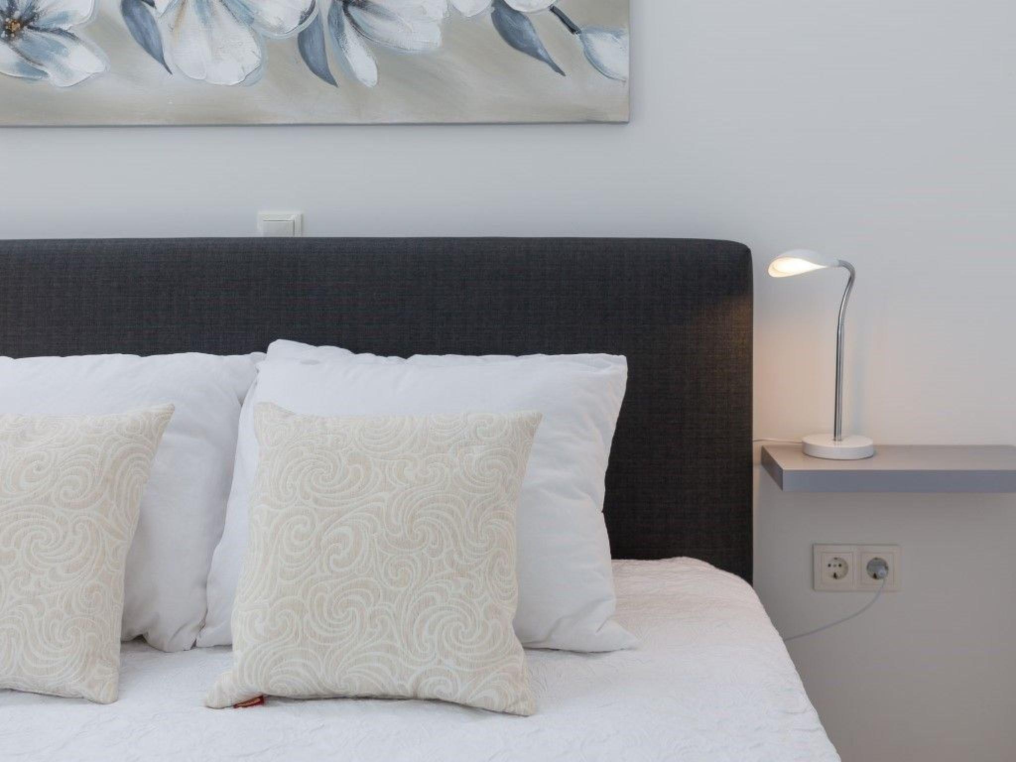 The villa is a perfect blend of modernity with a touch of design elements to make you feel at home. It consists of two floors. The ground floor’s concept is a sunlit open space with a fully equipped kitchen, suited for all your needs; a dining area, which can comfortably accommodate up to 6 guests; a cosy living room and a bathroom.