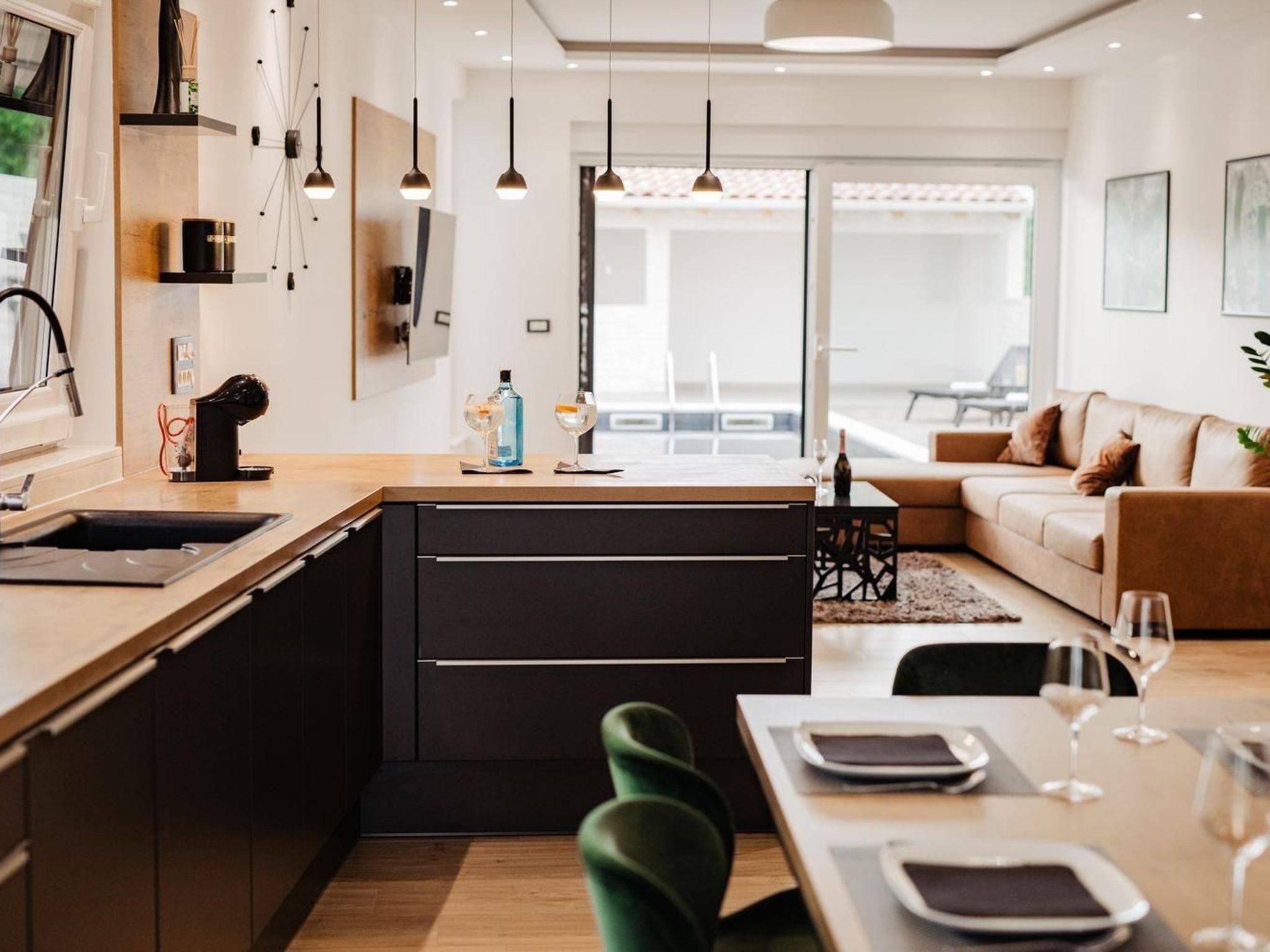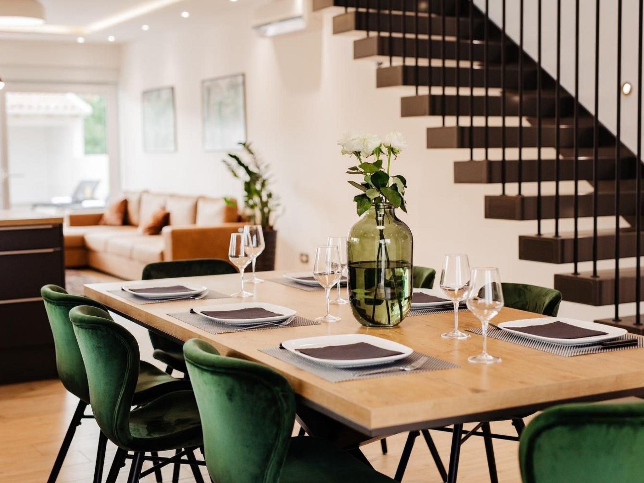The carefully decorated garden of the villa offers all the necessary leisure facilities, a private pool with a sun deck, an outdoor covered barbecue with a dining area, and private covered parking.