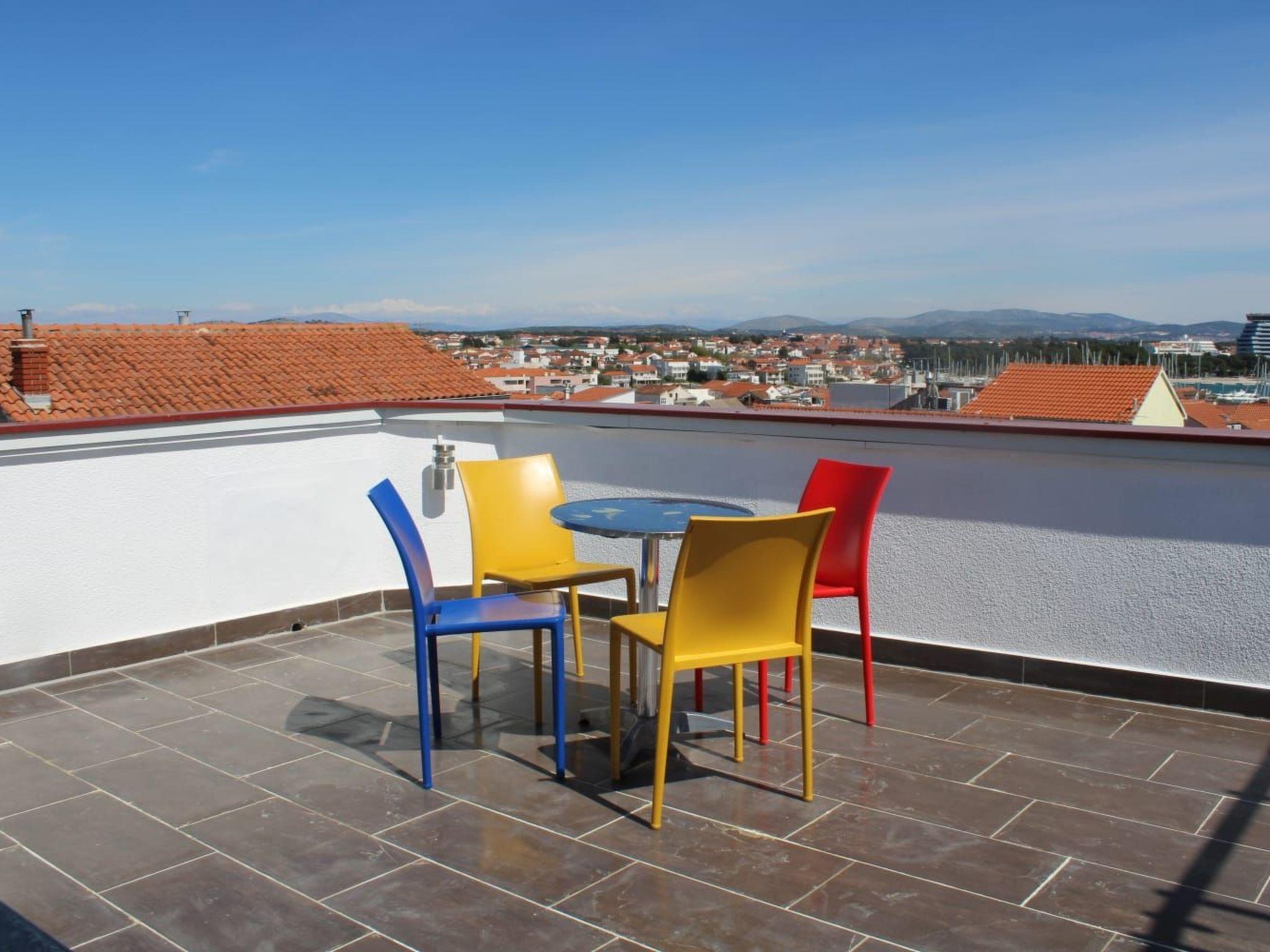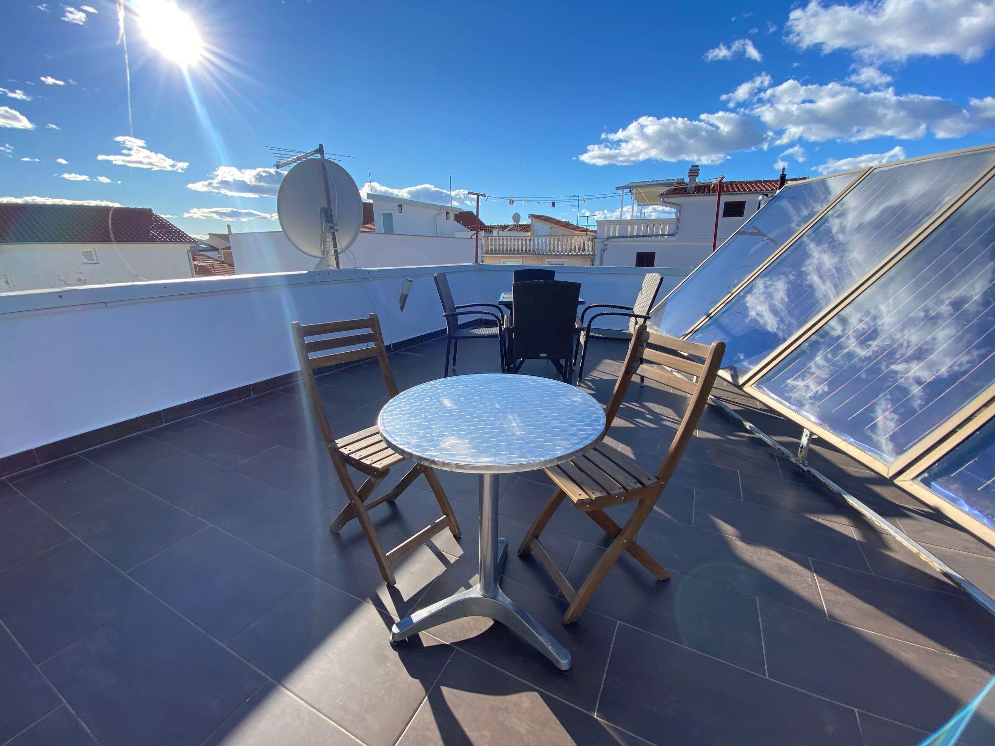 Discover the enchanting charm of Vodice from the perspective of our exclusive holiday flats "NEMO and CAPO", which are ideally located on the ground floor. With their generous 55 m² of living space, these flats not only offer unique views, but also an unrivalled location from which you can truly experience the beauty of the region with "Vodice in the palm of your hand". Enjoy the spectacular views from our impressive 3rd floor roof terrace, equipped with tables, chairs, sun loungers and a barbecue, and admire the sea, harbour and picturesque surroundings around you.