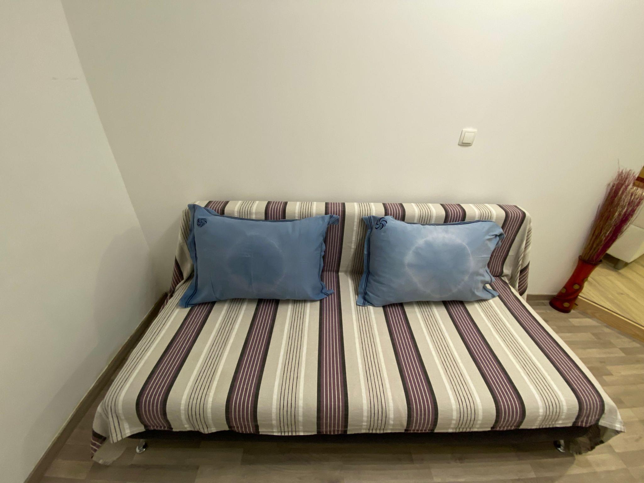 The flats on the ground floor with about 55m^2 of living space offer a separate bedroom with double bed, a bathroom with toilet and a large living room with a sofa bed (approx. 150x200cm). Each flat has a fully equipped kitchen - including oven, fridge, freezer and hob, along with all basic cooking utensils. The flats are air-conditioned, which, together with the thick stone walls of the traditional building, guarantees a pleasant indoor experience even in the hot summer months.