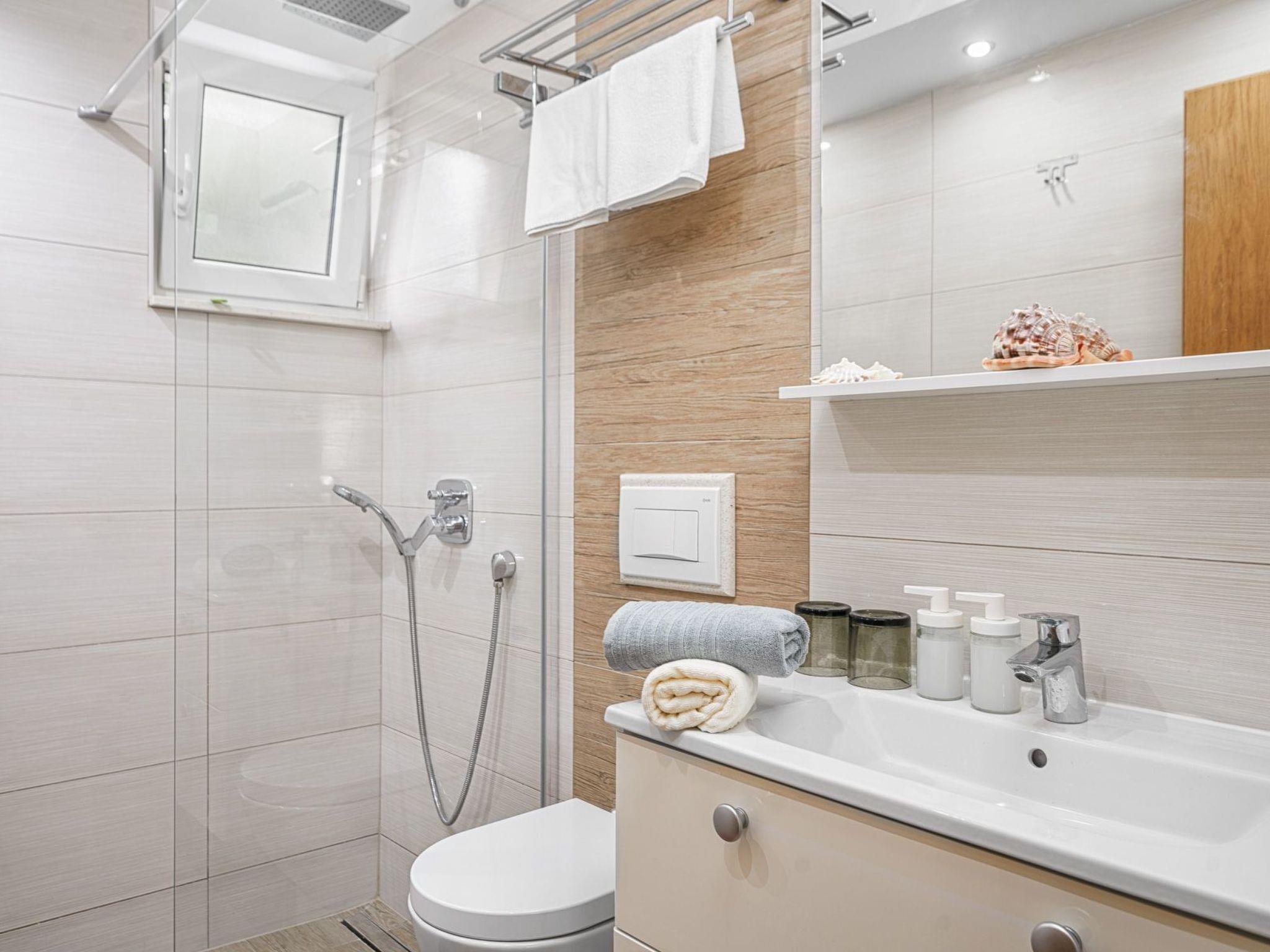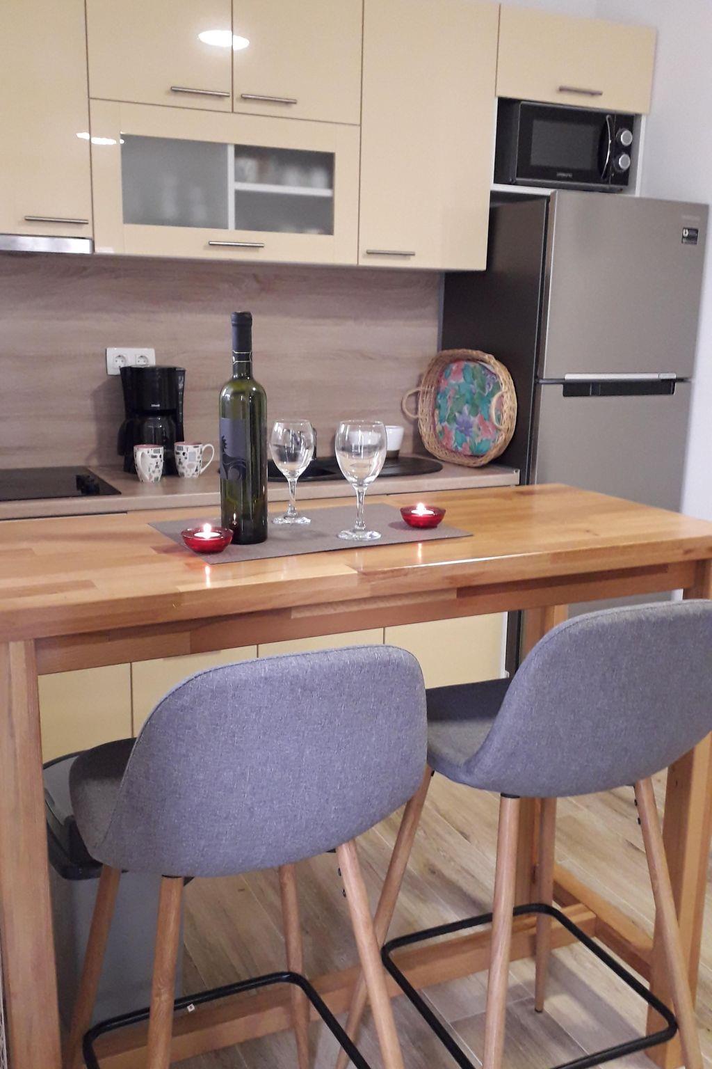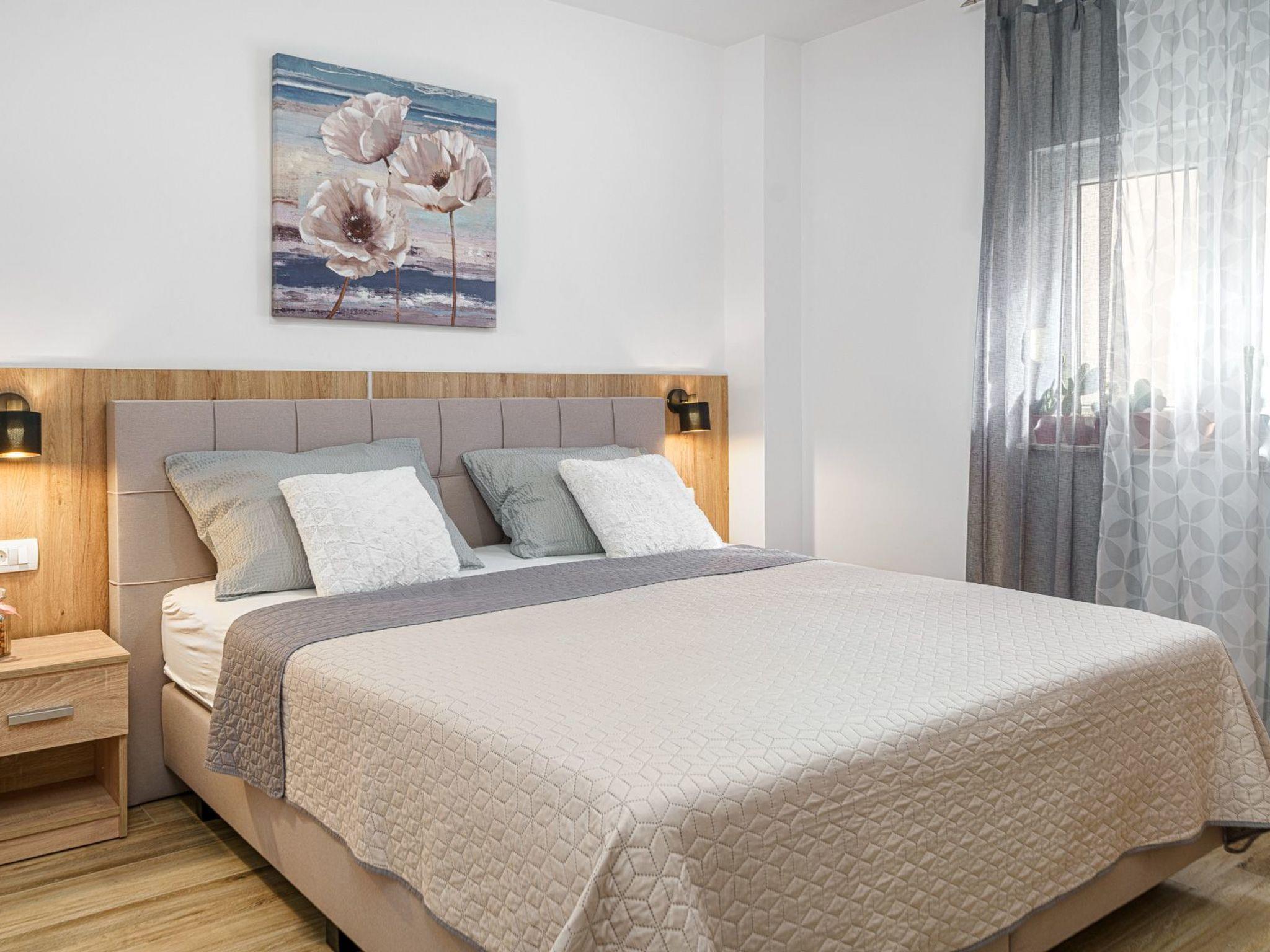 Inside, the flat boasts modern furnishings that leave nothing to be desired. The air-conditioned atmosphere creates a pleasant indoor climate even on hot days. Two cosy bedrooms with large double beds guarantee a restful night's sleep. The spacious living room with integrated kitchen is modernly furnished - here you will find everything you need to prepare delicious meals: from extensive cooking utensils to a dishwasher, a large fridge and a microwave. The flat also has a bathroom with shower and a separate WC.