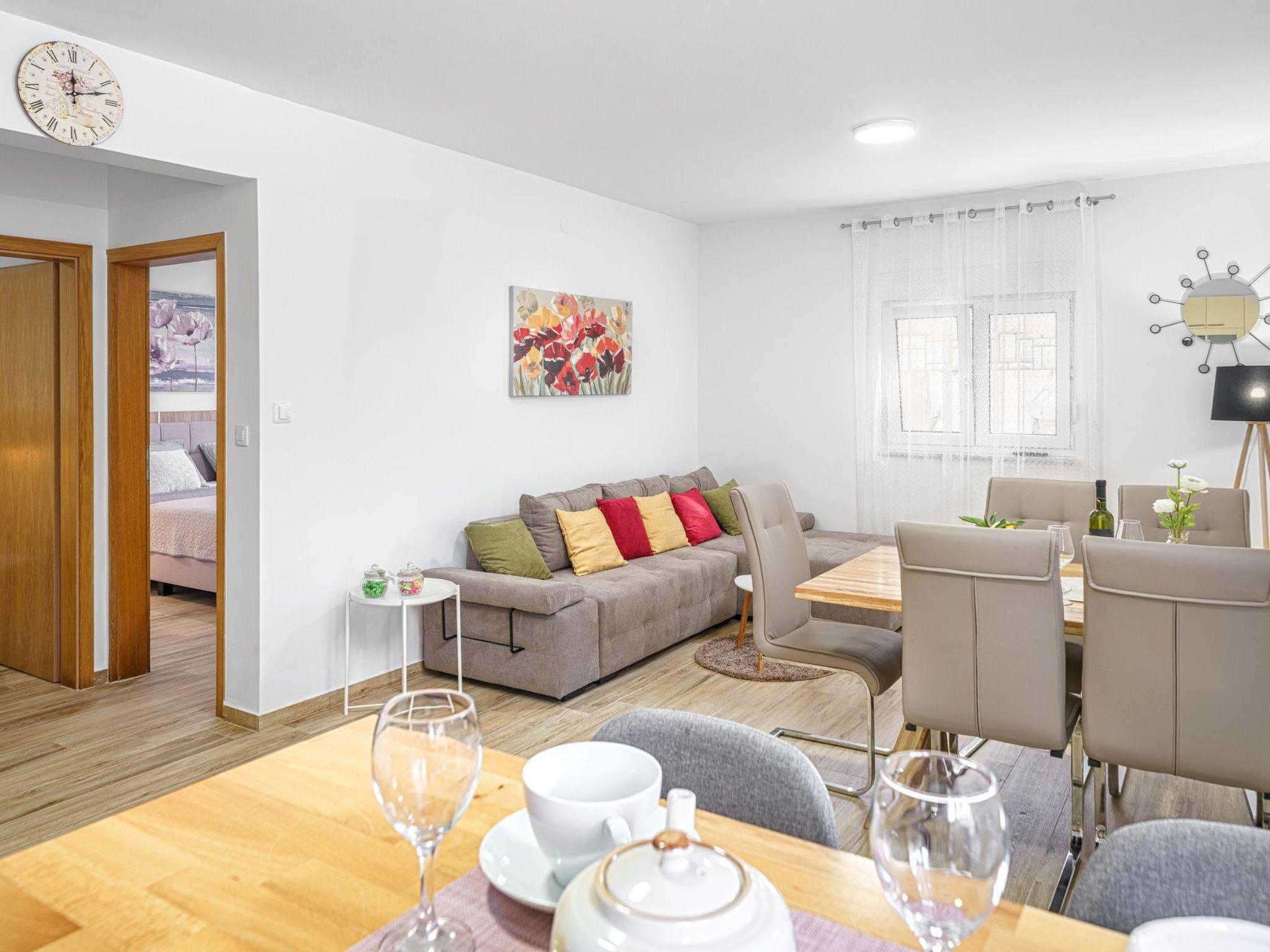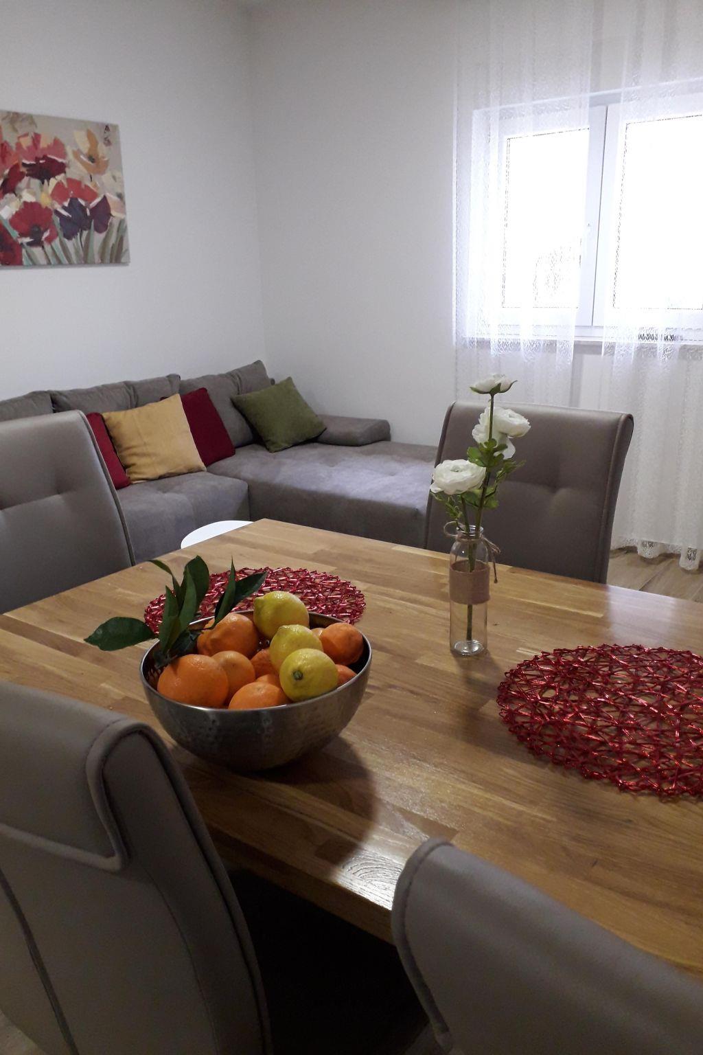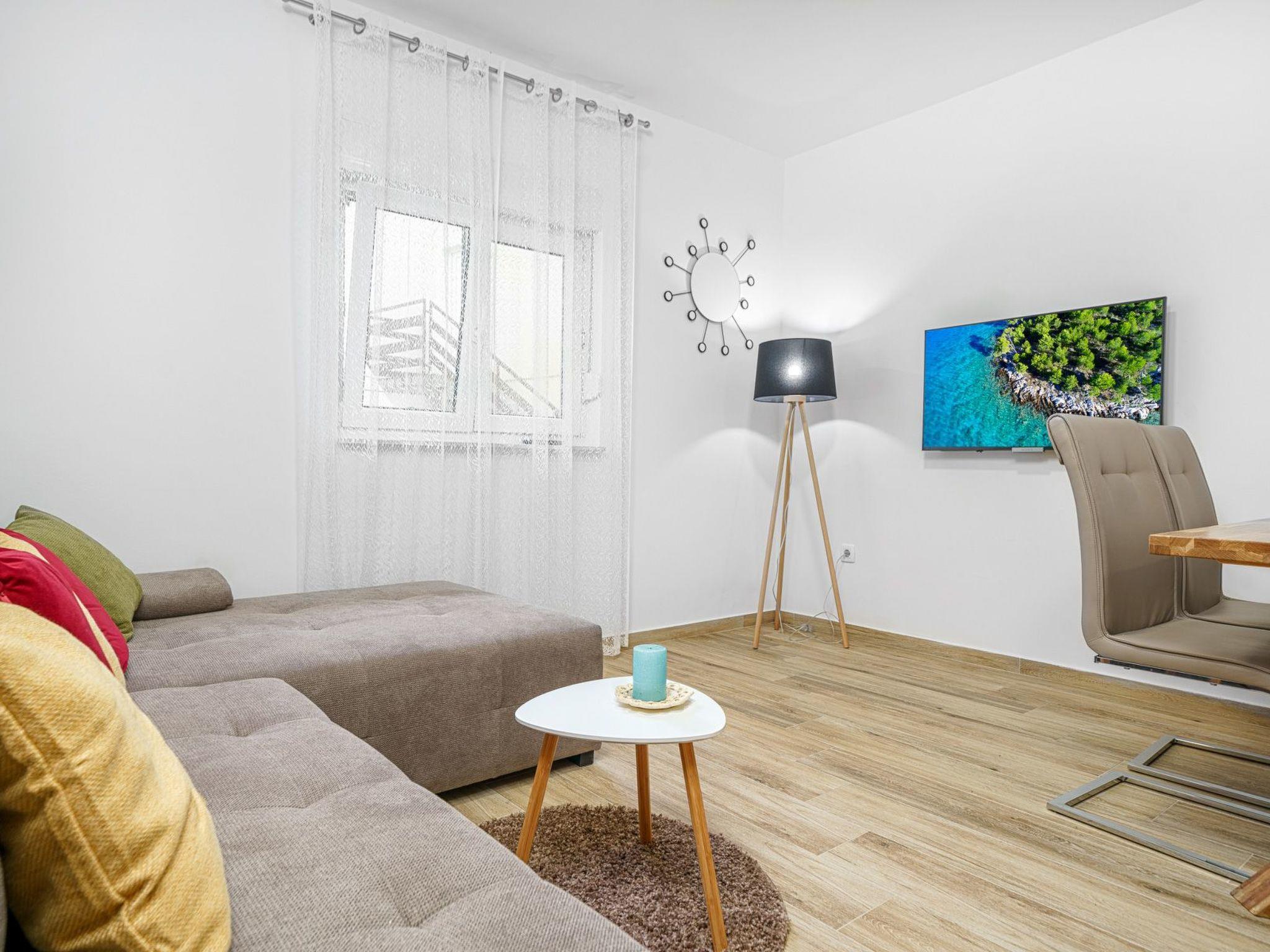 Inside, the flat boasts modern furnishings that leave nothing to be desired. The air-conditioned atmosphere creates a pleasant indoor climate even on hot days. Two cosy bedrooms with large double beds guarantee a restful night's sleep. The spacious living room with integrated kitchen is modernly furnished - here you will find everything you need to prepare delicious meals: from extensive cooking utensils to a dishwasher, a large fridge and a microwave. The flat also has a bathroom with shower and a separate WC.