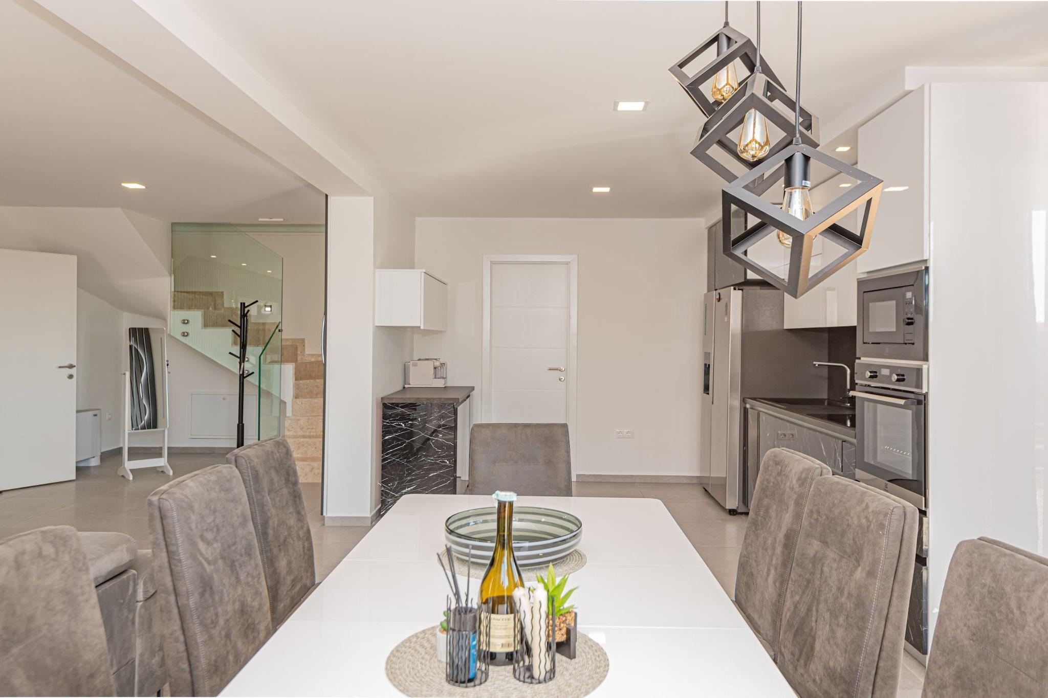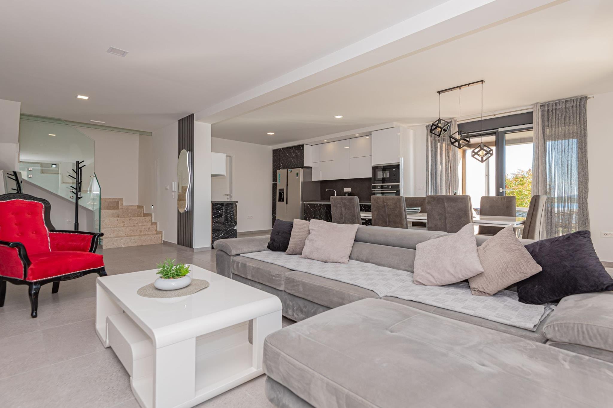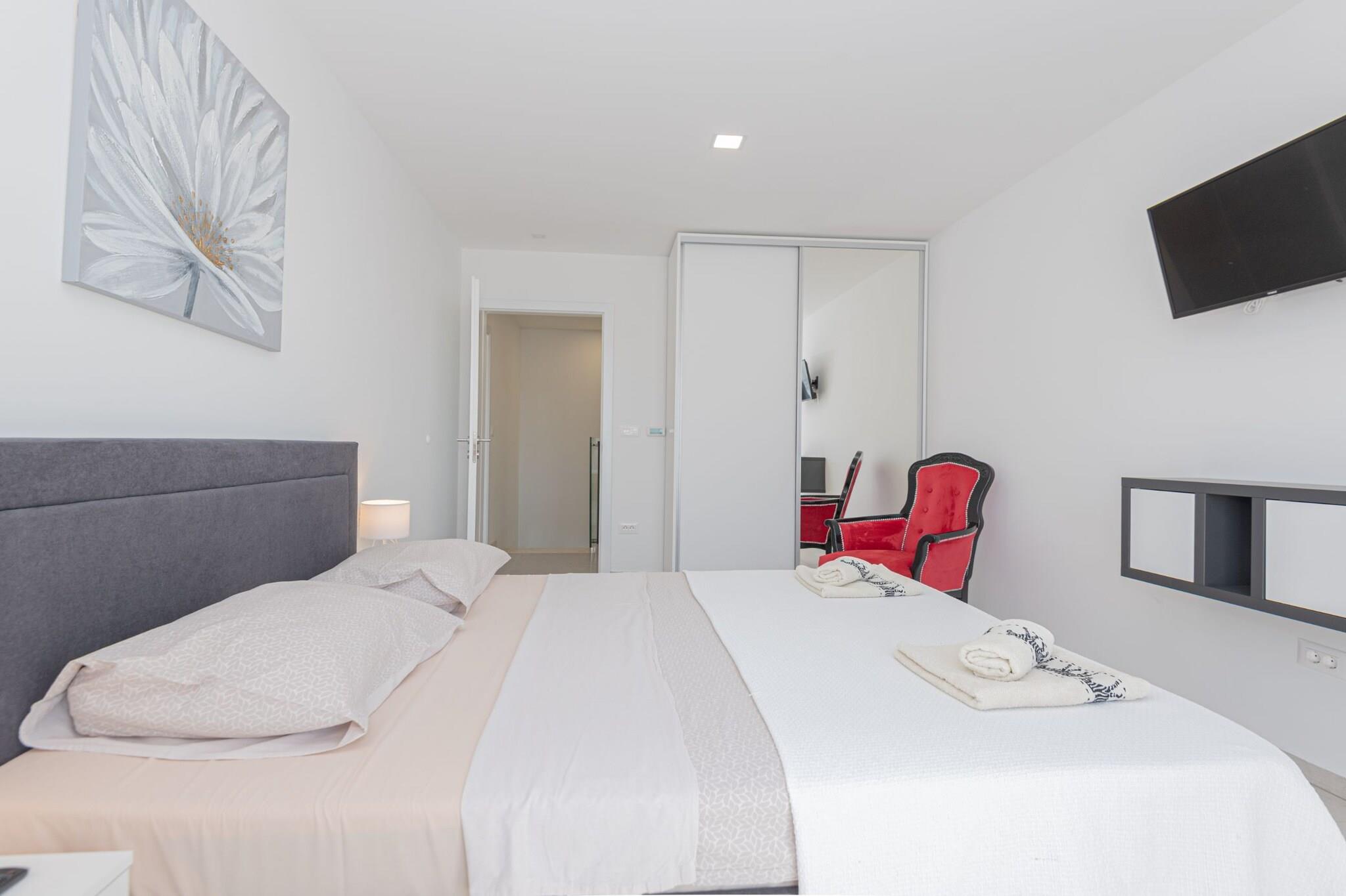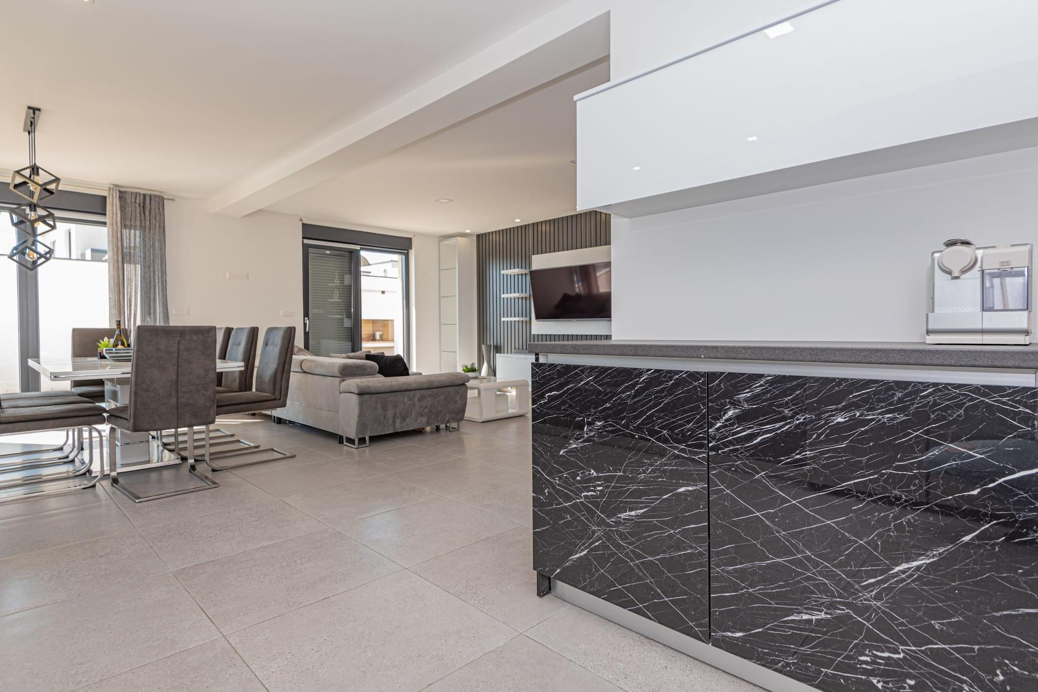 Villa HIA is a luxurious retreat located in Vodice, a vibrant coastal town in Šibenik-Knin County, Croatia. This modern villa offers an exceptional blend of comfort and style, making it an ideal choice for families and groups seeking a premium vacation experience. Note: Private parking is available, and a reservation is not required. Baggage drop-off is available before check-in. Wi-Fi is available throughout the property. Pets are allowed with notice. Semi-detached house on two floors with an internal staircase. Damage Deposit of 500EURO that will be returned upon checkout. This four-bedroom can accommodate up to eight guests. It features a flat-screen TV. The private bathroom is equipped with a shower and toilet. Thanks to its excellent location, everything you'll need for your vacation is just a short walk from the property. Grocery stores, cafes, restaurants—everything is within a 1.00 km radius. The beach is 1.00 km away from the property. The airport is 45 km away from the property.