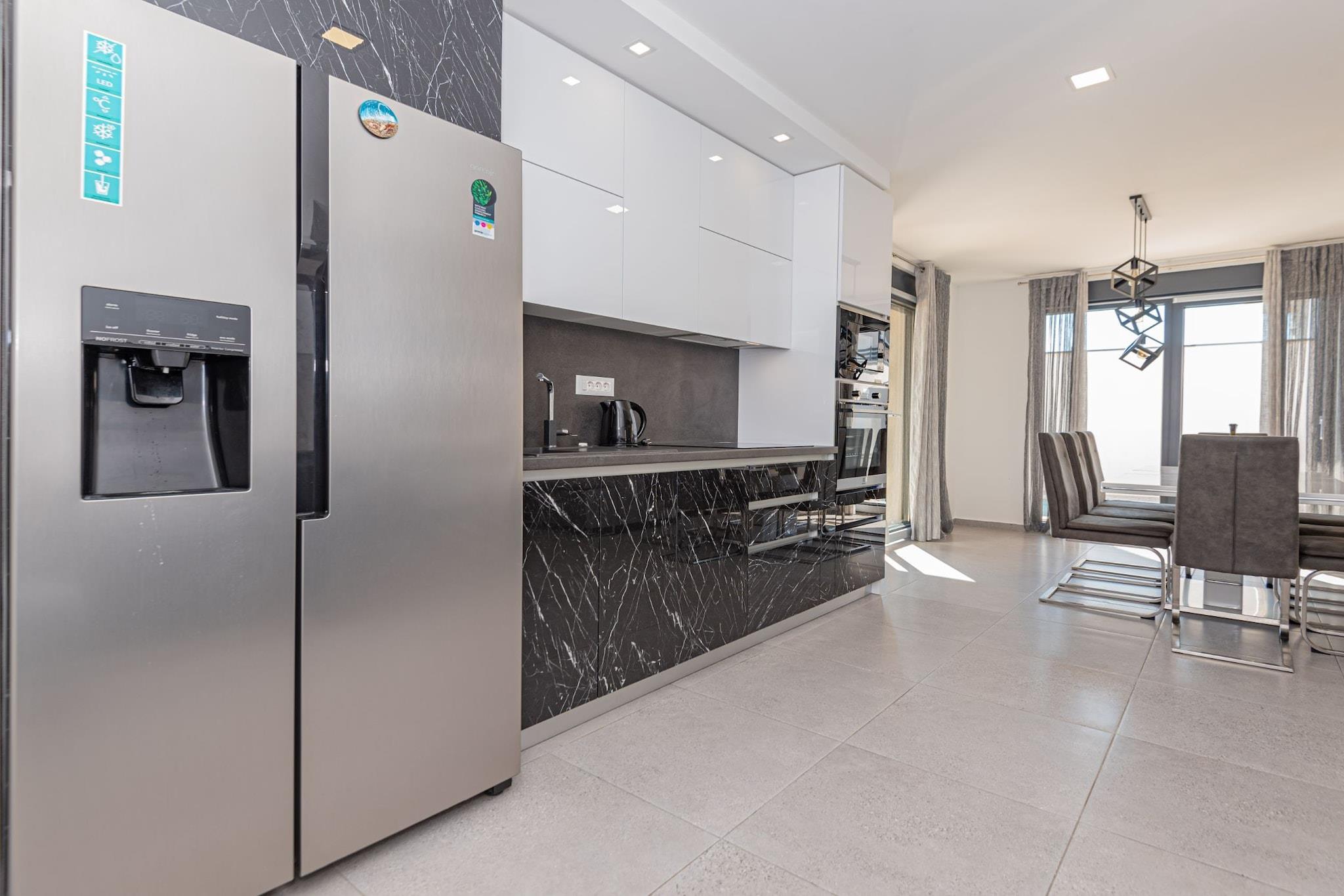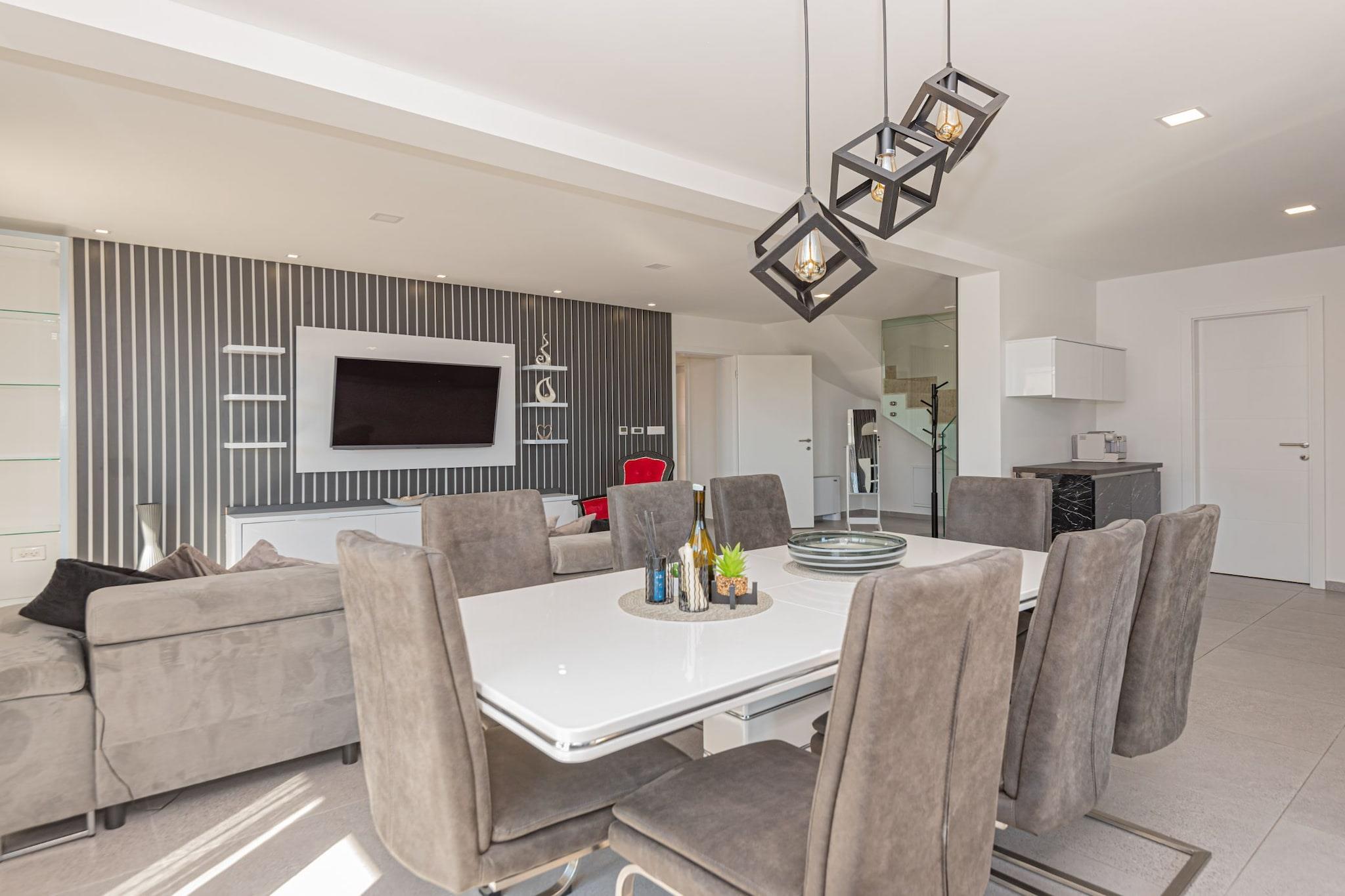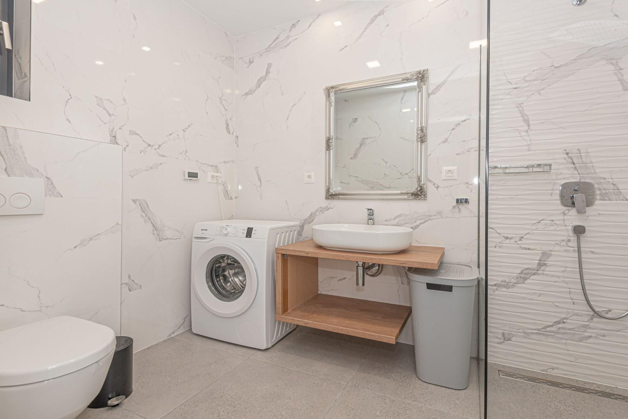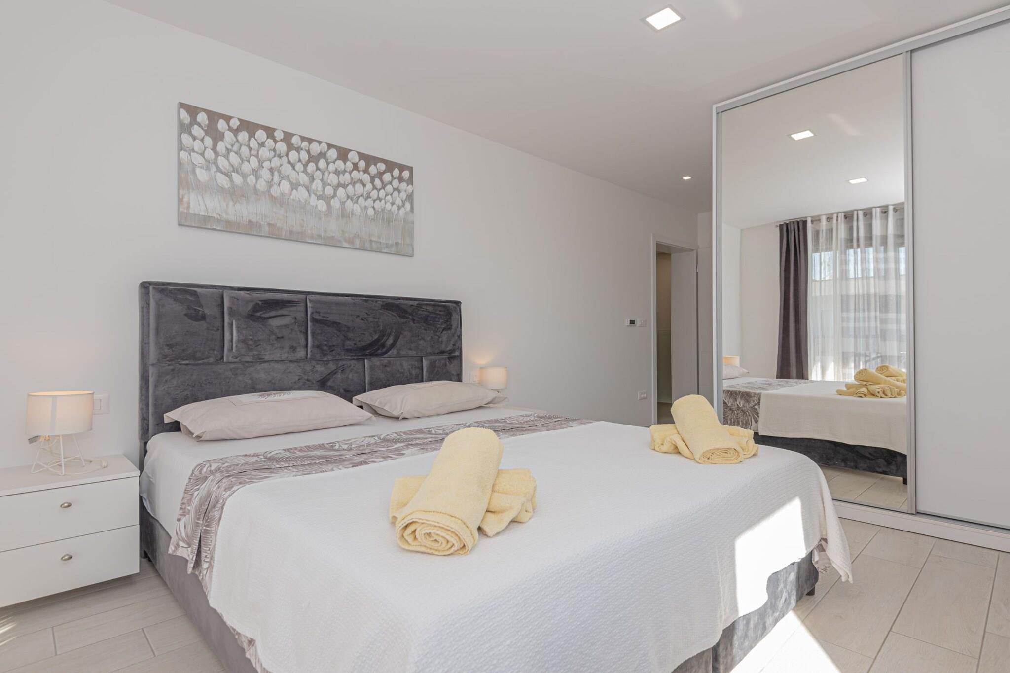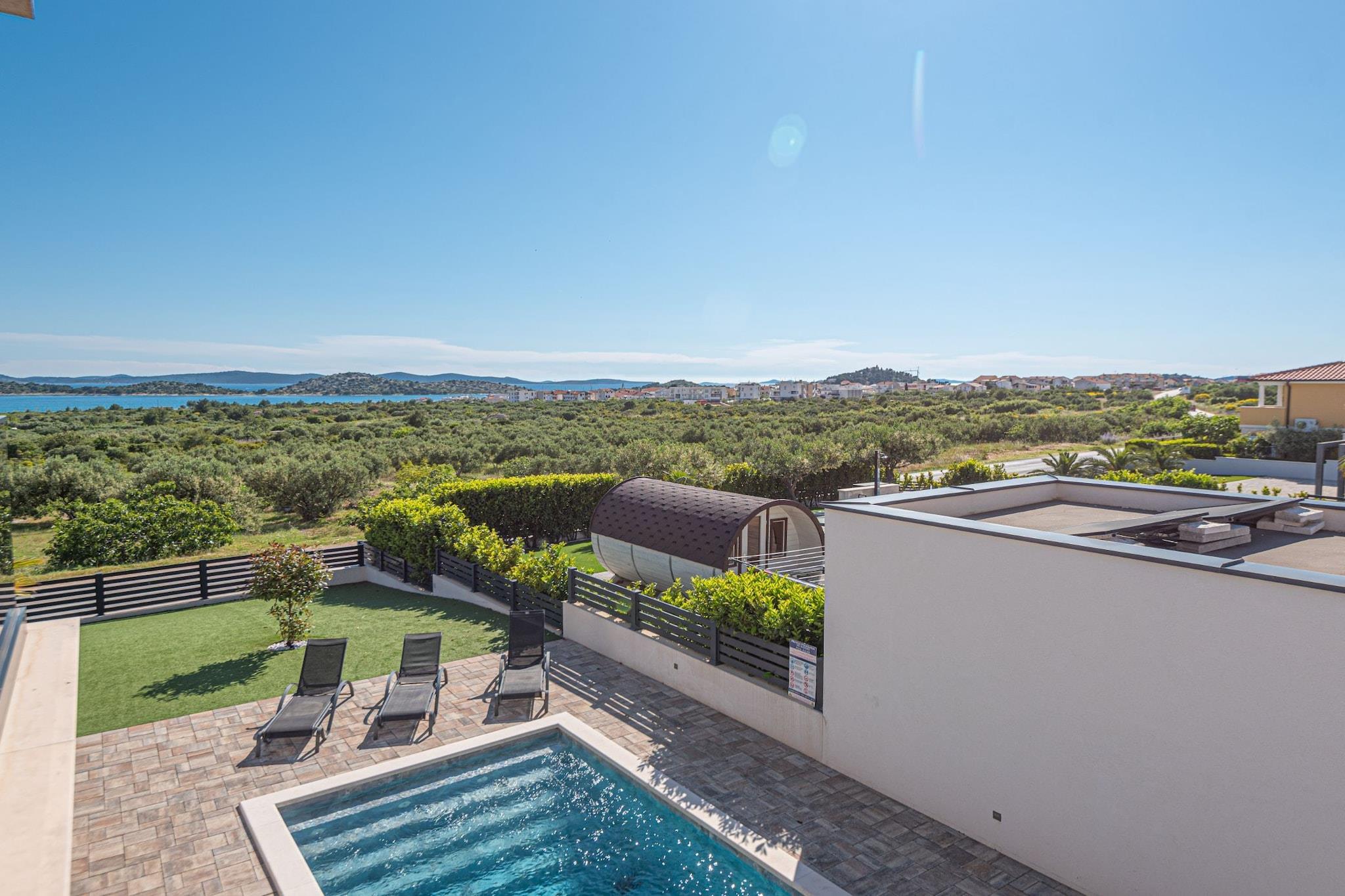 Villa HIA is a luxurious retreat located in Vodice, a vibrant coastal town in Šibenik-Knin County, Croatia. This modern villa offers an exceptional blend of comfort and style, making it an ideal choice for families and groups seeking a premium vacation experience. Note: Private parking is available, and a reservation is not required. Baggage drop-off is available before check-in. Wi-Fi is available throughout the property. Pets are allowed with notice. Semi-detached house on two floors with an internal staircase. Damage Deposit of 500EURO that will be returned upon checkout. This four-bedroom can accommodate up to eight guests. It features a flat-screen TV. The private bathroom is equipped with a shower and toilet. Thanks to its excellent location, everything you'll need for your vacation is just a short walk from the property. Grocery stores, cafes, restaurants—everything is within a 1.00 km radius. The beach is 1.00 km away from the property. The airport is 45 km away from the property.