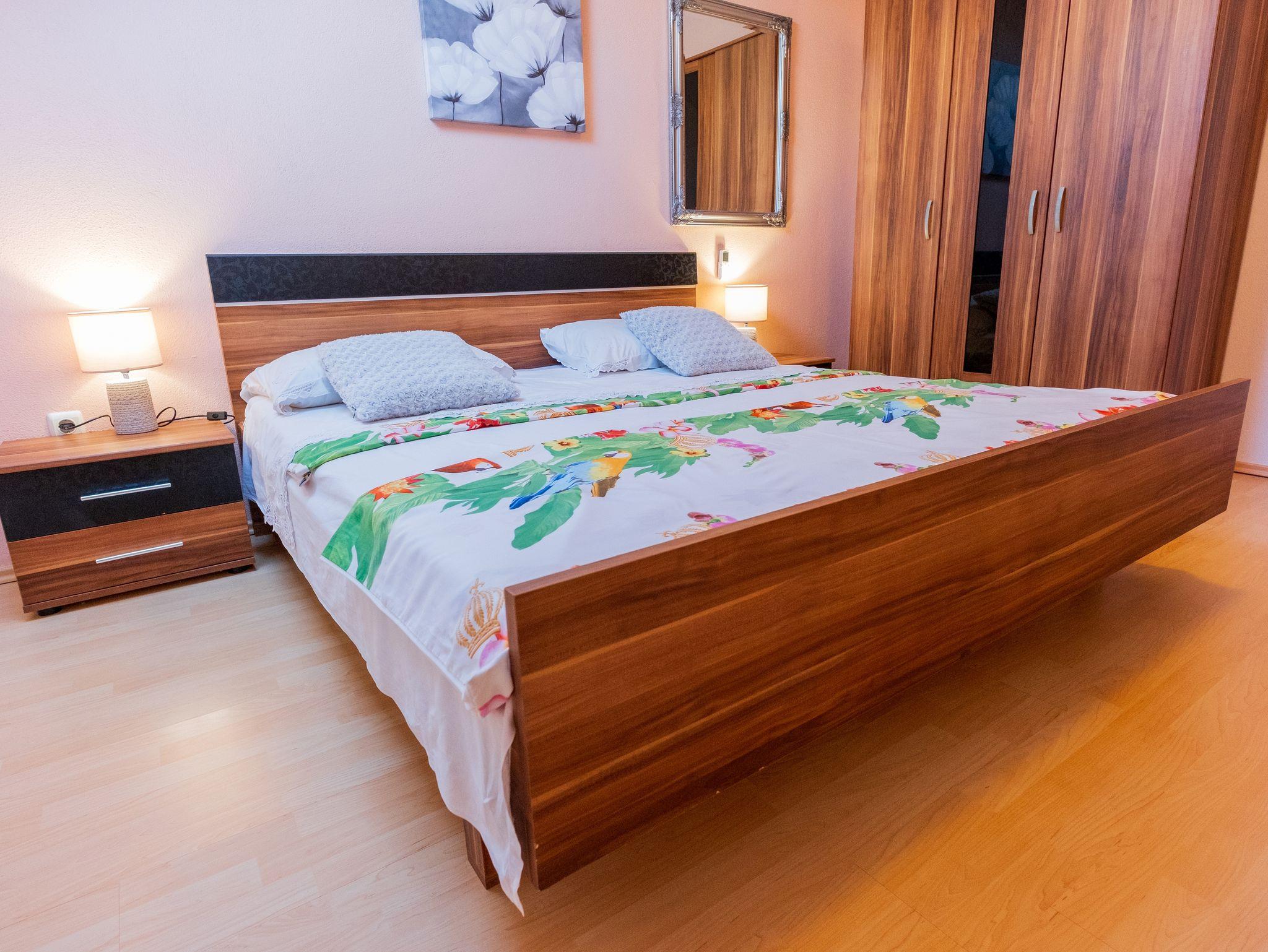 Ferienwohnung bietet Platz für 3 Gäste. Die Betten sind in Schlafzimmern, die es 1 gibt, und in Esszimmer, innerhalb einer Gesamtfläche von 32m2, angeordnet. Es ist erlaubt, Speisen auf dem Gemeinschafts-Grill vorzubereiten. Die reservierte Unterkunftseinheit verfügt über einen gemeinsame Terrasse. IM PREIS INBEGRIFFEN: Kurtaxe, Endreinigung, Klimatisierung, Parkplatz, Internet, Kinderbett, Bügeleisen, Bügelbrett, Föhn, tragbarer Grill. VERBINDLICHE ZUSÄTZLICHE KOSTEN: Aufzahlung für Kurzaufenthalte (prozentualer Zuschlag pro Nächtigungsanzahl: 30% - 1, 20% - 2, 10% - 3). Die Verfügbarkeit zusätzlicher Dienstleistungen in Ihrem reservierten Termin und die Preise derselben (falls nicht aufgeführt) müssen im Voraus überprüft werden. Zusätzliche Dienstleistungen die in der Zahlungsaufforderung nicht aufgeführt sind werden direkt beim Vermieter bezahlt, angenommen der Gast nutzt auch diese.