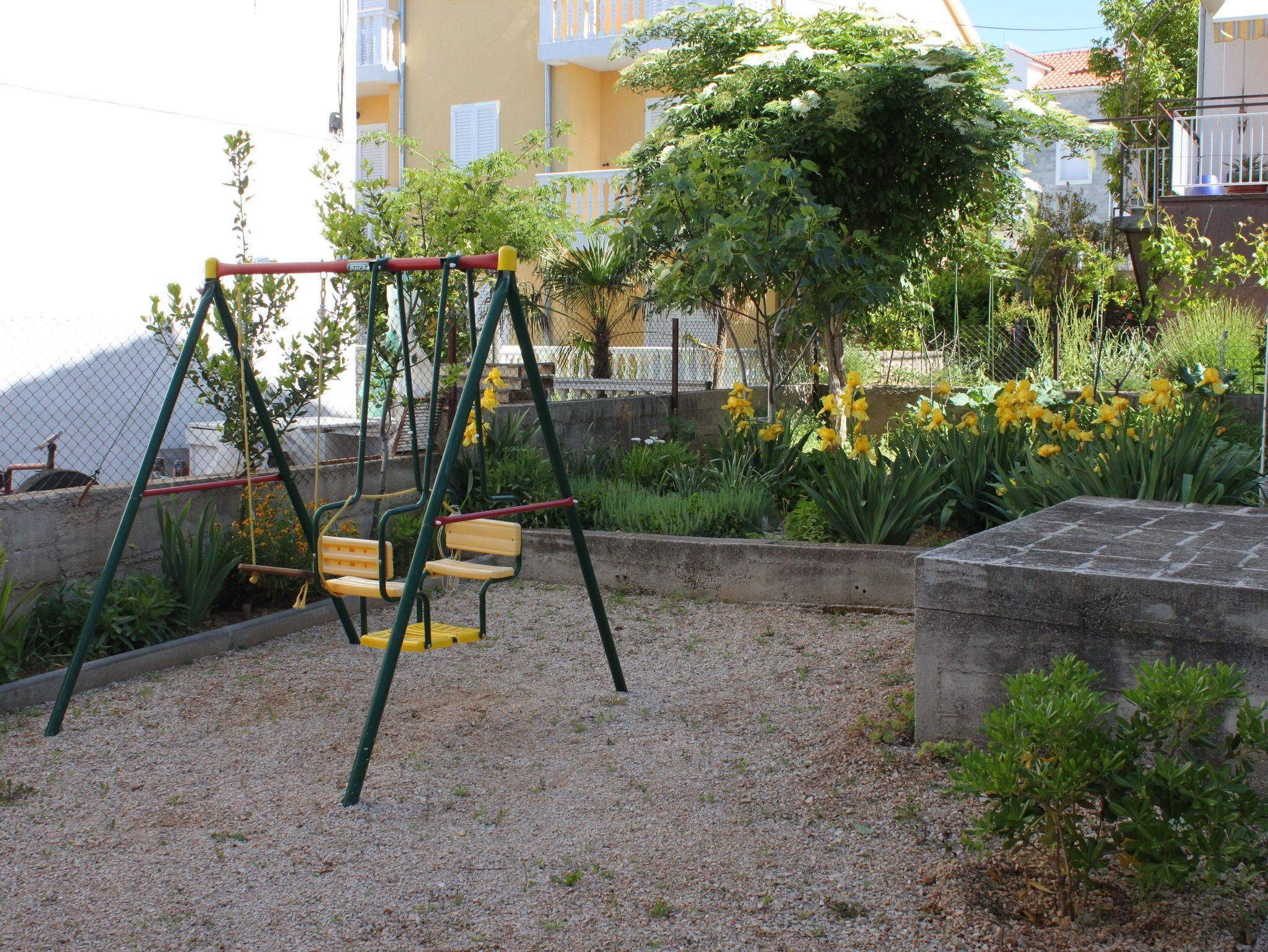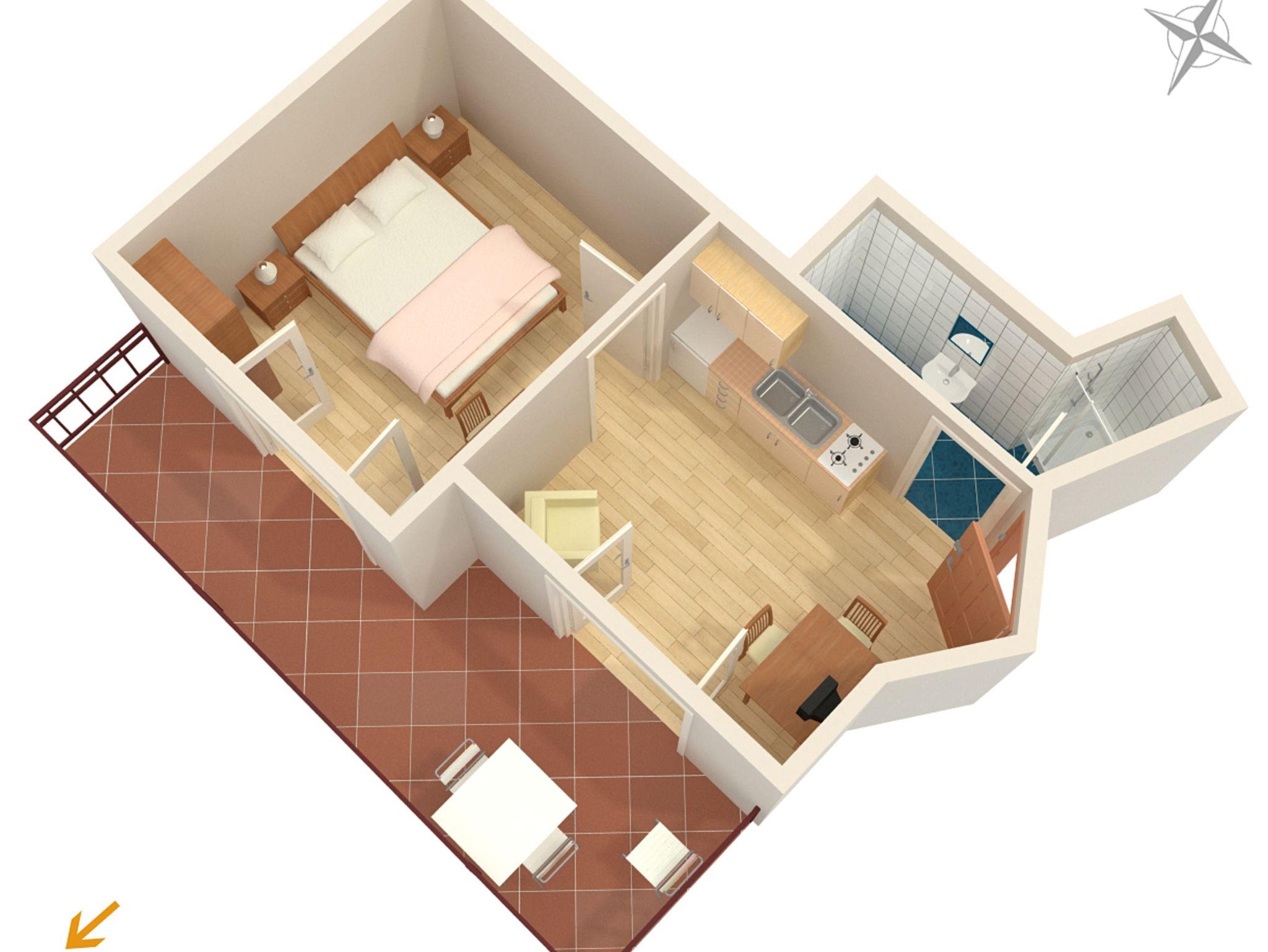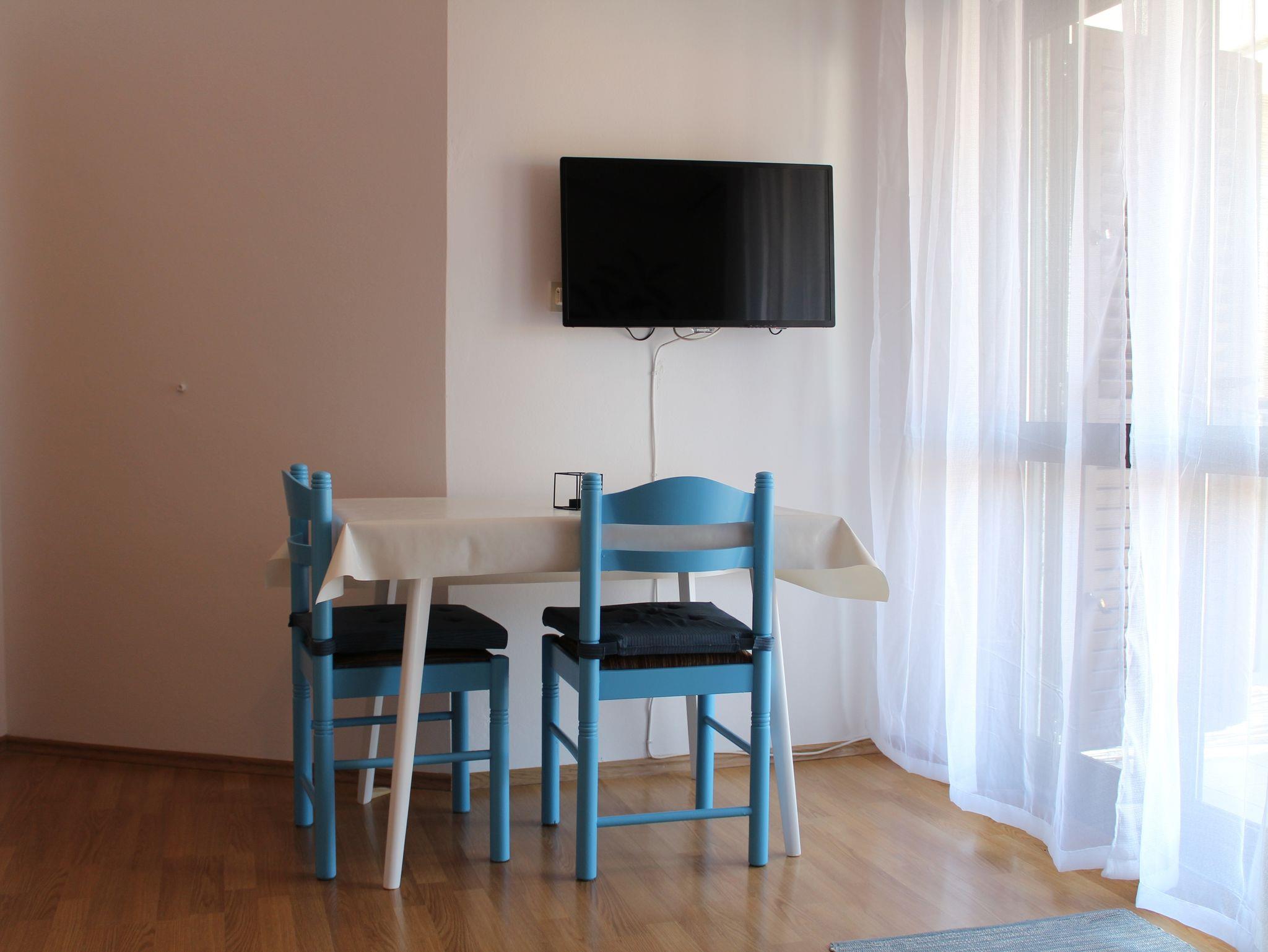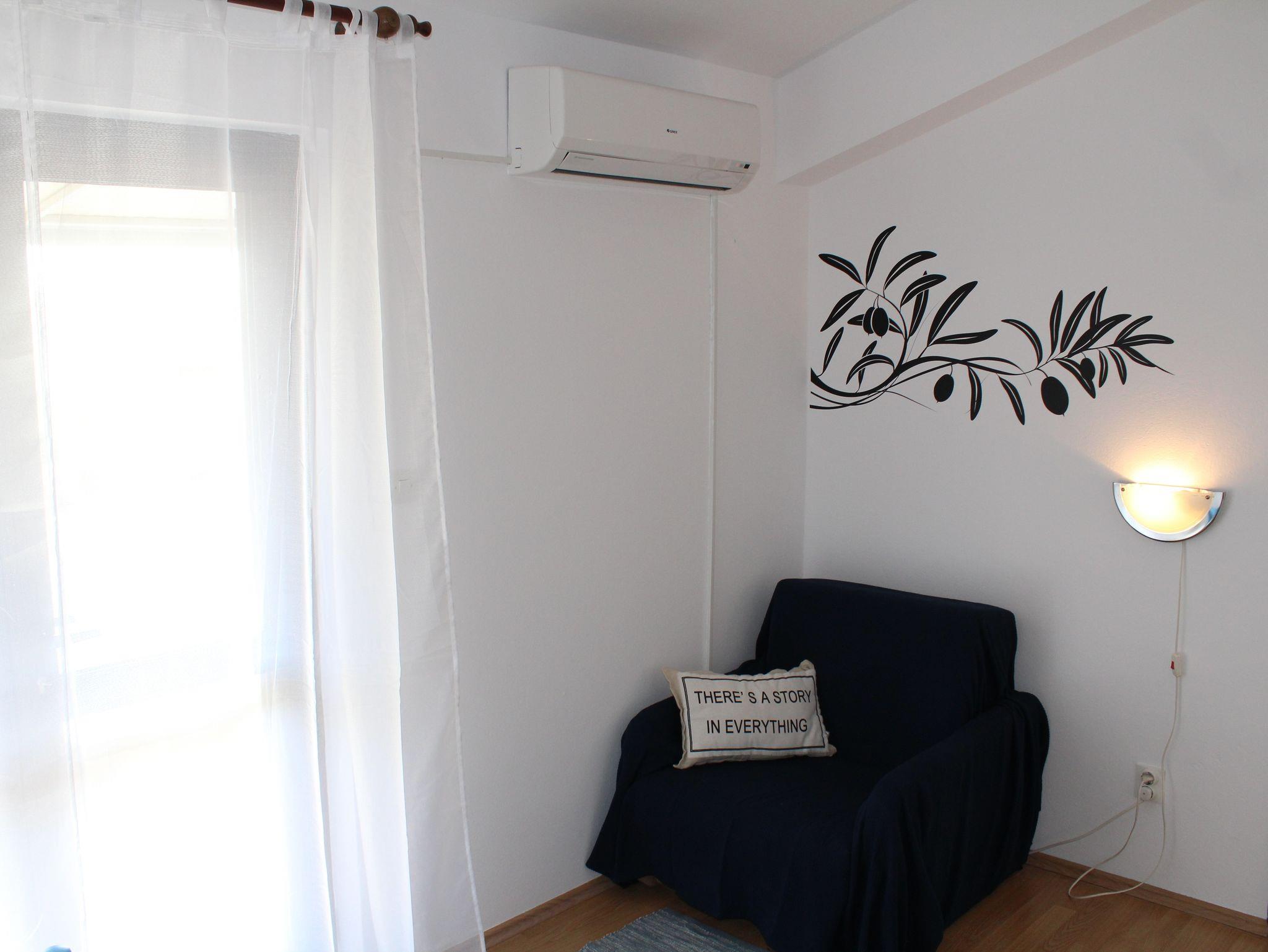 Ferienwohnung bietet Platz für 2 Gäste. Die Betten sind in Schlafzimmern, die es 1 gibt, innerhalb einer Gesamtfläche von 26m2, angeordnet. Die Gäste haben eine eigene Terrasse zur Verfügung, auf der sie in warmen Sommernächten genießen können. Das Apartment bietet Meerblick. Es ist erlaubt, Speisen auf dem Gemeinschafts-Grill vorzubereiten. IM PREIS INBEGRIFFEN: Kurtaxe, Endreinigung, Klimatisierung, Parkplatz, Internet, Bügeleisen, Bügelbrett, Föhn. VERBINDLICHE ZUSÄTZLICHE KOSTEN: Aufzahlung für Kurzaufenthalte (prozentualer Zuschlag pro Nächtigungsanzahl: 30% - 1, 20% - 2, 10% - 3). Die Verfügbarkeit zusätzlicher Dienstleistungen in Ihrem reservierten Termin und die Preise derselben (falls nicht aufgeführt) müssen im Voraus überprüft werden. Zusätzliche Dienstleistungen die in der Zahlungsaufforderung nicht aufgeführt sind werden direkt beim Vermieter bezahlt, angenommen der Gast nutzt auch diese. Ermäßigung auf den Grundpreis: Gratistag 14=13 (bei einem Aufenthalt von 14 Tagen oder mehr erhalten Sie einen Gratistag für den Aufenthalt bis 31.12.26).