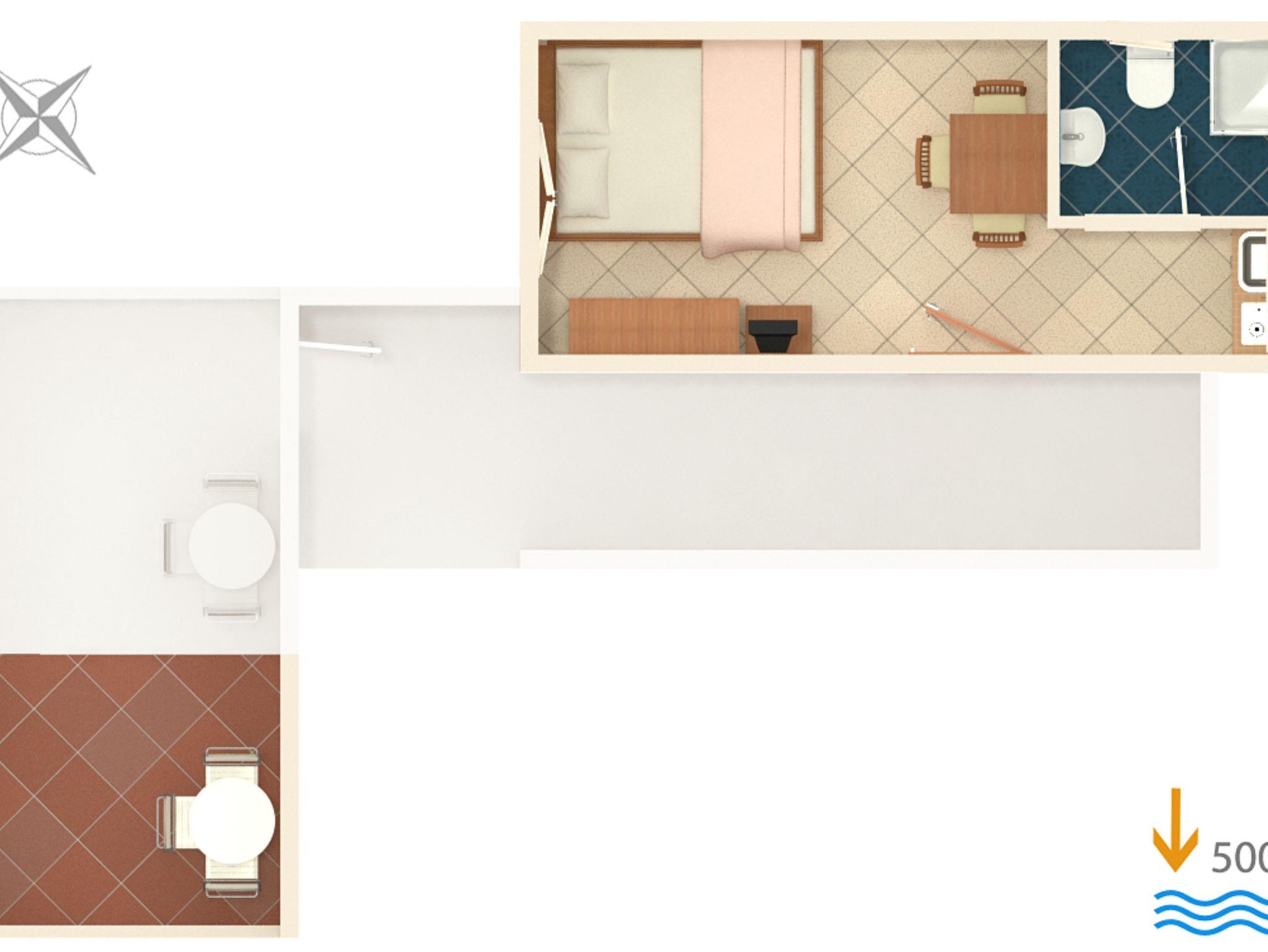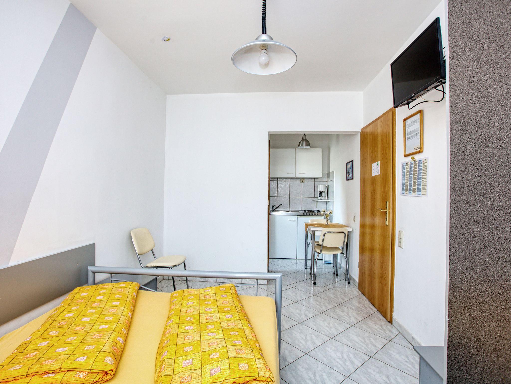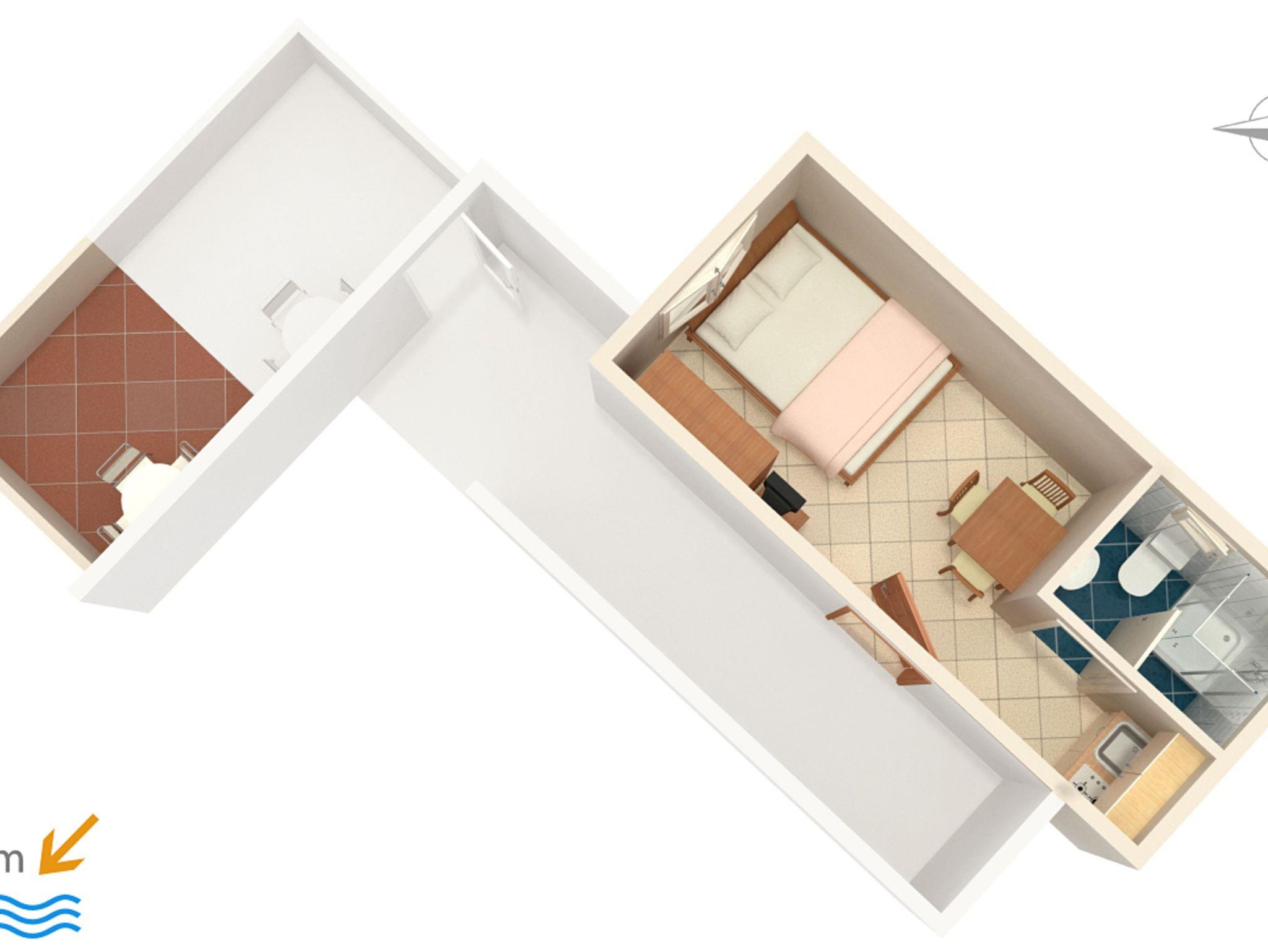 Studio bietet Platz für 2 Gäste. Die Betten sind in Schlafzimmern, die es 1 gibt, innerhalb einer Gesamtfläche von 17m2, angeordnet. Es ist erlaubt, Speisen auf dem Gemeinschafts-Grill vorzubereiten. Die reservierte Unterkunftseinheit verfügt über einen gemeinsame Terrasse. IM PREIS INBEGRIFFEN: Kurtaxe, Endreinigung, Klimatisierung, Parkplatz, Internet. VERBINDLICHE ZUSÄTZLICHE KOSTEN: Aufzahlung für Kurzaufenthalte (prozentualer Zuschlag pro Nächtigungsanzahl: 30% - 1, 20% - 2, 10% - 3). UNVERBINDLICHE ZUSÄTZLICHE KOSTEN: Wäschewaschen (3,00 € Waschen). Die Verfügbarkeit zusätzlicher Dienstleistungen in Ihrem reservierten Termin und die Preise derselben (falls nicht aufgeführt) müssen im Voraus überprüft werden. Zusätzliche Dienstleistungen die in der Zahlungsaufforderung nicht aufgeführt sind werden direkt beim Vermieter bezahlt, angenommen der Gast nutzt auch diese. Ermäßigung auf den Grundpreis: Gratistag 14=13 (bei einem Aufenthalt von 14 Tagen oder mehr erhalten Sie einen Gratistag für den Aufenthalt bis 31.12.26).