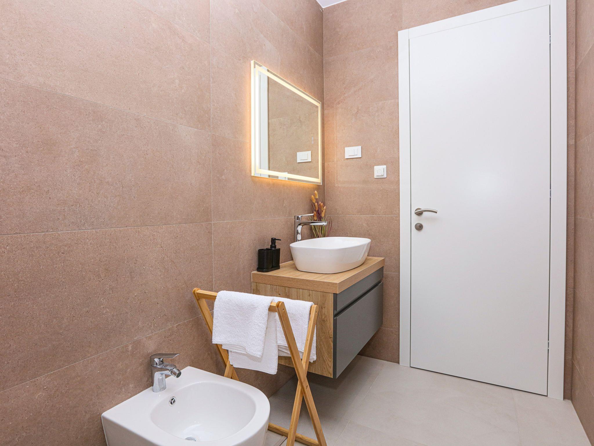 Ferienwohnung bietet Platz für 4 Gäste. Die Betten sind in Schlafzimmern, die es 2 gibt, innerhalb einer Gesamtfläche von 68m2, angeordnet. Die Gäste haben eine eigene Terrasse zur Verfügung, auf der sie in warmen Sommernächten genießen können. In der gebuchten Unterkunftseinheit zahlt man am Ort ein Depositum ( der Preis ist an der Internetseite angeführt ). IM PREIS INBEGRIFFEN: Kurtaxe, Endreinigung, Klimatisierung, Parkplatz, Internet, Bügeleisen, Bügelbrett, Föhn. VERBINDLICHE ZUSÄTZLICHE KOSTEN: Kaution (300,00 € Einmalzahlung). Die Verfügbarkeit zusätzlicher Dienstleistungen in Ihrem reservierten Termin und die Preise derselben (falls nicht aufgeführt) müssen im Voraus überprüft werden. Zusätzliche Dienstleistungen die in der Zahlungsaufforderung nicht aufgeführt sind werden direkt beim Vermieter bezahlt, angenommen der Gast nutzt auch diese.