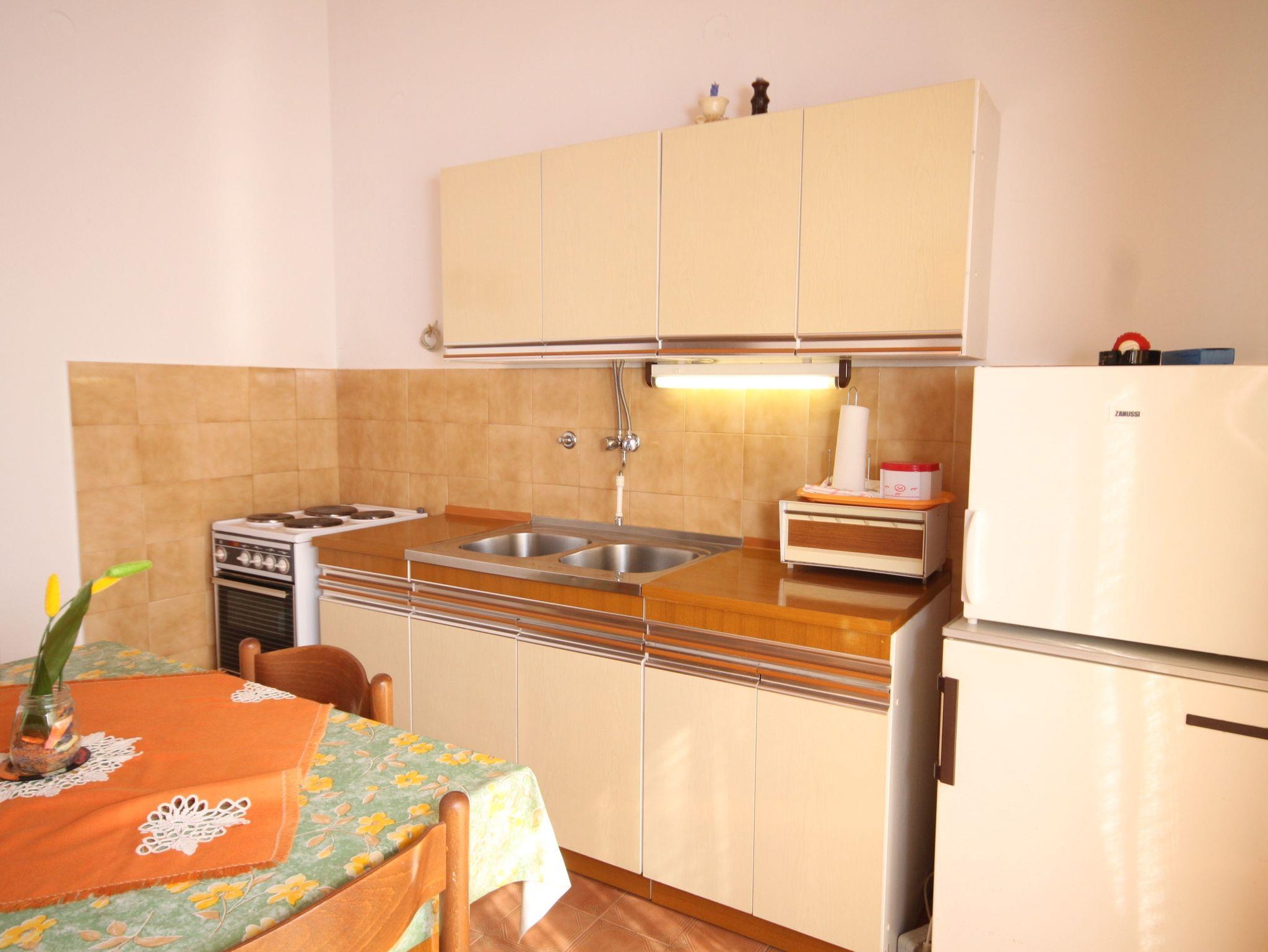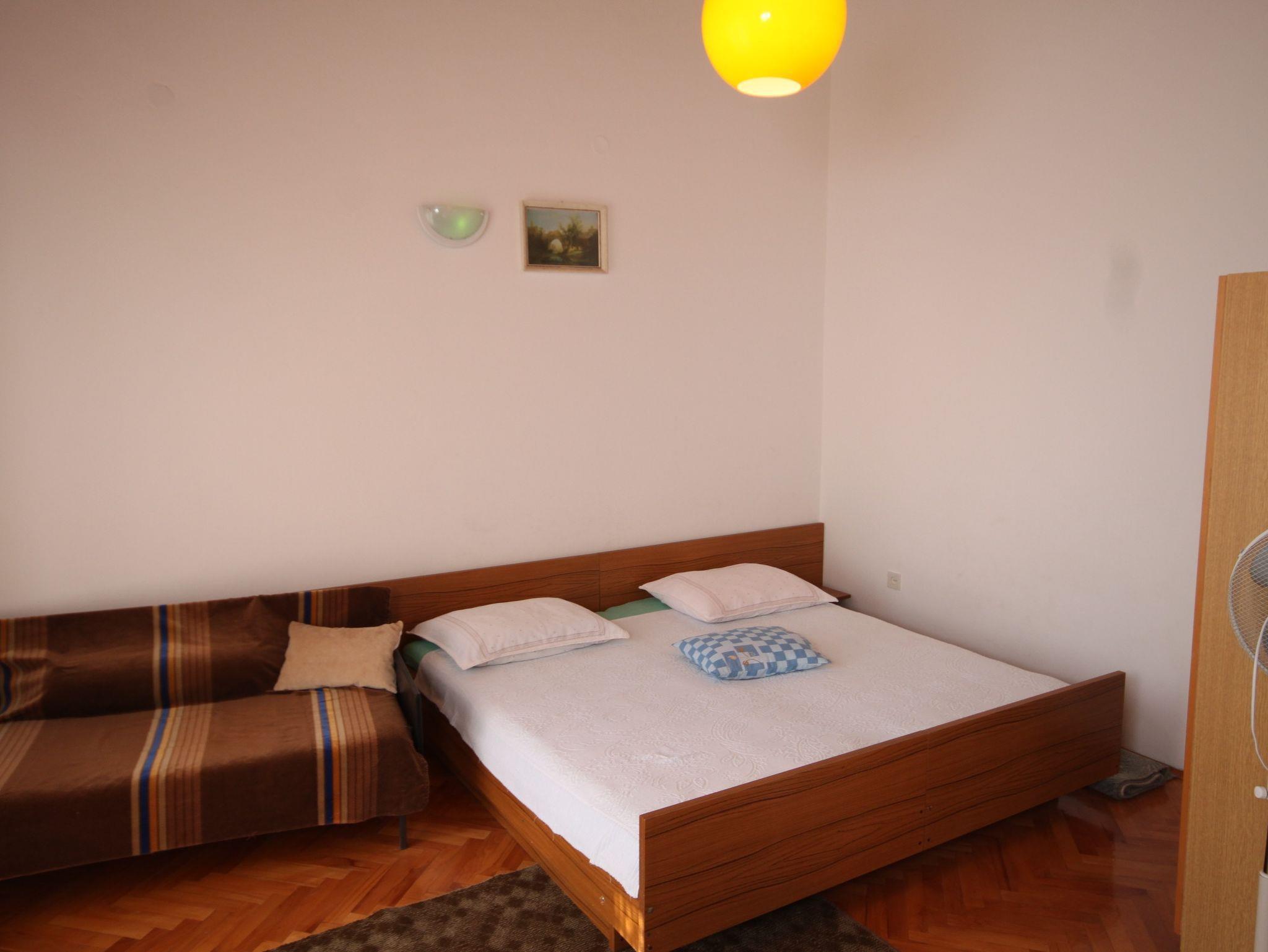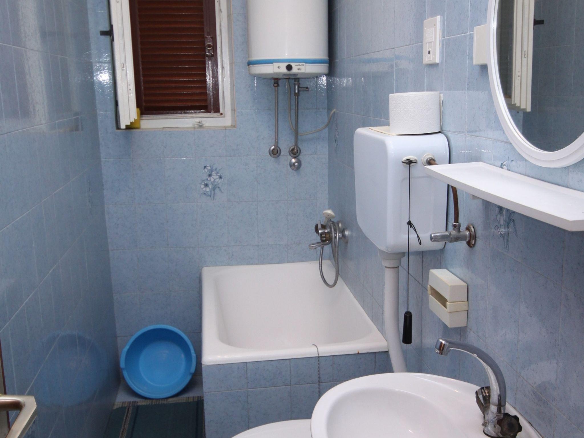 Ferienwohnung bietet Platz für 5 Gäste. Die Betten sind in Schlafzimmern, die es 3 gibt, innerhalb einer Gesamtfläche von 50m2, angeordnet. Die Gäste haben eine eigene Terrasse zur Verfügung, auf der sie in warmen Sommernächten genießen können. Das Apartment bietet Meerblick. Es ist erlaubt, Speisen auf dem Gemeinschafts-Grill vorzubereiten. Unterkunftseinheit hat Räume, die von dem Rest der Einheit abgetrennt werden. IM PREIS INBEGRIFFEN: Kurtaxe, Endreinigung, Parkplatz, Internet, Kinderbett, Bügelbrett, Föhn. VERBINDLICHE ZUSÄTZLICHE KOSTEN: Aufzahlung für Kurzaufenthalte (prozentualer Zuschlag pro Nächtigungsanzahl: 30% - 1, 20% - 2, 10% - 3). UNVERBINDLICHE ZUSÄTZLICHE KOSTEN: Klimatisierung (7,00 € pro Nacht), Wäschewaschen (5,00 € Waschen), Zusatzbett (10,00 € pro Nacht). Die Verfügbarkeit zusätzlicher Dienstleistungen in Ihrem reservierten Termin und die Preise derselben (falls nicht aufgeführt) müssen im Voraus überprüft werden. Zusätzliche Dienstleistungen die in der Zahlungsaufforderung nicht aufgeführt sind werden direkt beim Vermieter bezahlt, angenommen der Gast nutzt auch diese.