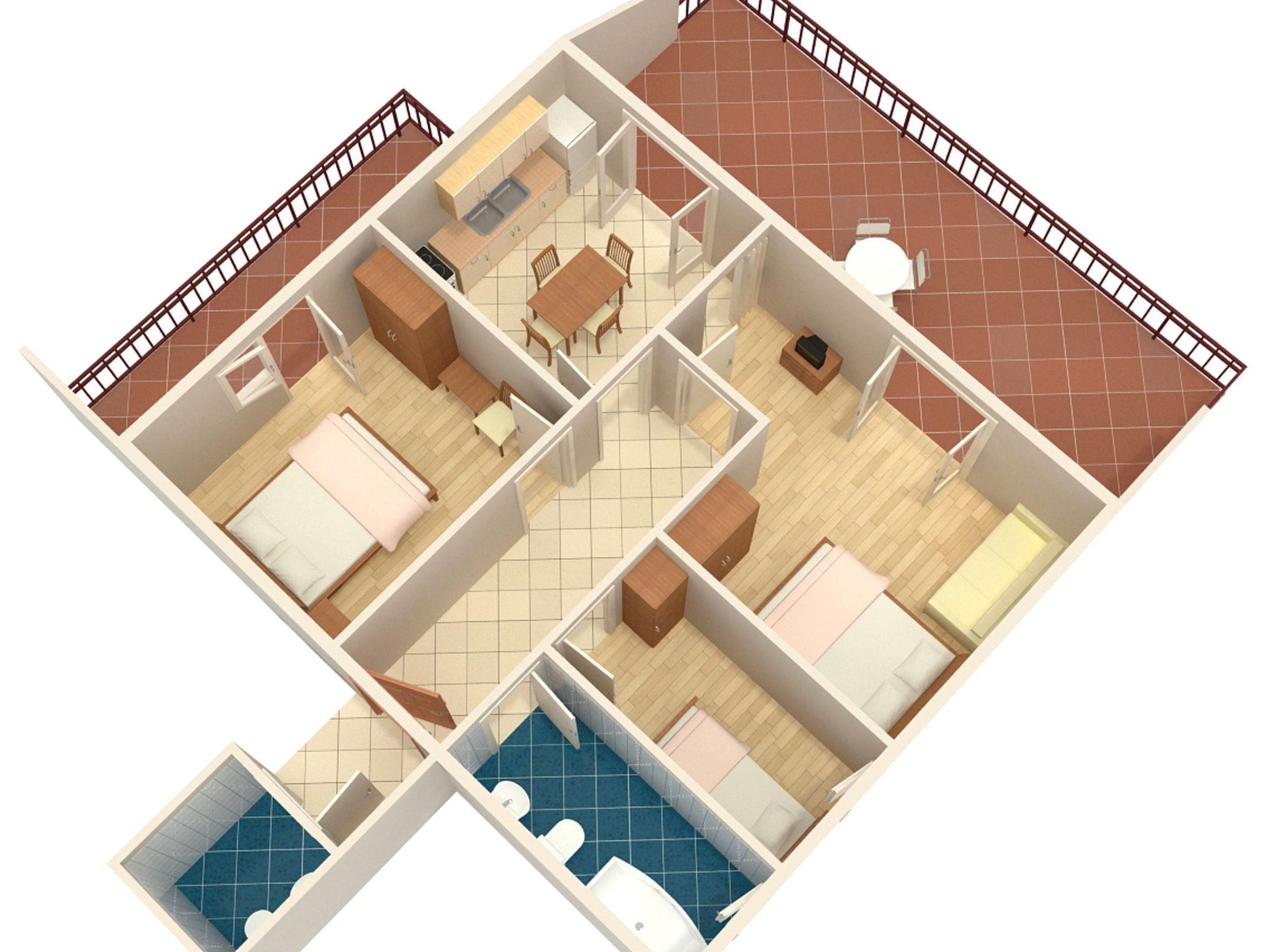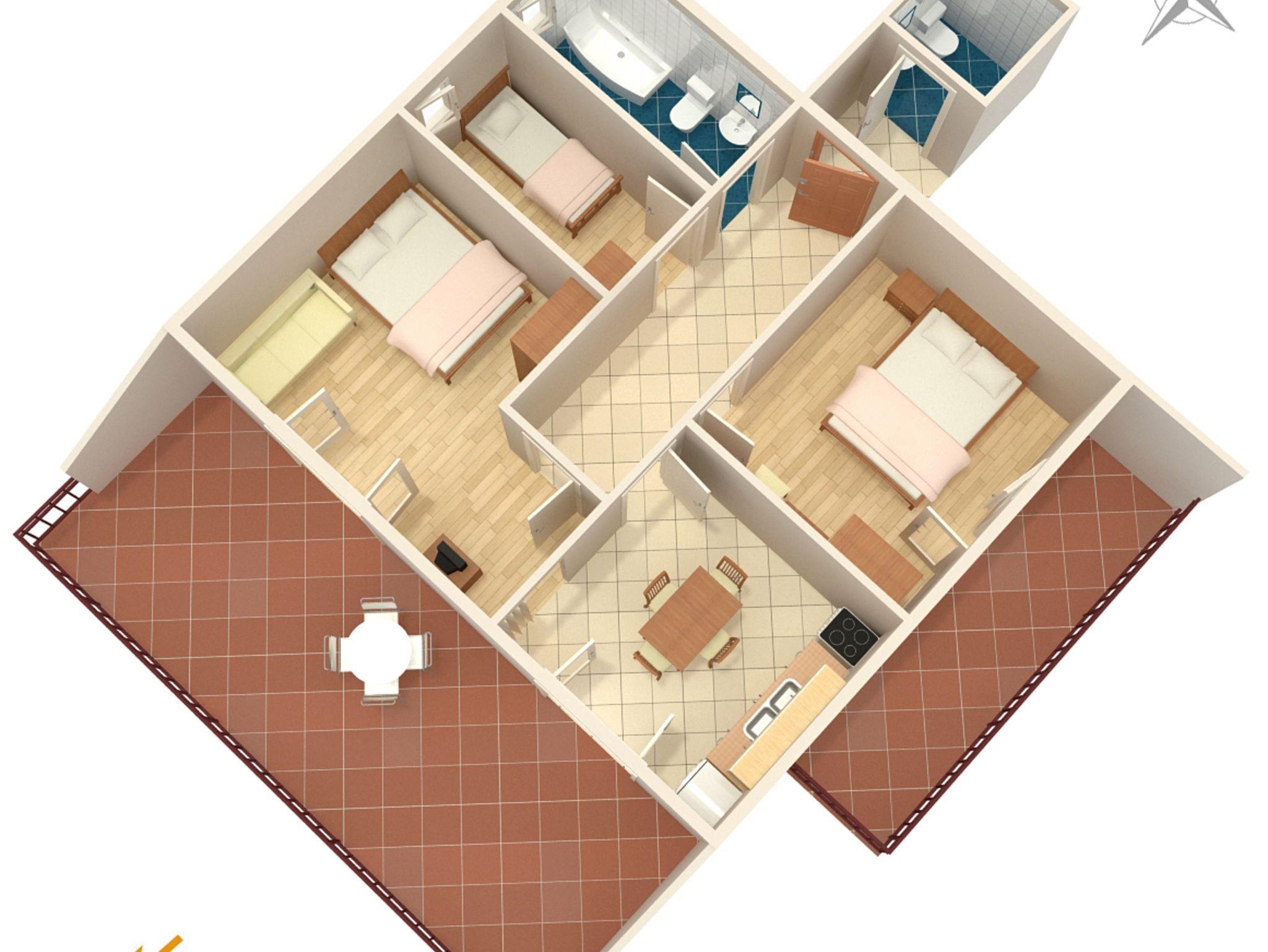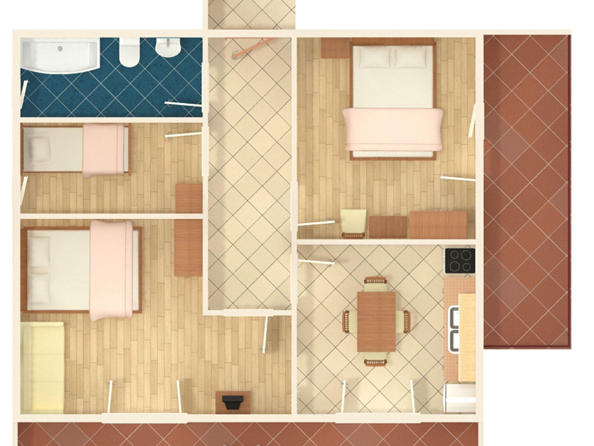 Ferienwohnung bietet Platz für 5 Gäste. Die Betten sind in Schlafzimmern, die es 3 gibt, innerhalb einer Gesamtfläche von 50m2, angeordnet. Die Gäste haben eine eigene Terrasse zur Verfügung, auf der sie in warmen Sommernächten genießen können. Das Apartment bietet Meerblick. Es ist erlaubt, Speisen auf dem Gemeinschafts-Grill vorzubereiten. Unterkunftseinheit hat Räume, die von dem Rest der Einheit abgetrennt werden. IM PREIS INBEGRIFFEN: Kurtaxe, Endreinigung, Parkplatz, Internet, Kinderbett, Bügelbrett, Föhn. VERBINDLICHE ZUSÄTZLICHE KOSTEN: Aufzahlung für Kurzaufenthalte (prozentualer Zuschlag pro Nächtigungsanzahl: 30% - 1, 20% - 2, 10% - 3). UNVERBINDLICHE ZUSÄTZLICHE KOSTEN: Klimatisierung (7,00 € pro Nacht), Wäschewaschen (5,00 € Waschen), Zusatzbett (10,00 € pro Nacht). Die Verfügbarkeit zusätzlicher Dienstleistungen in Ihrem reservierten Termin und die Preise derselben (falls nicht aufgeführt) müssen im Voraus überprüft werden. Zusätzliche Dienstleistungen die in der Zahlungsaufforderung nicht aufgeführt sind werden direkt beim Vermieter bezahlt, angenommen der Gast nutzt auch diese.