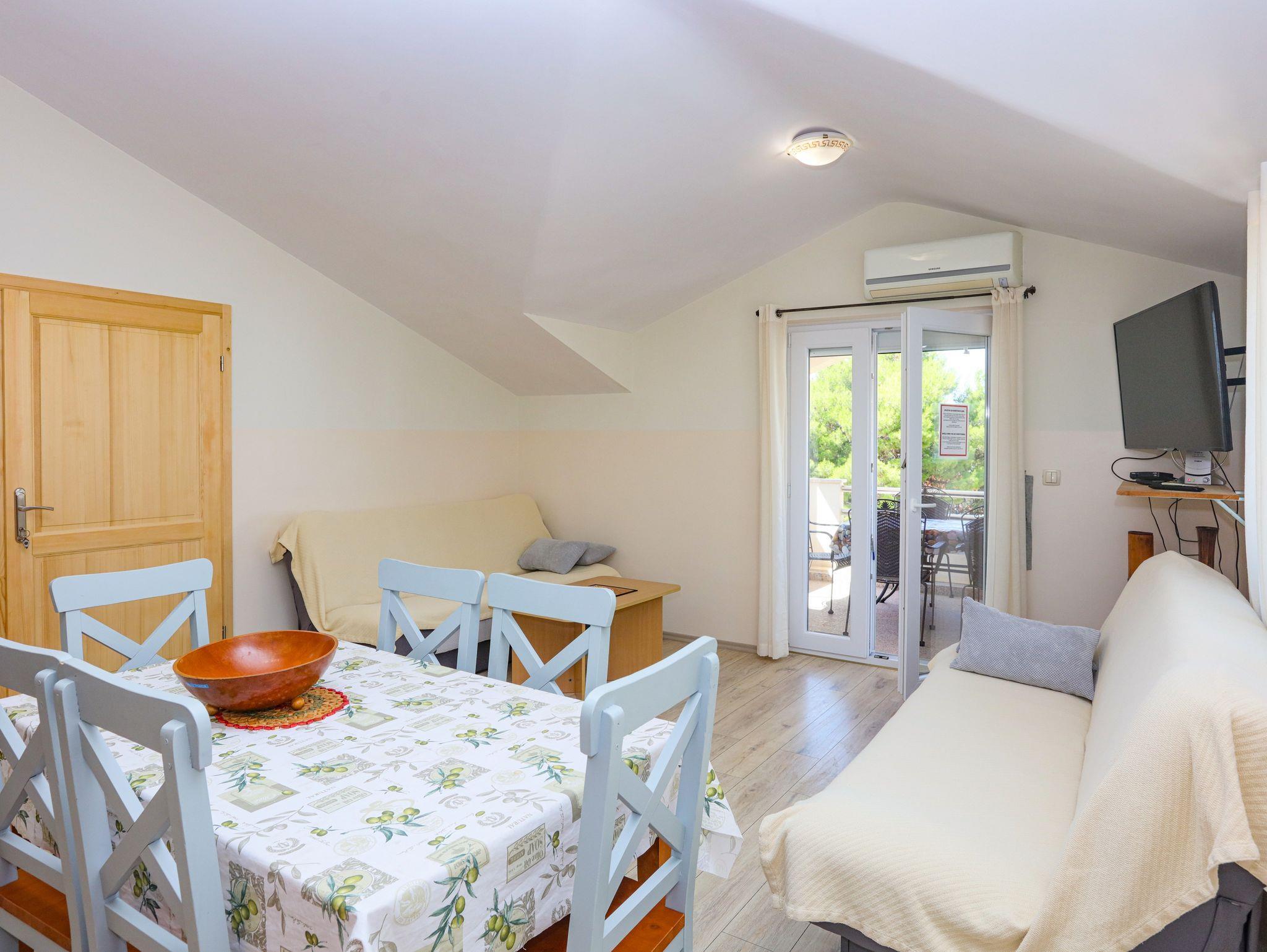 Ferienwohnung bietet Platz für 6 Gäste. Die Betten sind in Schlafzimmern, die es 2 gibt, und in Wohnzimmer, innerhalb einer Gesamtfläche von 57m2, angeordnet. Die Gäste haben einen eigenen Balkon zur Verfügung, auf der sie in warmen Sommernächten genießen können. Es ist erlaubt, Speisen auf dem Gemeinschafts-Grill vorzubereiten. In der Unterkunftseinheit besteht die Möglichkeit des Mitbringens von Haustieren, und die Dienstleistung ist im Preis der Unterkunft enthalten. IM PREIS INBEGRIFFEN: Kurtaxe, Endreinigung, Klimatisierung, Parkplatz, Internet, Wäschewaschen, Haustiere, Kinderbett, Zusatzbett, Föhn. Die Verfügbarkeit zusätzlicher Dienstleistungen in Ihrem reservierten Termin und die Preise derselben (falls nicht aufgeführt) müssen im Voraus überprüft werden. Zusätzliche Dienstleistungen die in der Zahlungsaufforderung nicht aufgeführt sind werden direkt beim Vermieter bezahlt, angenommen der Gast nutzt auch diese. Ermäßigung auf den Grundpreis: Gratistag 14=13 (bei einem Aufenthalt von 14 Tagen oder mehr erhalten Sie einen Gratistag für den Aufenthalt bis 31.12.26).
