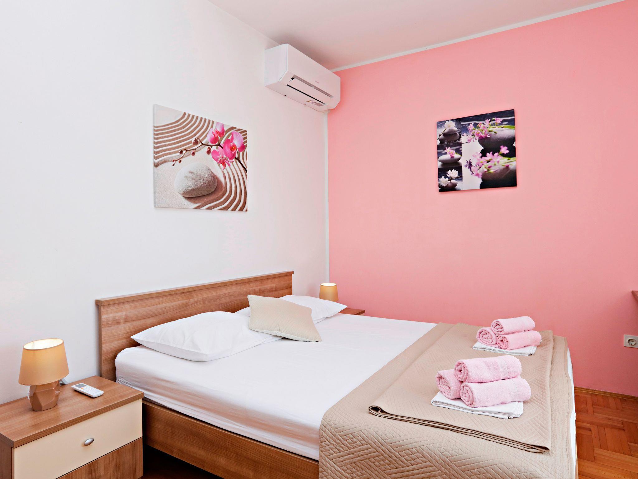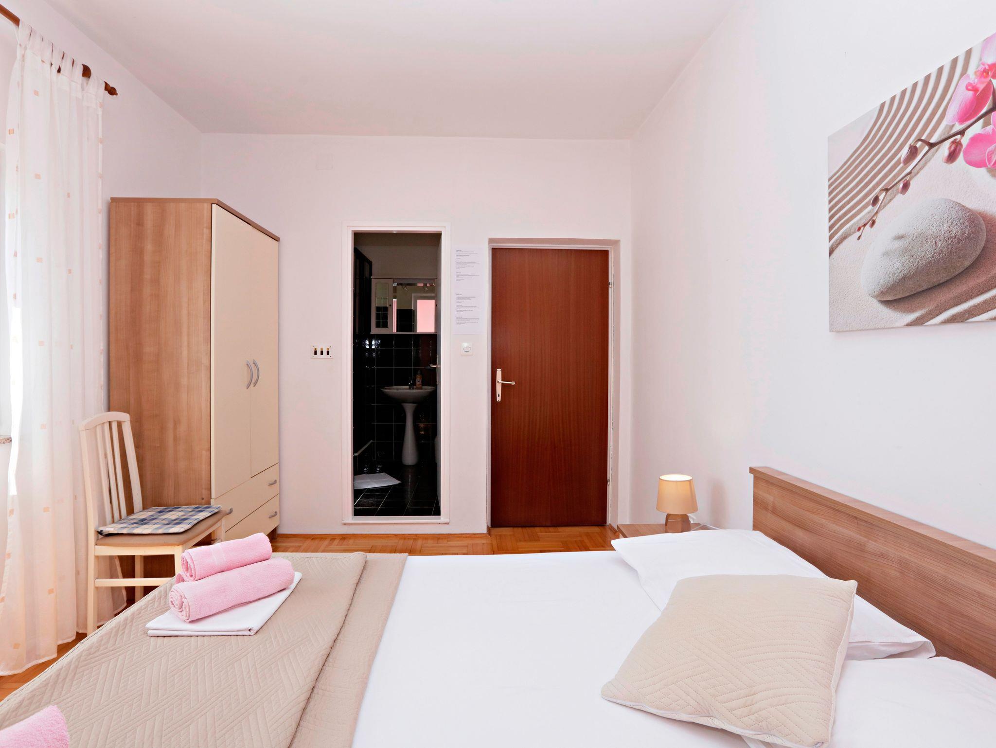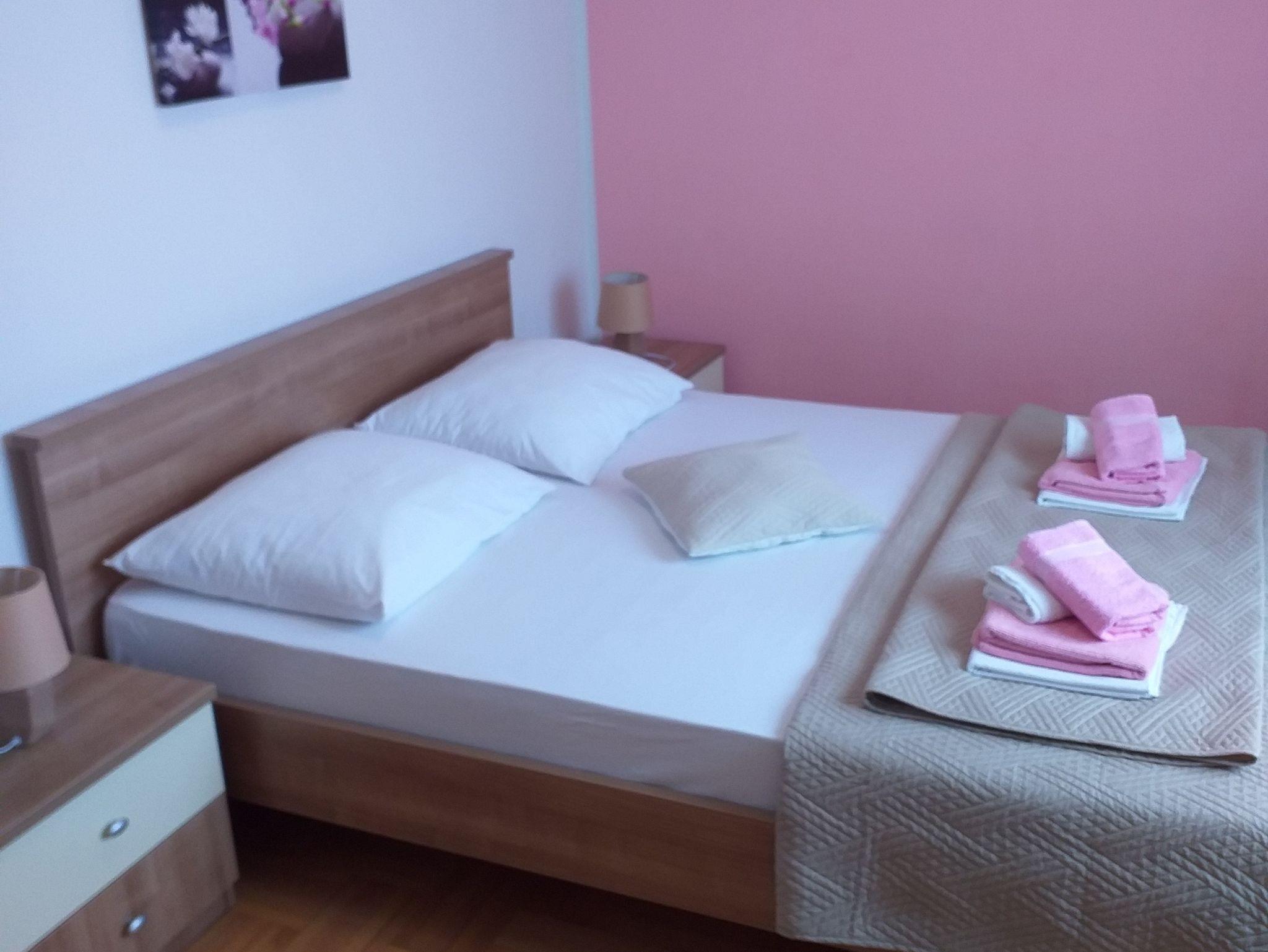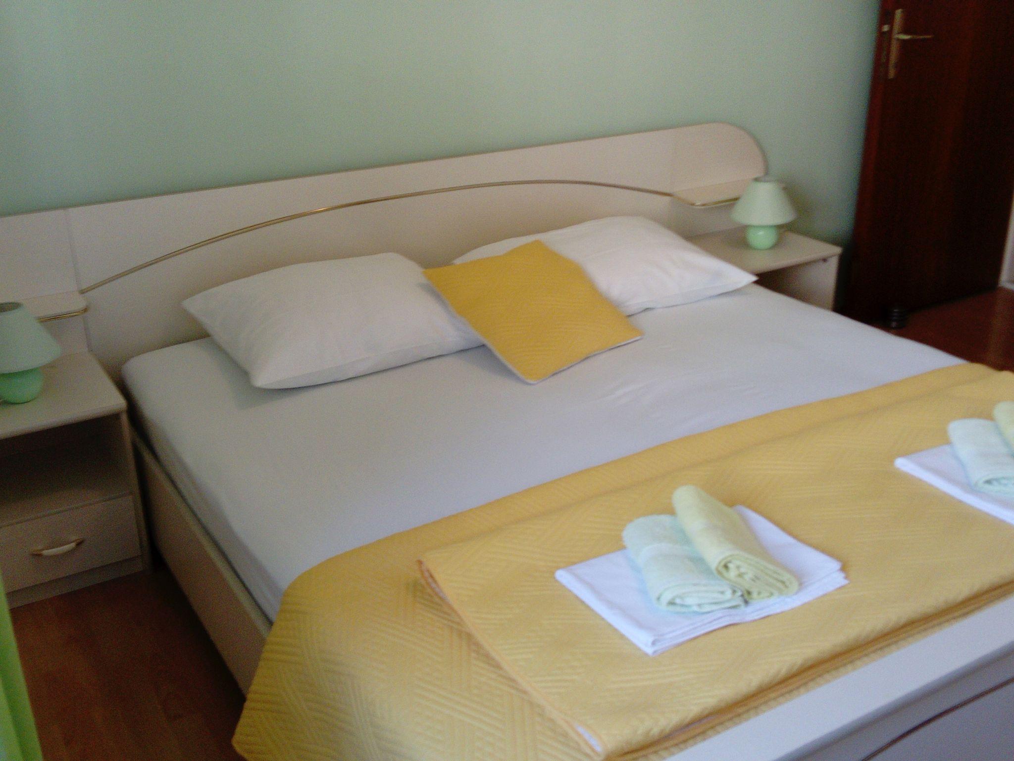 Ferienwohnung bietet Platz für 6 Gäste. Die Betten sind in Schlafzimmern, die es 3 gibt, innerhalb einer Gesamtfläche von 87m2, angeordnet. Die Gäste haben eine eigene Terrasse zur Verfügung, auf der sie in warmen Sommernächten genießen können. Es ist erlaubt, Speisen auf dem Gemeinschafts-Grill vorzubereiten. In der Unterkunftseinheit besteht die Möglichkeit des Mitbringens von Haustieren, und die Dienstleistung ist im Preis der Unterkunft enthalten. IM PREIS INBEGRIFFEN: Kurtaxe, Endreinigung, Klimatisierung, Parkplatz, Internet, Wäschewaschen, Bootsanlegeplatz, Haustiere, Kinderbett, Zusatzbett, Bügeleisen, Bügelbrett, Föhn. Die Verfügbarkeit zusätzlicher Dienstleistungen in Ihrem reservierten Termin und die Preise derselben (falls nicht aufgeführt) müssen im Voraus überprüft werden. Zusätzliche Dienstleistungen die in der Zahlungsaufforderung nicht aufgeführt sind werden direkt beim Vermieter bezahlt, angenommen der Gast nutzt auch diese.