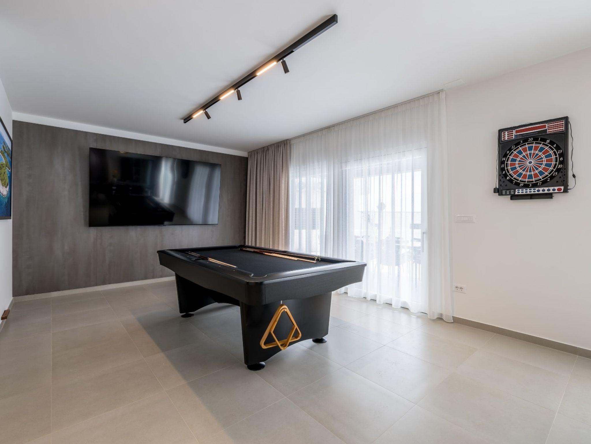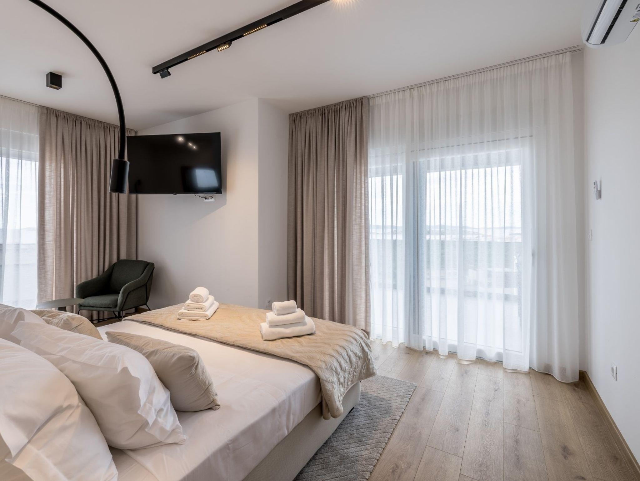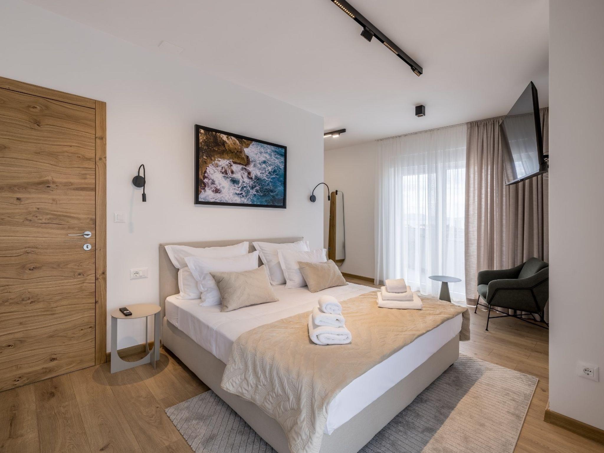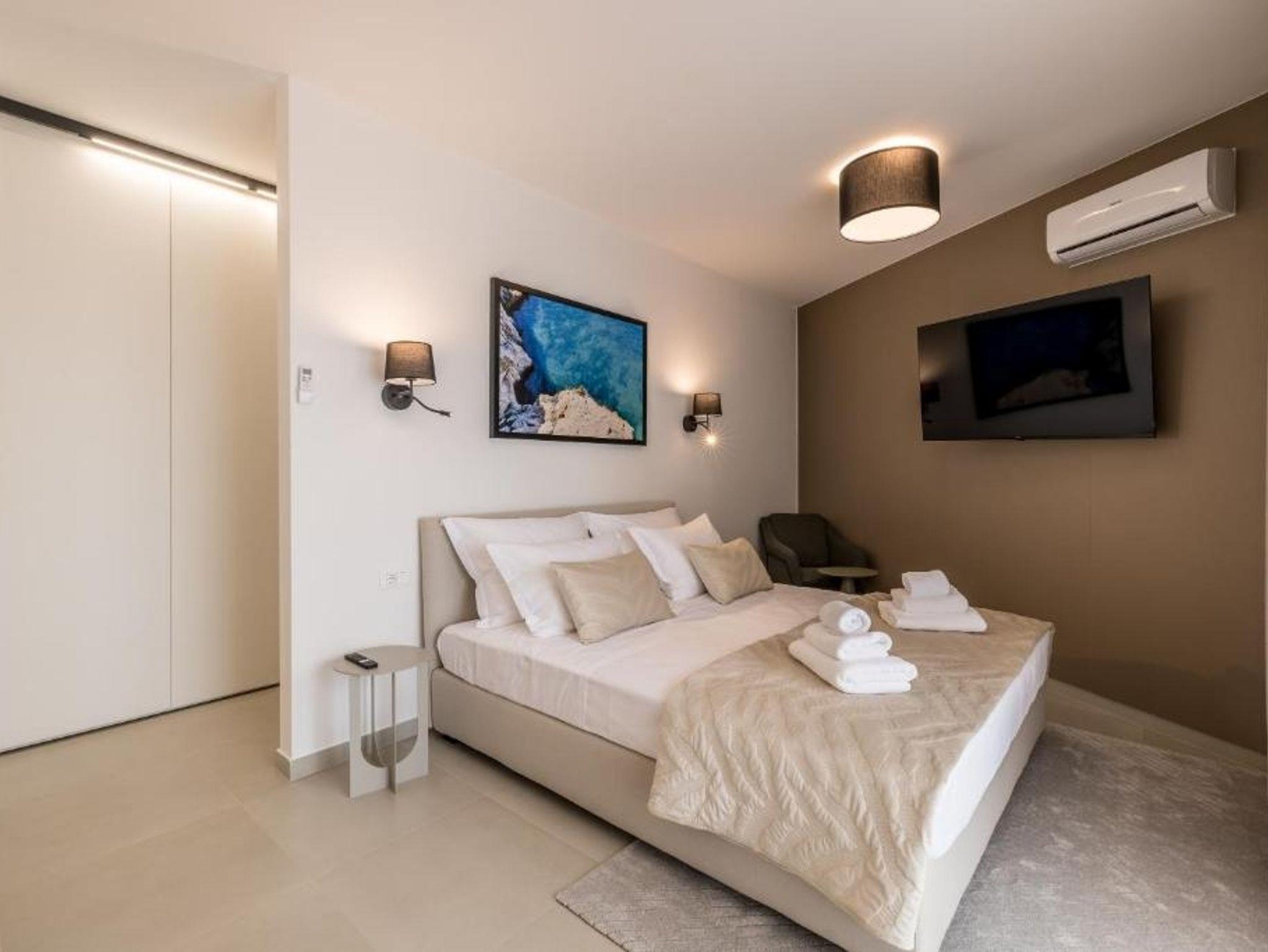 Haus bietet Platz für 10 Gäste. Die Betten sind in Schlafzimmern, die es 4 gibt, und in Wohnzimmer, innerhalb einer Gesamtfläche von 223m2, angeordnet. Die Gäste haben eine eigene Terrasse zur Verfügung, auf der sie in warmen Sommernächten genießen können. Das Haus bietet Meerblick. Für vollen Genuss und Entspannung gibt es einen privaten Grill für Gäste dieser Unterkunft. Während ihres Aufenthalts können sich Gäste im privaten Schwimmbad entspannen. IM PREIS INBEGRIFFEN: Kurtaxe, Endreinigung, Klimatisierung, Pool, Parkplatz, Internet, Kinderbett, Bügeleisen, Bügelbrett, Föhn, Sonnenschirm, Liegestühle. Die Verfügbarkeit zusätzlicher Dienstleistungen in Ihrem reservierten Termin und die Preise derselben (falls nicht aufgeführt) müssen im Voraus überprüft werden. Zusätzliche Dienstleistungen die in der Zahlungsaufforderung nicht aufgeführt sind werden direkt beim Vermieter bezahlt, angenommen der Gast nutzt auch diese.