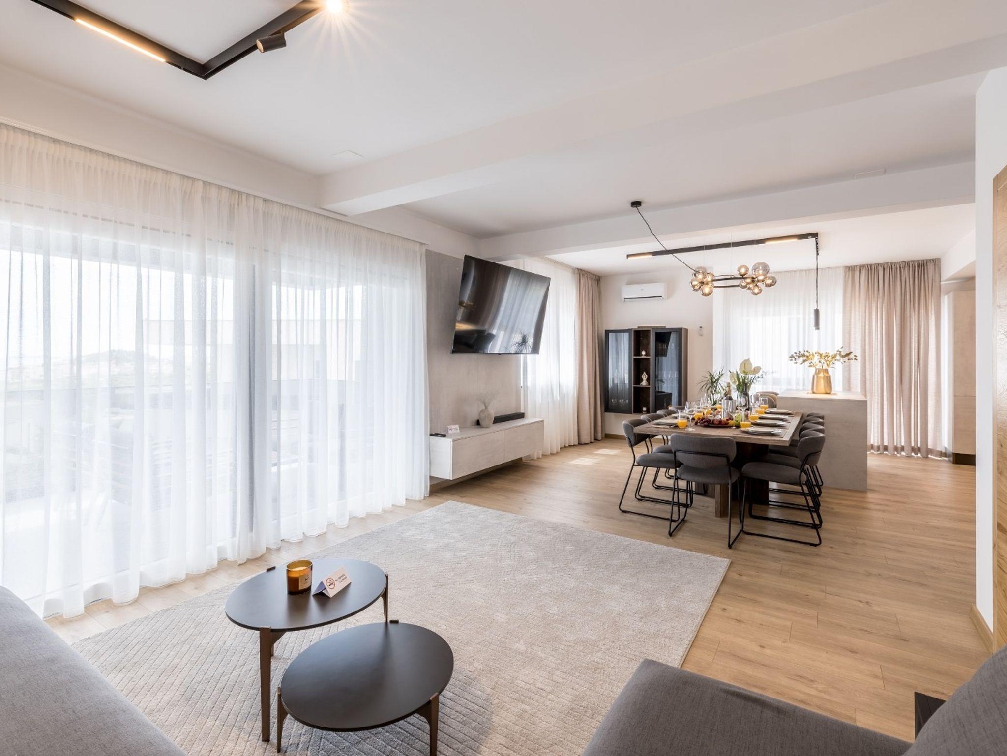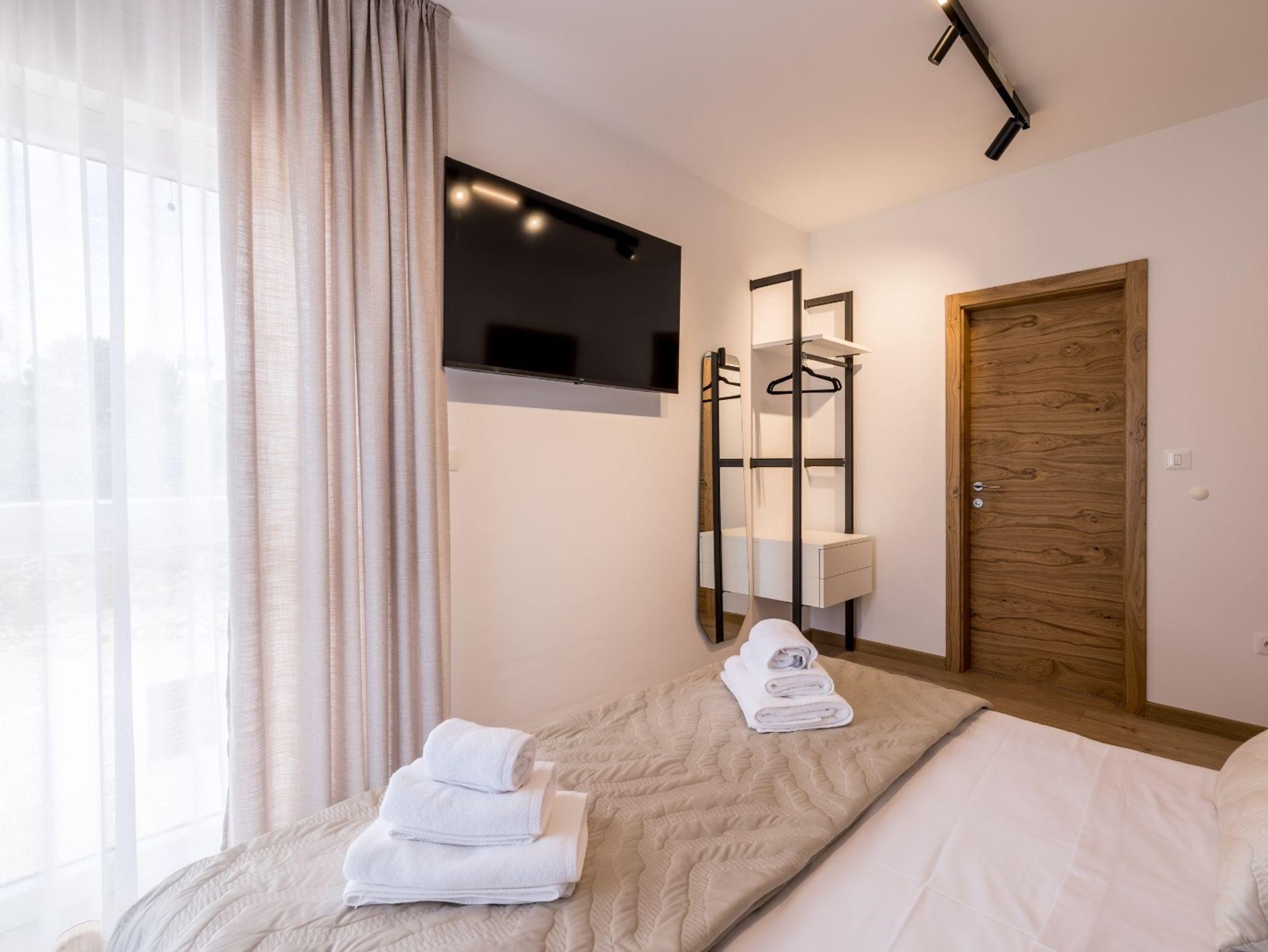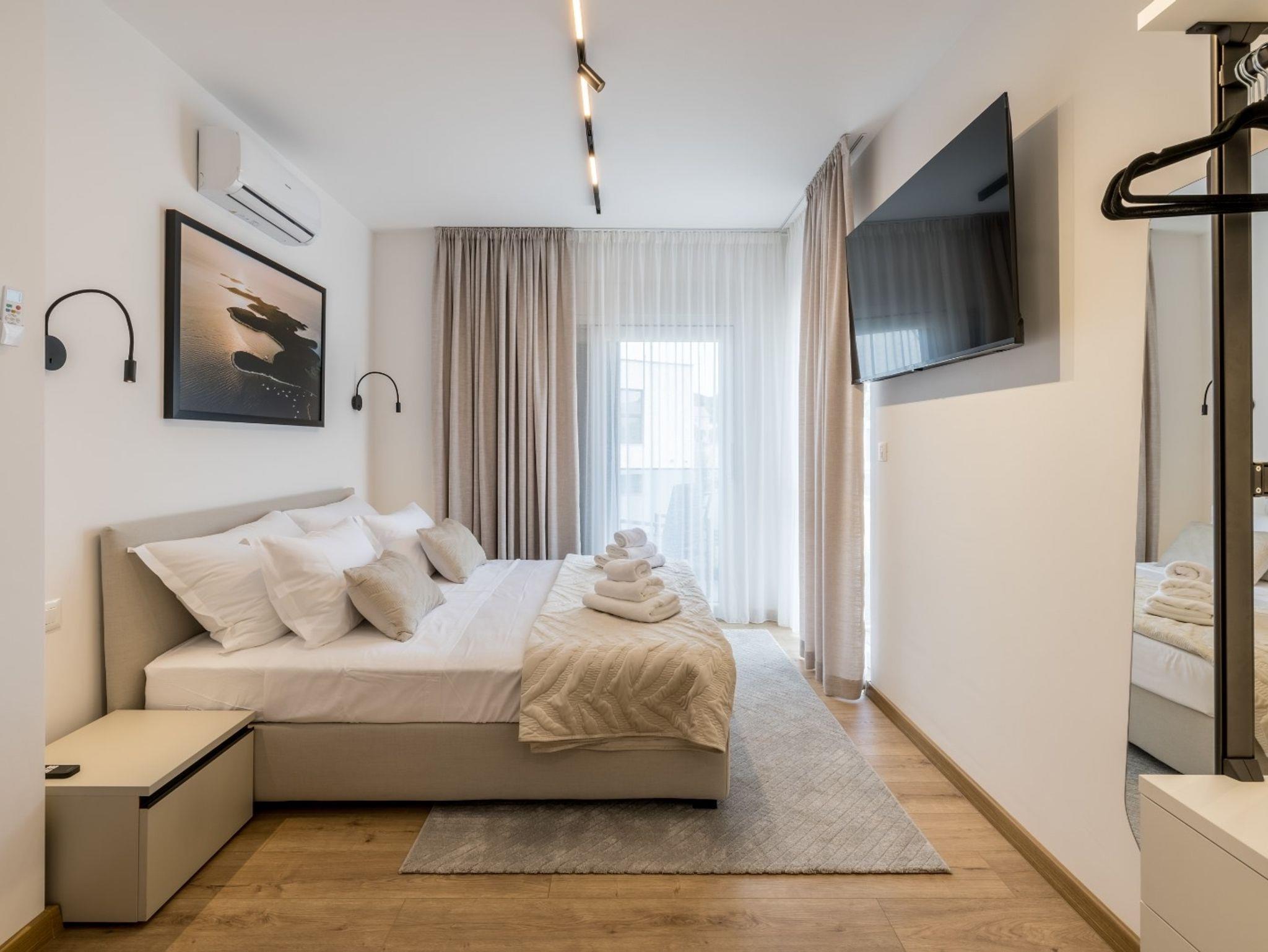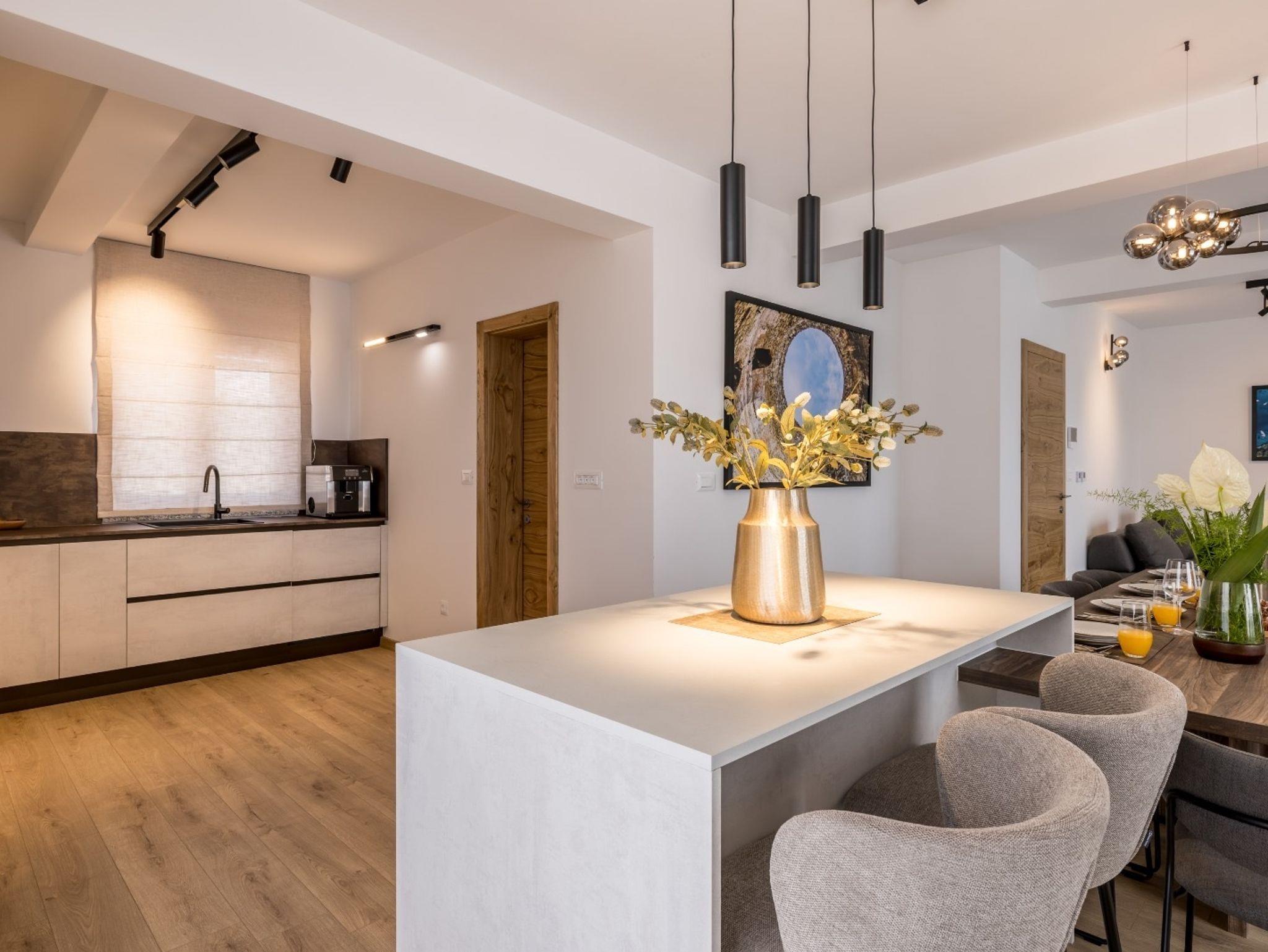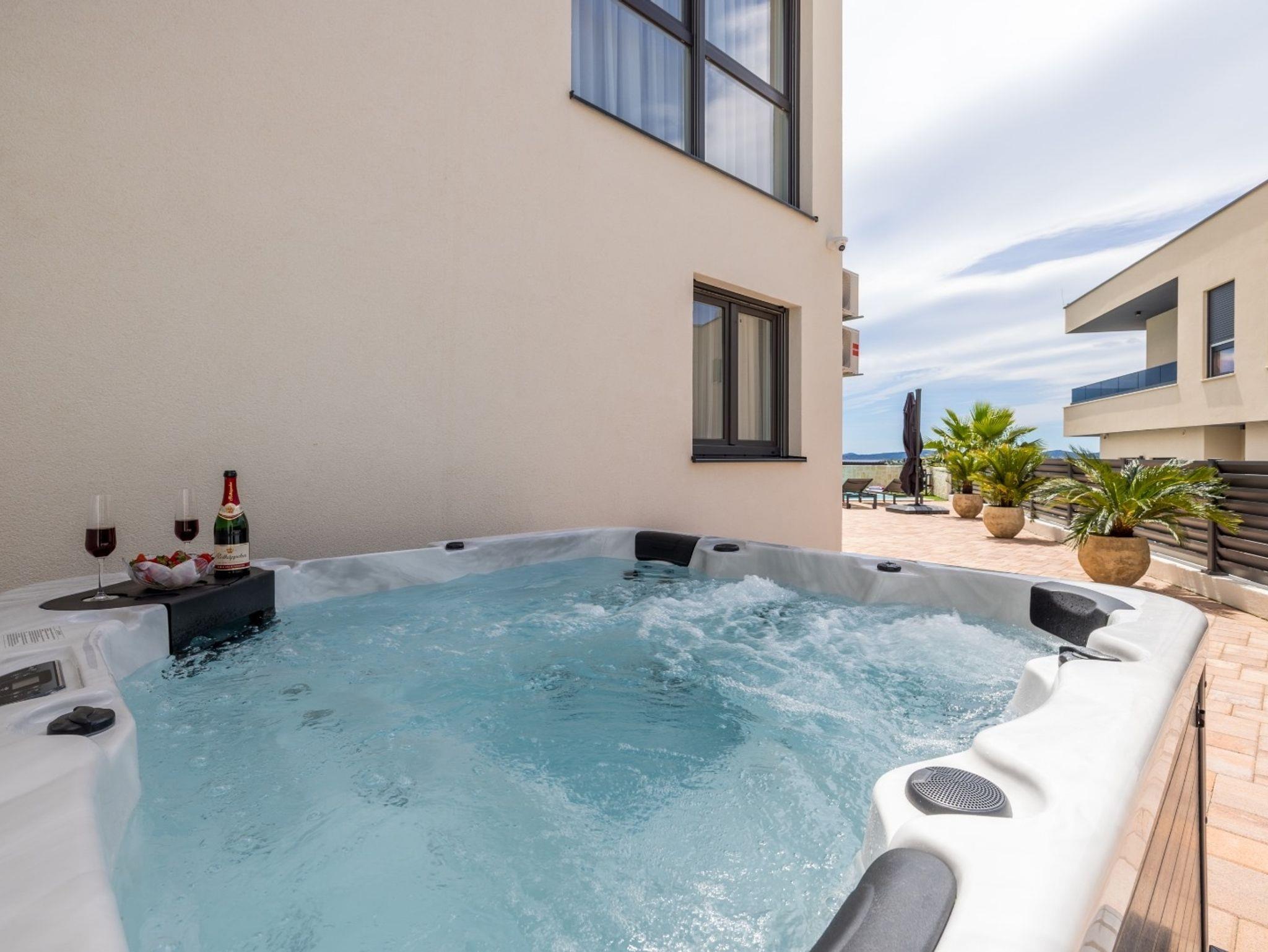 Haus bietet Platz für 10 Gäste. Die Betten sind in Schlafzimmern, die es 4 gibt, und in Wohnzimmer, innerhalb einer Gesamtfläche von 223m2, angeordnet. Die Gäste haben eine eigene Terrasse zur Verfügung, auf der sie in warmen Sommernächten genießen können. Das Haus bietet Meerblick. Für vollen Genuss und Entspannung gibt es einen privaten Grill für Gäste dieser Unterkunft. Während ihres Aufenthalts können sich Gäste im privaten Schwimmbad entspannen. IM PREIS INBEGRIFFEN: Kurtaxe, Endreinigung, Klimatisierung, Pool, Parkplatz, Internet, Kinderbett, Bügeleisen, Bügelbrett, Föhn, Sonnenschirm, Liegestühle. Die Verfügbarkeit zusätzlicher Dienstleistungen in Ihrem reservierten Termin und die Preise derselben (falls nicht aufgeführt) müssen im Voraus überprüft werden. Zusätzliche Dienstleistungen die in der Zahlungsaufforderung nicht aufgeführt sind werden direkt beim Vermieter bezahlt, angenommen der Gast nutzt auch diese.