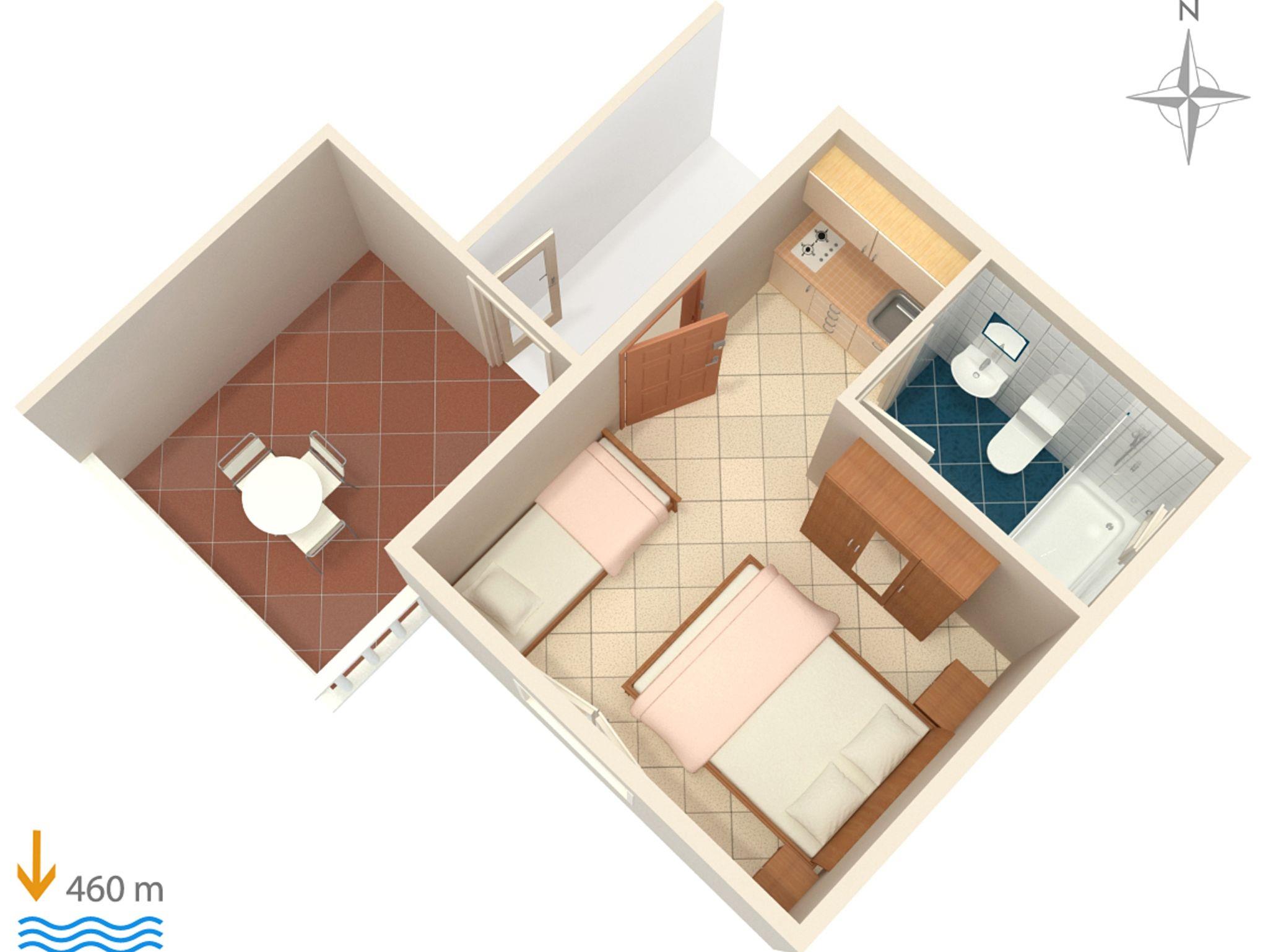 Studio bietet Platz für 3 Gäste. Die Betten sind in Schlafzimmern, die es 1 gibt, innerhalb einer Gesamtfläche von 18m2, angeordnet. Die Gäste haben eine eigene Terrasse zur Verfügung, auf der sie in warmen Sommernächten genießen können. Es ist erlaubt, Speisen auf dem Gemeinschafts-Grill vorzubereiten. Unterkunftseinheit hat Räume, die von dem Rest der Einheit abgetrennt werden. IM PREIS INBEGRIFFEN: Kurtaxe, Endreinigung, Klimatisierung, Parkplatz, Internet, Kinderbett, tragbarer Grill. VERBINDLICHE ZUSÄTZLICHE KOSTEN: Aufzahlung für Kurzaufenthalte (prozentualer Zuschlag pro Nächtigungsanzahl: 30% - 1, 20% - 2, 10% - 3). Die Verfügbarkeit zusätzlicher Dienstleistungen in Ihrem reservierten Termin und die Preise derselben (falls nicht aufgeführt) müssen im Voraus überprüft werden. Zusätzliche Dienstleistungen die in der Zahlungsaufforderung nicht aufgeführt sind werden direkt beim Vermieter bezahlt, angenommen der Gast nutzt auch diese.