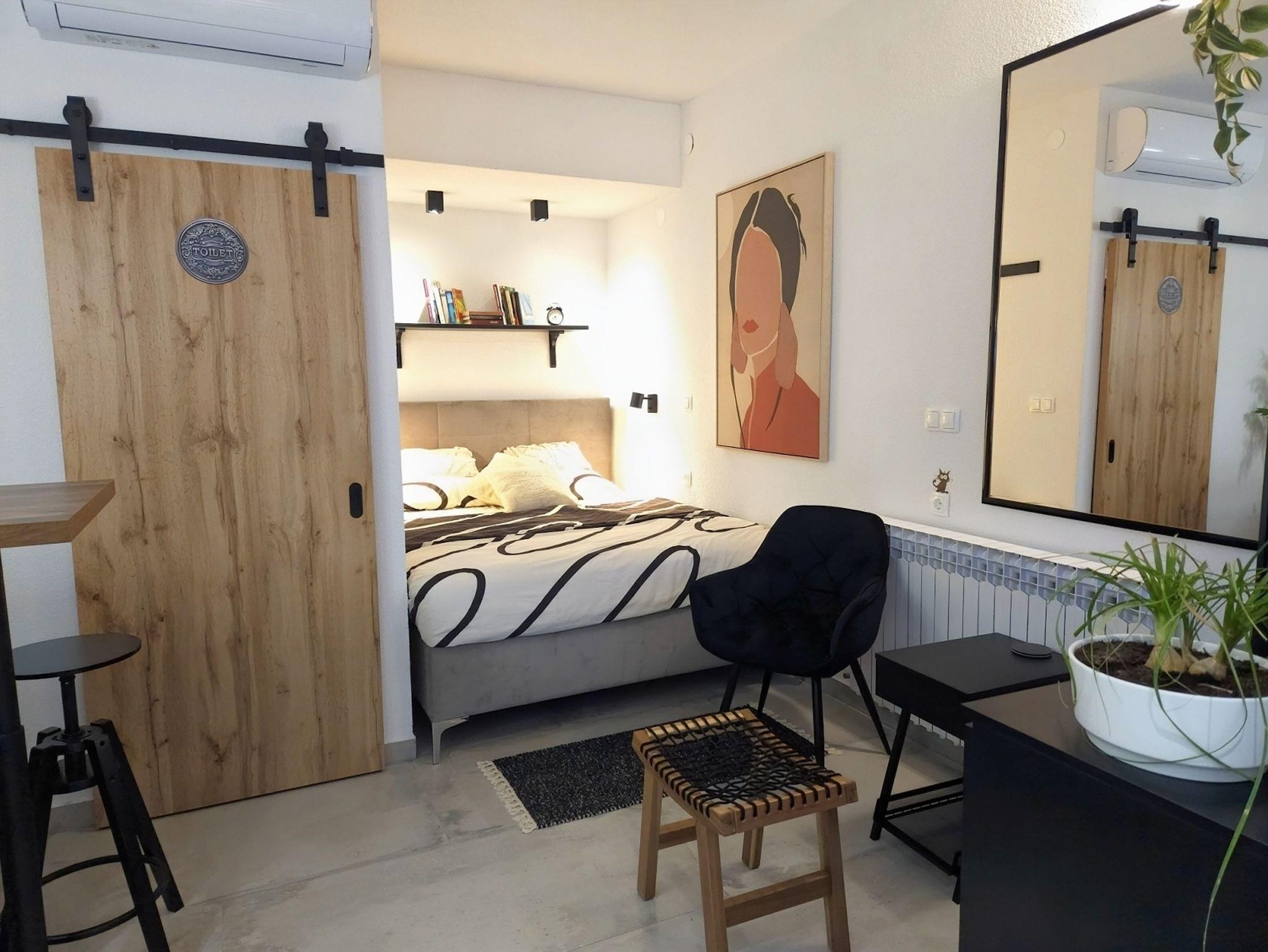 Studio bietet Platz für 2 Gäste. Die Betten sind in Schlafzimmern, die es 1 gibt, innerhalb einer Gesamtfläche von 20m2, angeordnet. Die Gäste haben eine eigene Terrasse zur Verfügung, auf der sie in warmen Sommernächten genießen können. Es ist erlaubt, Speisen auf dem Gemeinschafts-Grill vorzubereiten. IM PREIS INBEGRIFFEN: Kurtaxe, Endreinigung, Klimatisierung, Parkplatz, Internet, Bügeleisen, Bügelbrett, Föhn. VERBINDLICHE ZUSÄTZLICHE KOSTEN: Aufzahlung für Kurzaufenthalte (prozentualer Zuschlag pro Nächtigungsanzahl: 30% - 1, 20% - 2, 10% - 3). UNVERBINDLICHE ZUSÄTZLICHE KOSTEN: Zentralheizung (5,00 € pro Nacht). Die Verfügbarkeit zusätzlicher Dienstleistungen in Ihrem reservierten Termin und die Preise derselben (falls nicht aufgeführt) müssen im Voraus überprüft werden. Zusätzliche Dienstleistungen die in der Zahlungsaufforderung nicht aufgeführt sind werden direkt beim Vermieter bezahlt, angenommen der Gast nutzt auch diese. Ermäßigung auf den Grundpreis: Gratistag 14=13 (bei einem Aufenthalt von 14 Tagen oder mehr erhalten Sie einen Gratistag für den Aufenthalt bis 31.12.26).