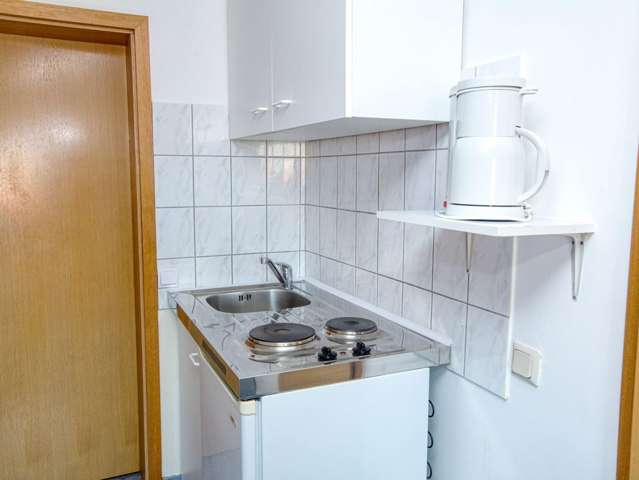 Studio bietet Platz für 2 Gäste. Die Betten sind in Schlafzimmern, die es 1 gibt, innerhalb einer Gesamtfläche von 16m2, angeordnet. Es ist erlaubt, Speisen auf dem Gemeinschafts-Grill vorzubereiten. Die reservierte Unterkunftseinheit verfügt über einen gemeinsame Terrasse. IM PREIS INBEGRIFFEN: Kurtaxe, Endreinigung, Klimatisierung, Parkplatz, Internet. VERBINDLICHE ZUSÄTZLICHE KOSTEN: Aufzahlung für Kurzaufenthalte (prozentualer Zuschlag pro Nächtigungsanzahl: 30% - 1, 20% - 2, 10% - 3). UNVERBINDLICHE ZUSÄTZLICHE KOSTEN: Wäschewaschen (3,00 € Waschen). Die Verfügbarkeit zusätzlicher Dienstleistungen in Ihrem reservierten Termin und die Preise derselben (falls nicht aufgeführt) müssen im Voraus überprüft werden. Zusätzliche Dienstleistungen die in der Zahlungsaufforderung nicht aufgeführt sind werden direkt beim Vermieter bezahlt, angenommen der Gast nutzt auch diese. Ermäßigung auf den Grundpreis: Gratistag 14=13 (bei einem Aufenthalt von 14 Tagen oder mehr erhalten Sie einen Gratistag für den Aufenthalt bis 31.12.26).