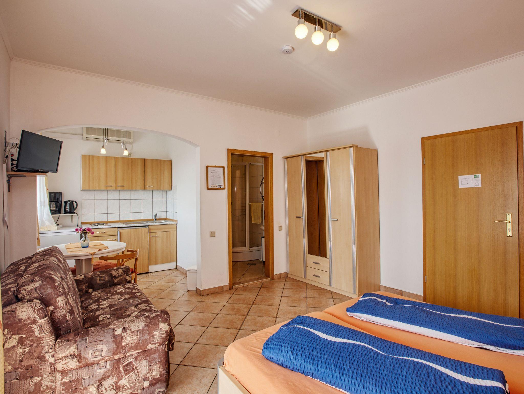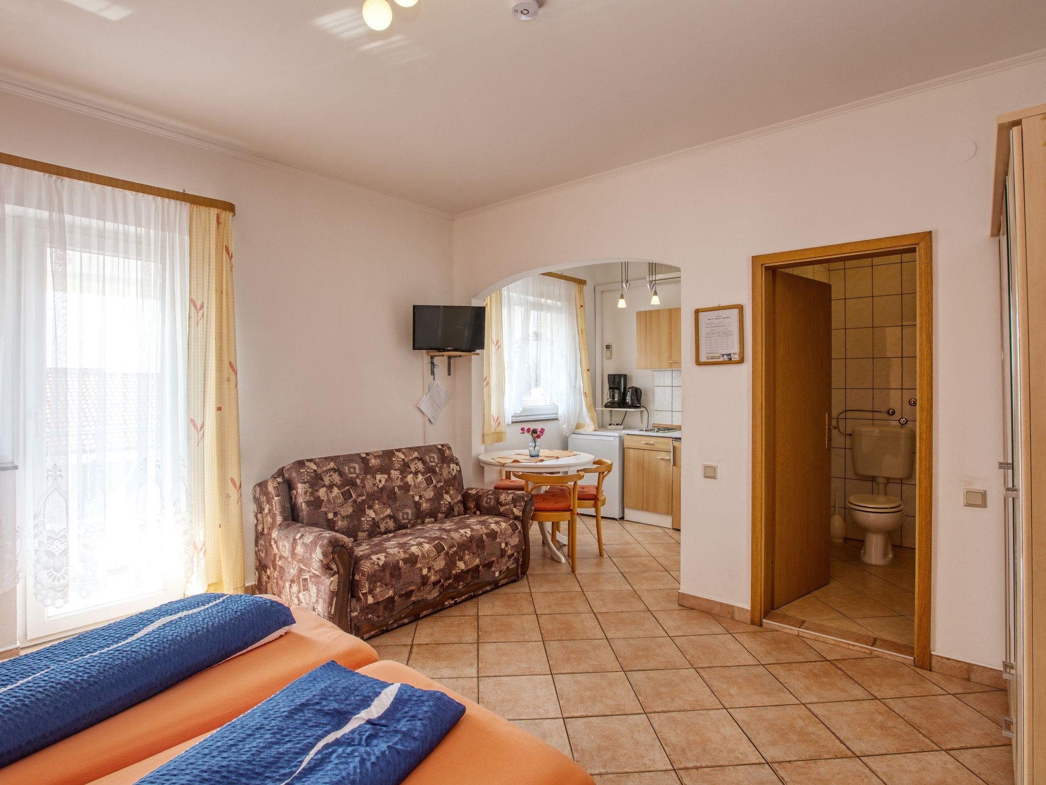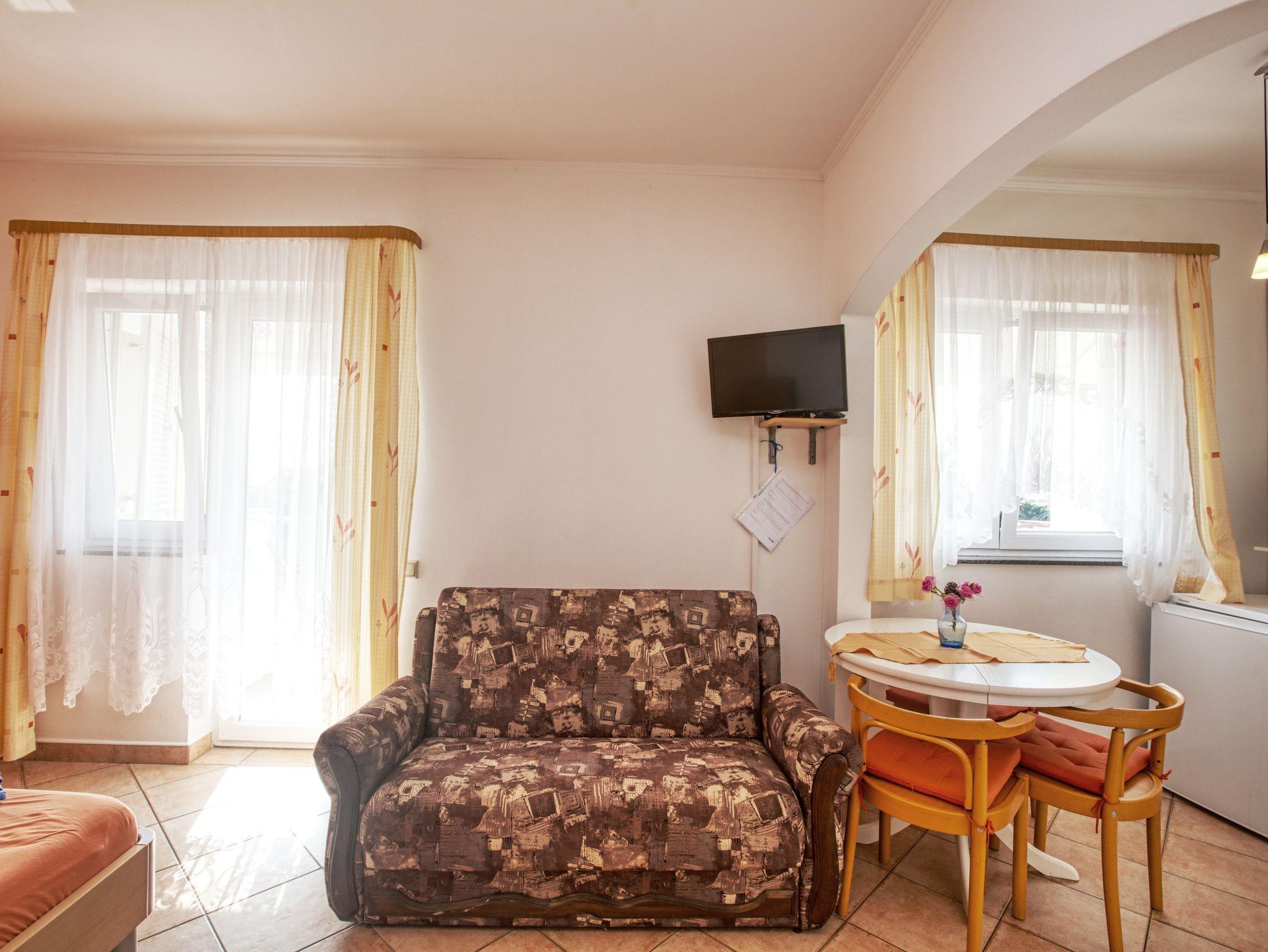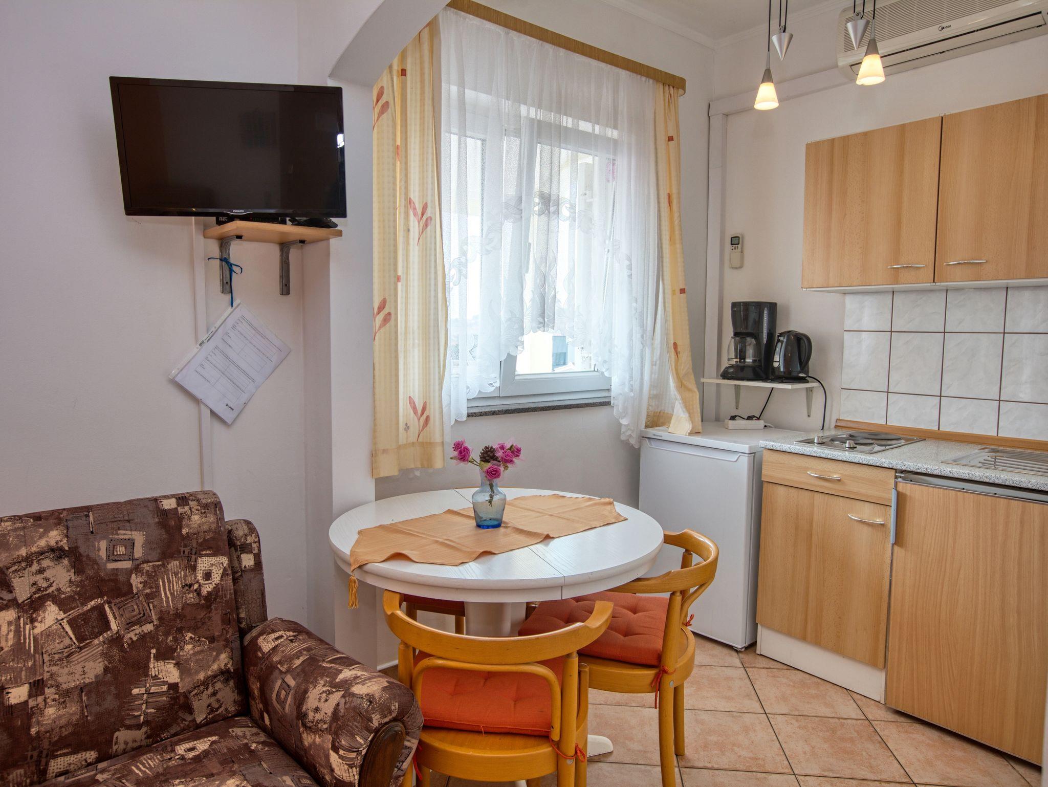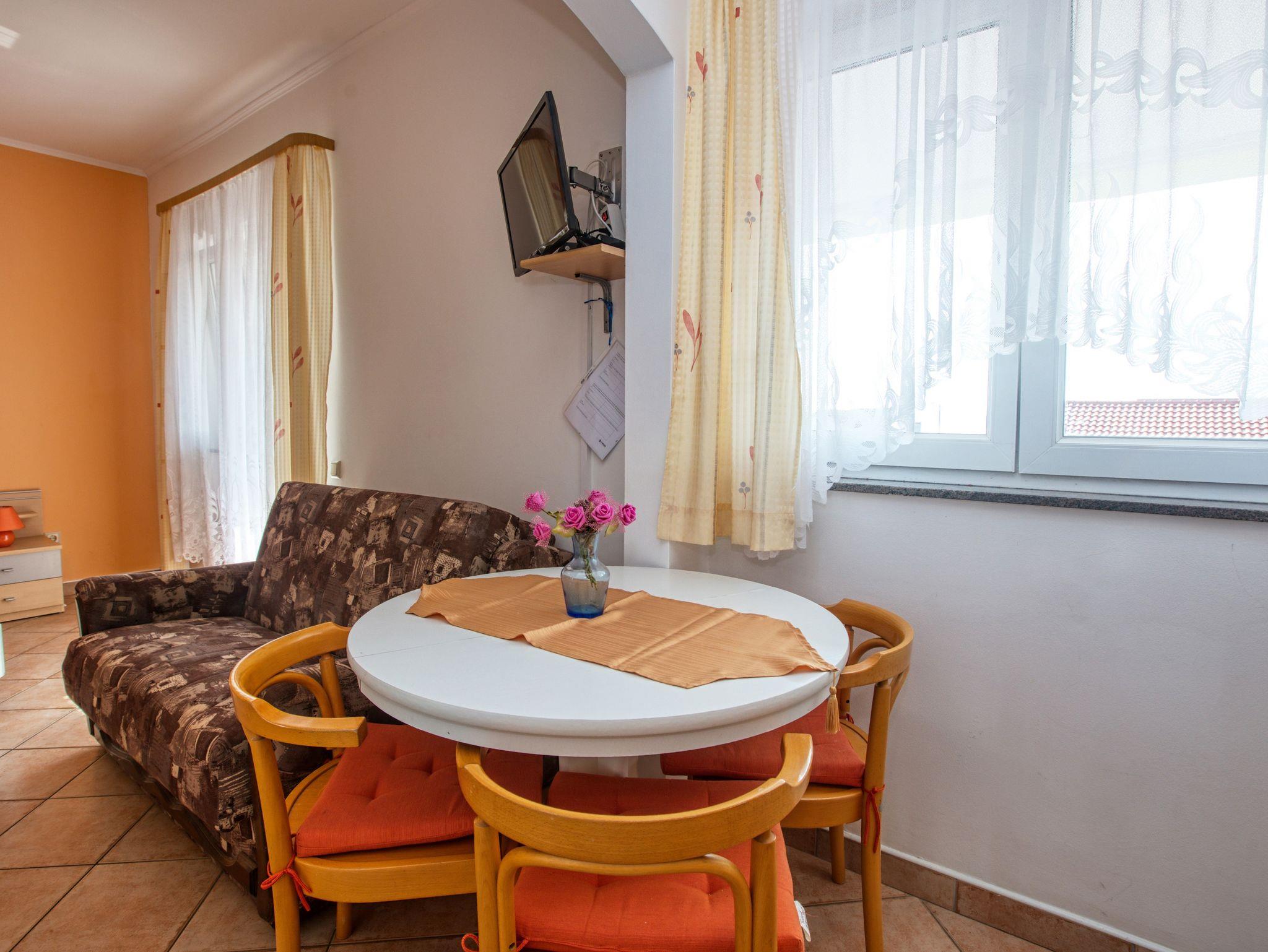Studio bietet Platz für 3 Gäste. Die Betten sind in Schlafzimmern, die es 1 gibt, und in Esszimmer, innerhalb einer Gesamtfläche von 25m2, angeordnet. Die Gäste haben einen eigenen Balkon zur Verfügung, auf der sie in warmen Sommernächten genießen können. Das Studio-Apartment bietet Meerblick. Es ist erlaubt, Speisen auf dem Gemeinschafts-Grill vorzubereiten. IM PREIS INBEGRIFFEN: Kurtaxe, Endreinigung, Klimatisierung, Parkplatz, Internet. VERBINDLICHE ZUSÄTZLICHE KOSTEN: Aufzahlung für Kurzaufenthalte (prozentualer Zuschlag pro Nächtigungsanzahl: 30% - 1, 20% - 2, 10% - 3). UNVERBINDLICHE ZUSÄTZLICHE KOSTEN: Wäschewaschen (3,00 € Waschen). Die Verfügbarkeit zusätzlicher Dienstleistungen in Ihrem reservierten Termin und die Preise derselben (falls nicht aufgeführt) müssen im Voraus überprüft werden. Zusätzliche Dienstleistungen die in der Zahlungsaufforderung nicht aufgeführt sind werden direkt beim Vermieter bezahlt, angenommen der Gast nutzt auch diese. Ermäßigung auf den Grundpreis: Gratistag 14=13 (bei einem Aufenthalt von 14 Tagen oder mehr erhalten Sie einen Gratistag für den Aufenthalt bis 31.12.26).
