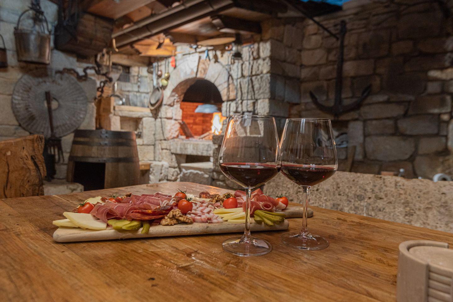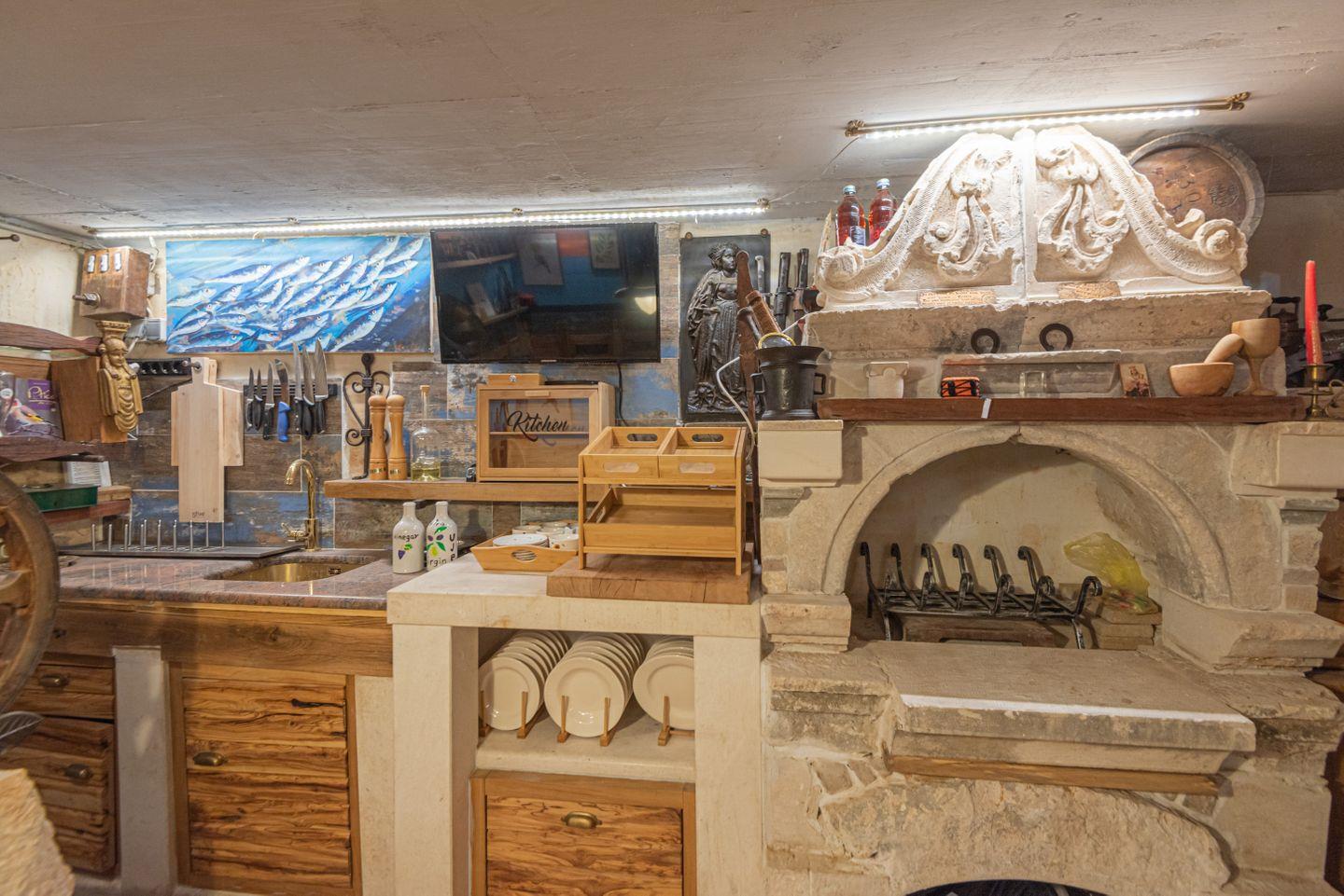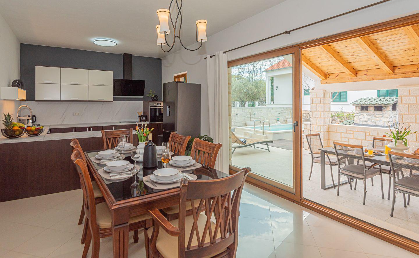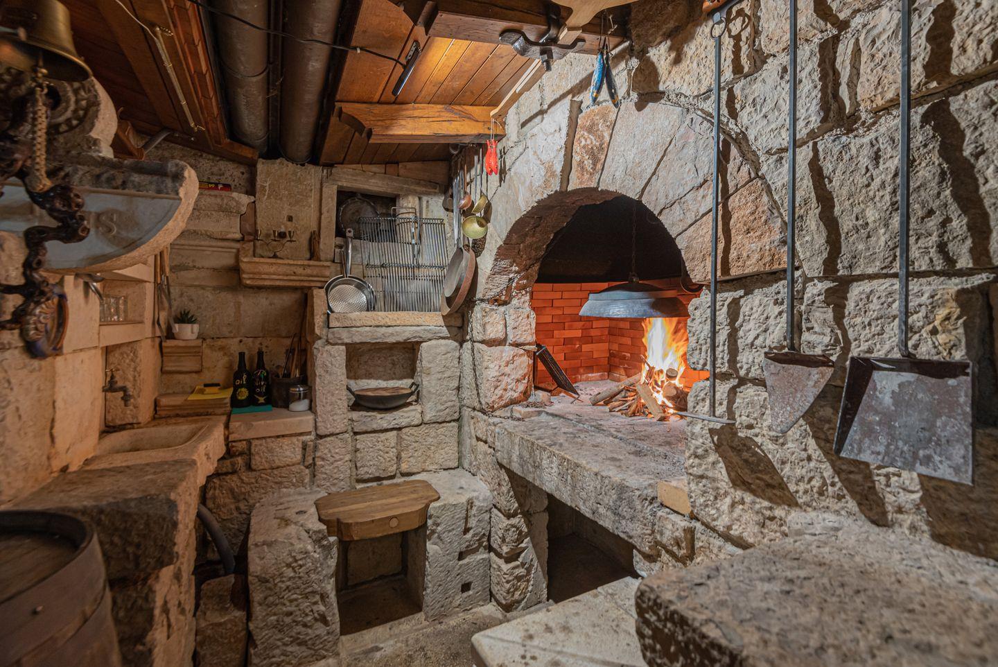 Ein besonderes Highlight ist die Konoba, ein traditioneller kroatischer Aufenthaltsraum mit offenem Ofen, der mit Holz befeuert wird und auch als Grillbereich genutzt werden kann – perfekt für gesellige Stunden.