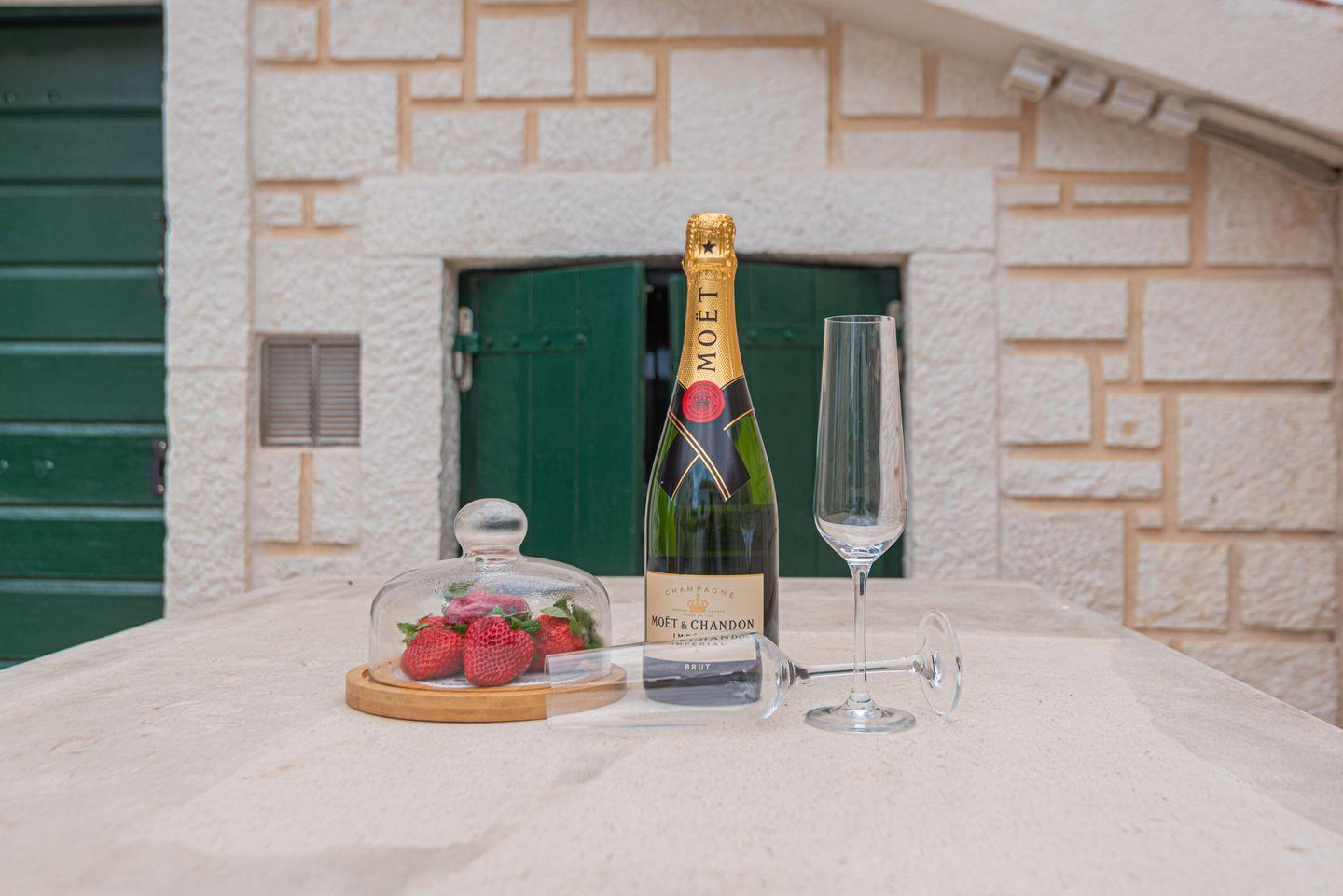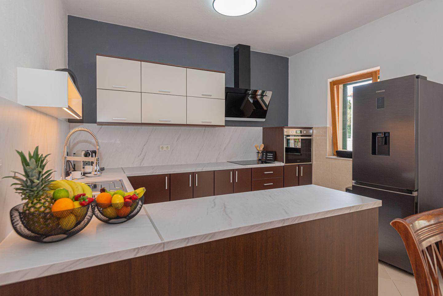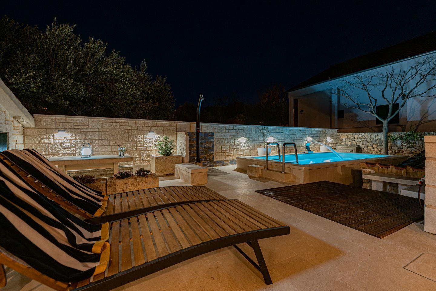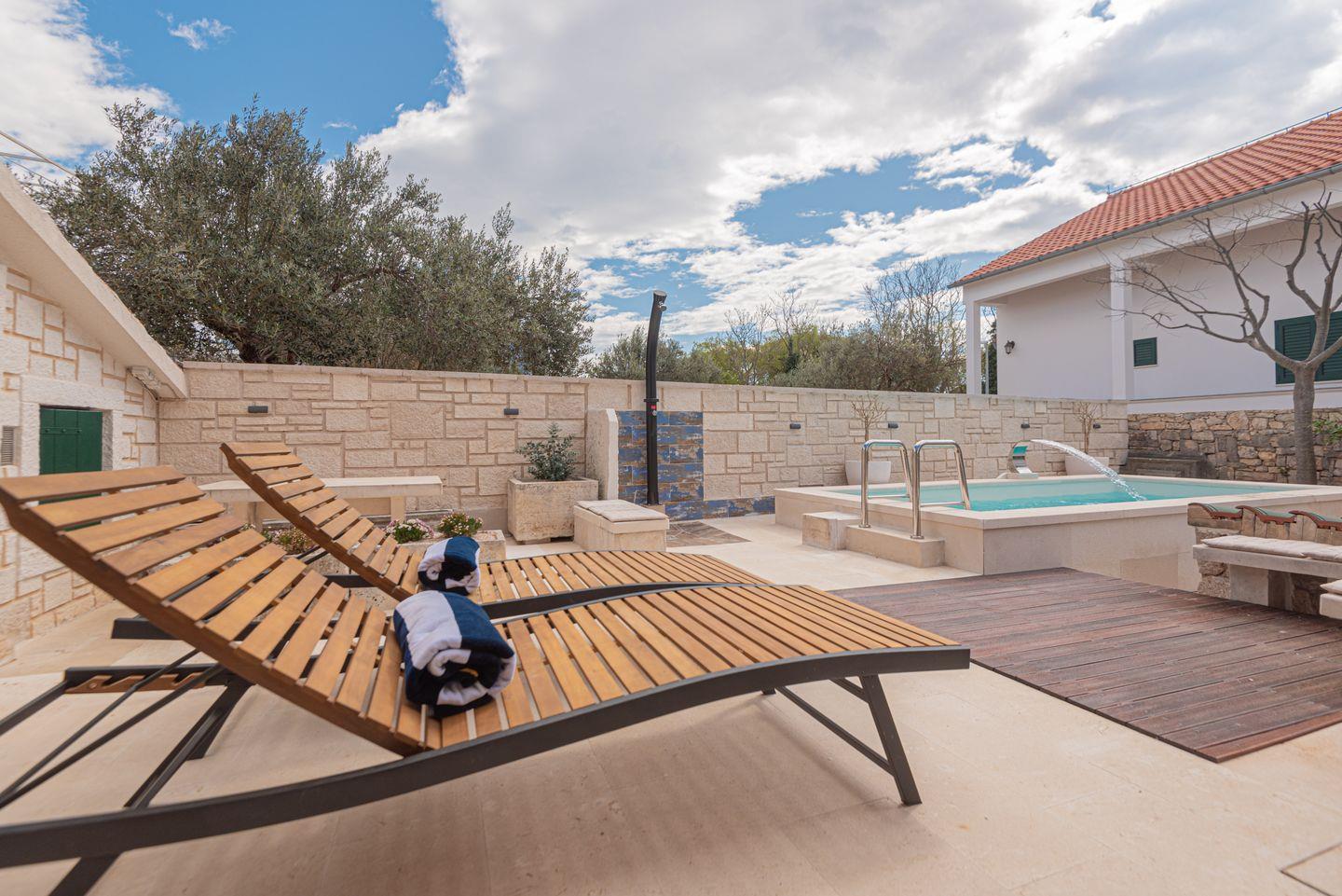 Ein besonderes Highlight ist die Konoba, ein traditioneller kroatischer Aufenthaltsraum mit offenem Ofen, der mit Holz befeuert wird und auch als Grillbereich genutzt werden kann – perfekt für gesellige Stunden.
