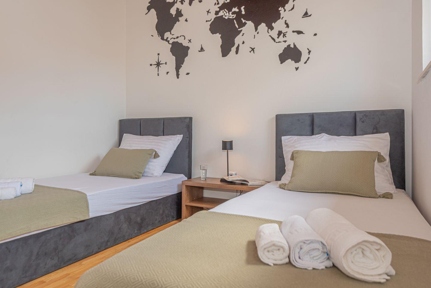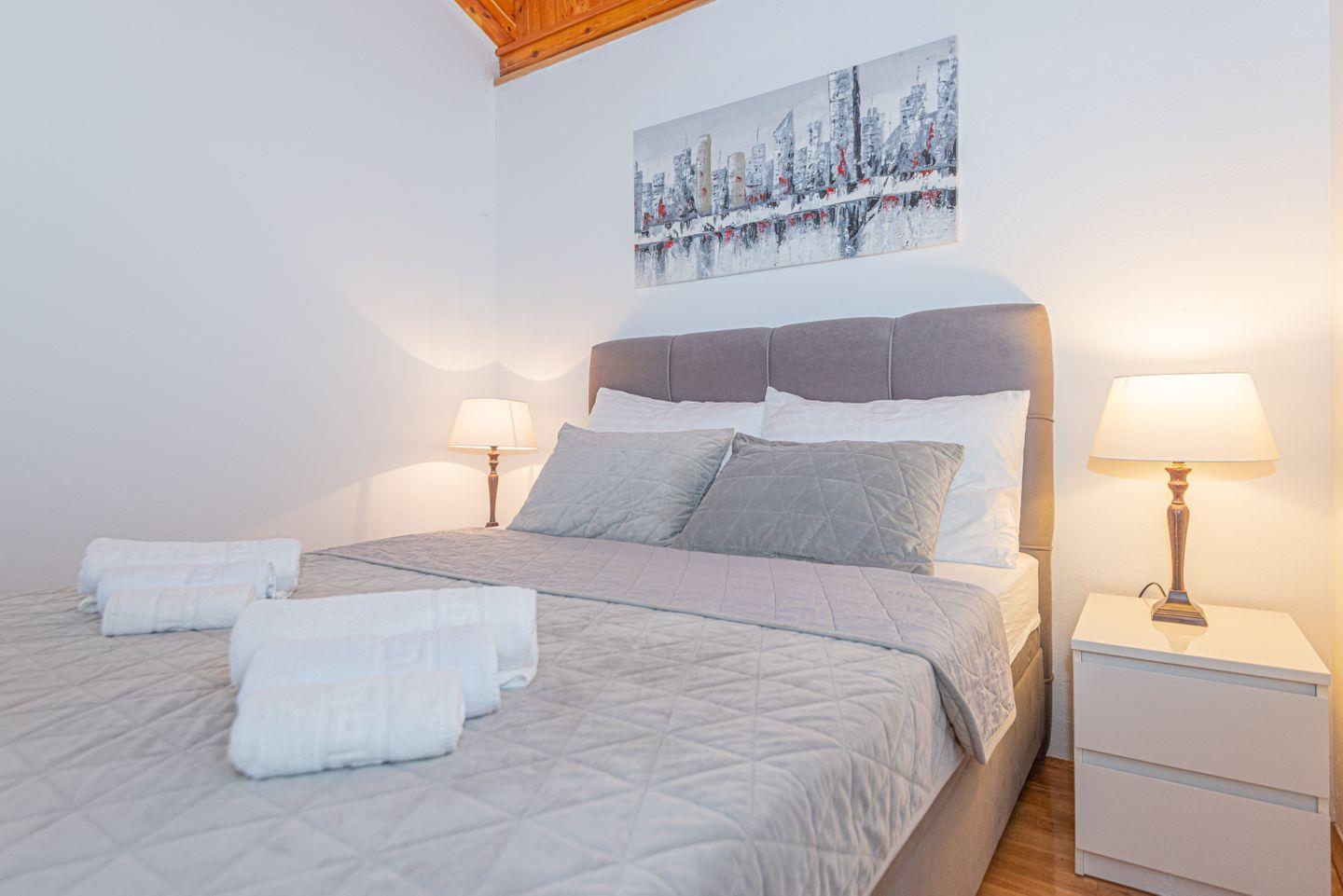 Die Lage ist ruhig und dennoch nah am Stadtzentrum von Vodice, das etwa 1,3 km entfernt ist, während der Flughafen Zadar rund 66 km entfernt liegt. Die Villa Luxury V4 ist der perfekte Ort für Familien oder Freunde, die Komfort, Stil und Entspannung in einem charmanten Ambiente genießen möchten.