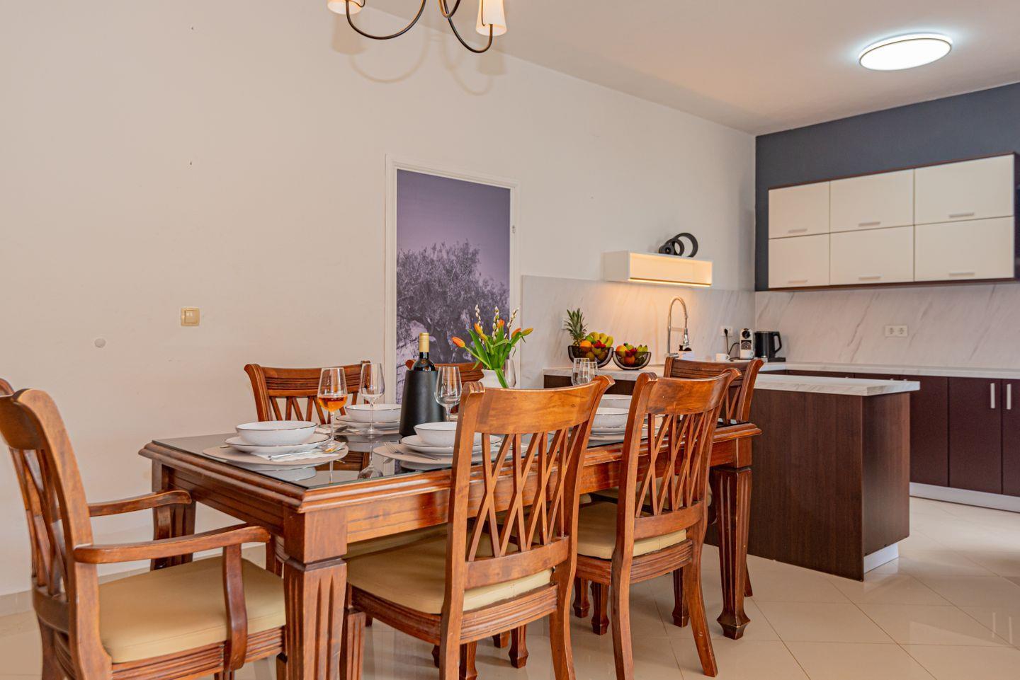 Die Villa bietet zudem WLAN, einen TV mit internationalen Kanälen und gemütliche Sitzbereiche im Garten. Der beheizbare Außenpool und die Terrasse mit Sonnenliegen und Gartenmöbeln laden zum Entspannen unter der Sonne ein. Das Grundstück ist vollständig eingezäunt und bietet Privatparkplätze für zwei Autos. Haustiere sind nicht erlaubt.