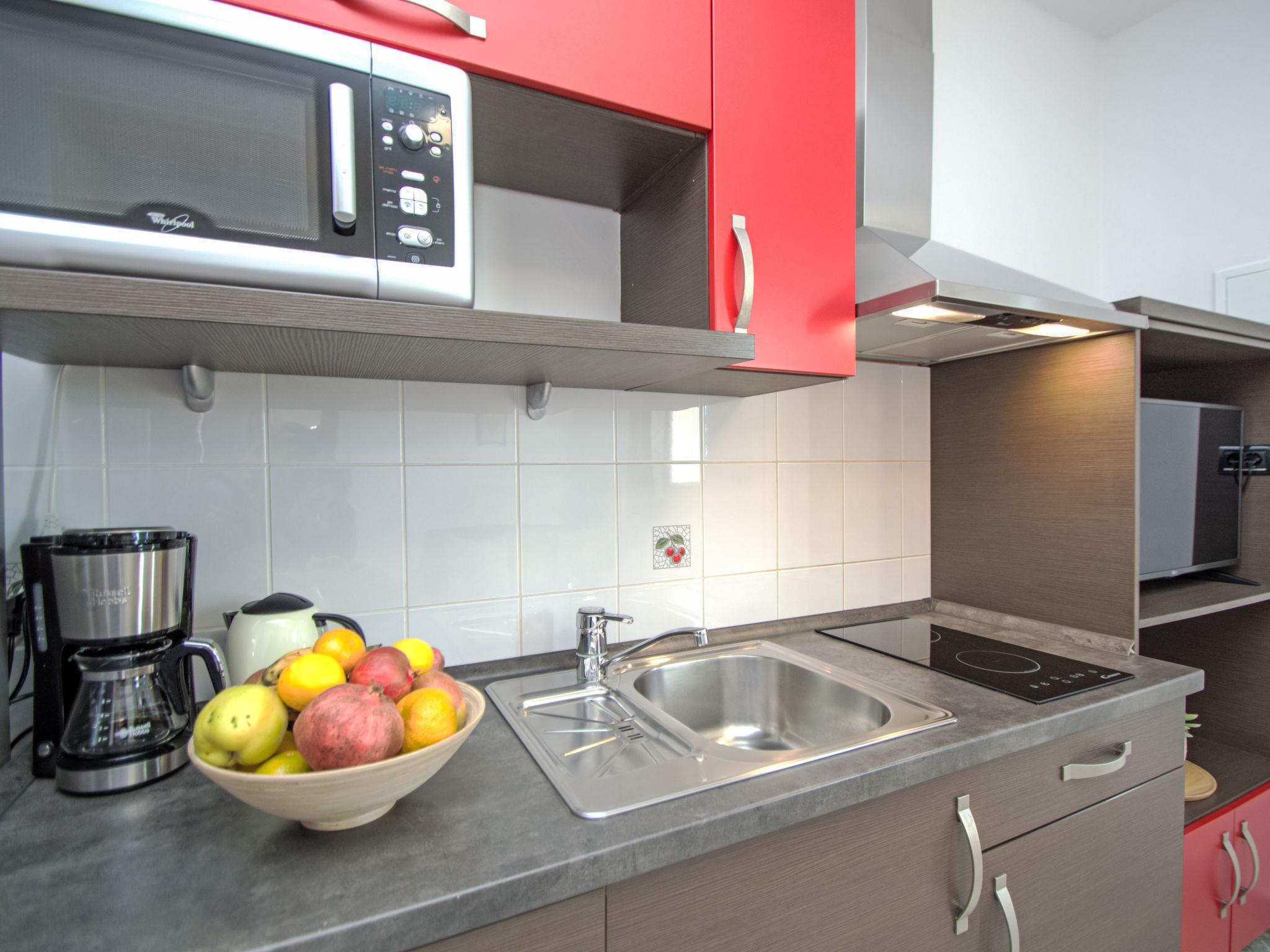 3-room apartment 42 m2 on 1st floor, south facing position. Tasteful and cosy furnishings: living/dining room with satellite TV (flat screen). 1 room with 1 double bed (2 x 90 cm, length 200 cm), air conditioning. Exit to the balcony. 1 room with 2 beds (90 cm, length 200 cm). Exit to the balcony. Open kitchen (dishwasher, 2 induction hot plates, kettle, microwave, freezer, electric coffee machine). Shower/WC. Heating. Balcony 9 m2. Terrace furniture. View of the swimming pool. Facilities: Internet (WiFi, free).