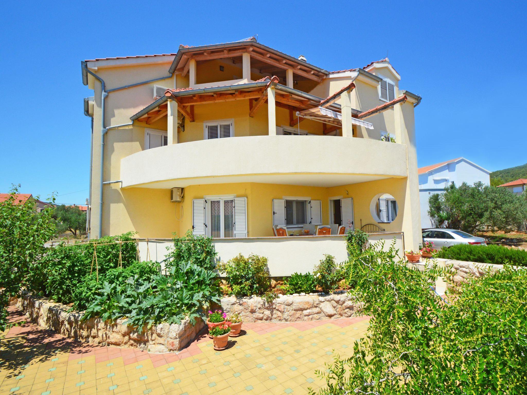 4-room apartment 100 m2, on the upper ground floor, south facing position. Living/dining room 50 m2 with 1 double sofabed (140 cm, length 210 cm), satellite TV (flat screen), air conditioning. Exit to the terrace. 1 room with 1 french bed (160 cm, length 200 cm). 1 room with 1 french bed (180 cm, length 200 cm). 1 room with 1 x 2 bunk beds (90 cm, length 200 cm). Open kitchen (4 hot plates, oven, dishwasher, microwave, electric coffee machine). Exit to the terrace. Bath/WC, sep. WC. No heating option. Terrace 40 m2, roofed. Terrace furniture. Facilities: washing machine, baby cot, hair dryer. Internet (WiFi, free). 1 small pet/ dog allowed.