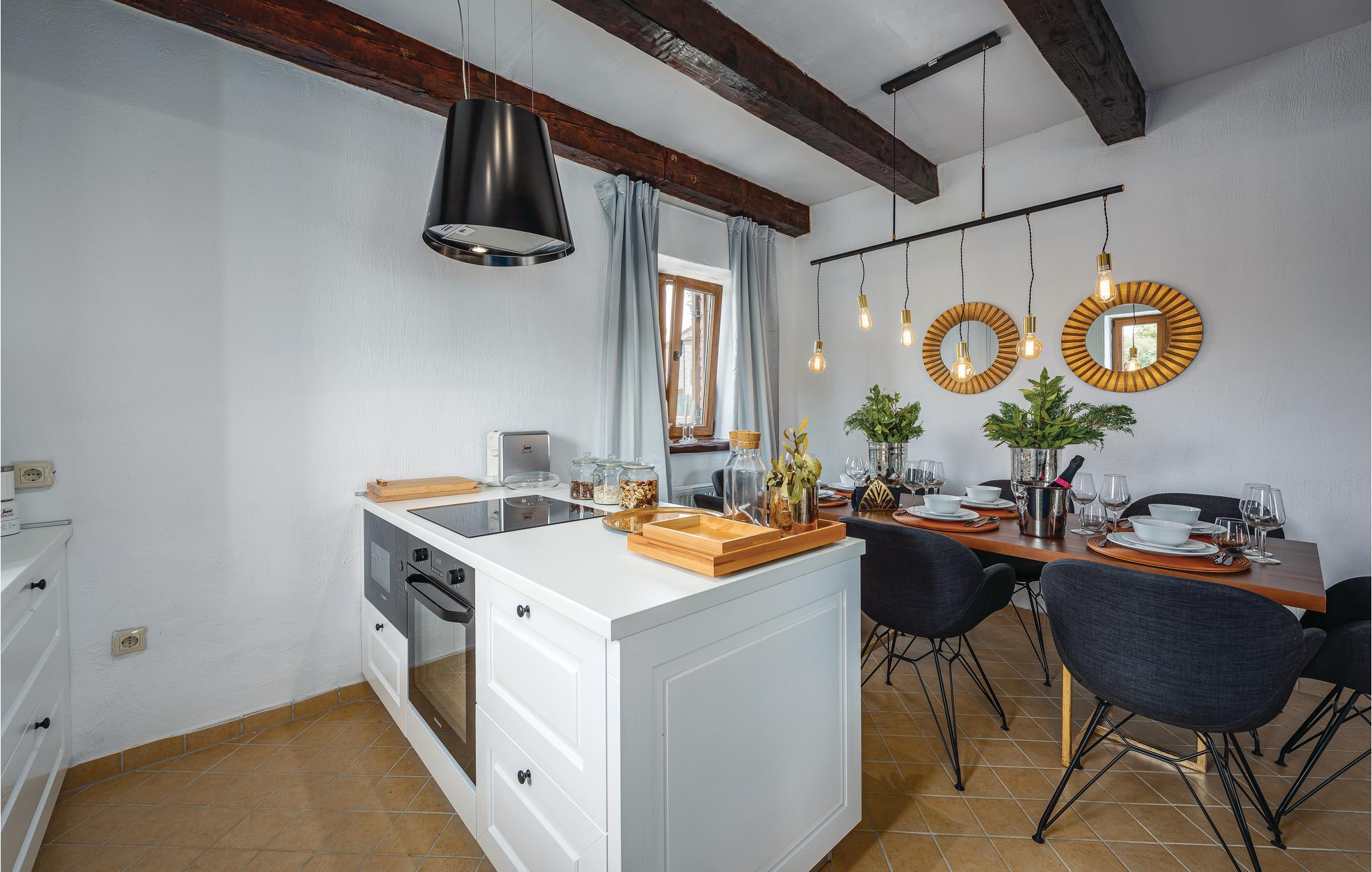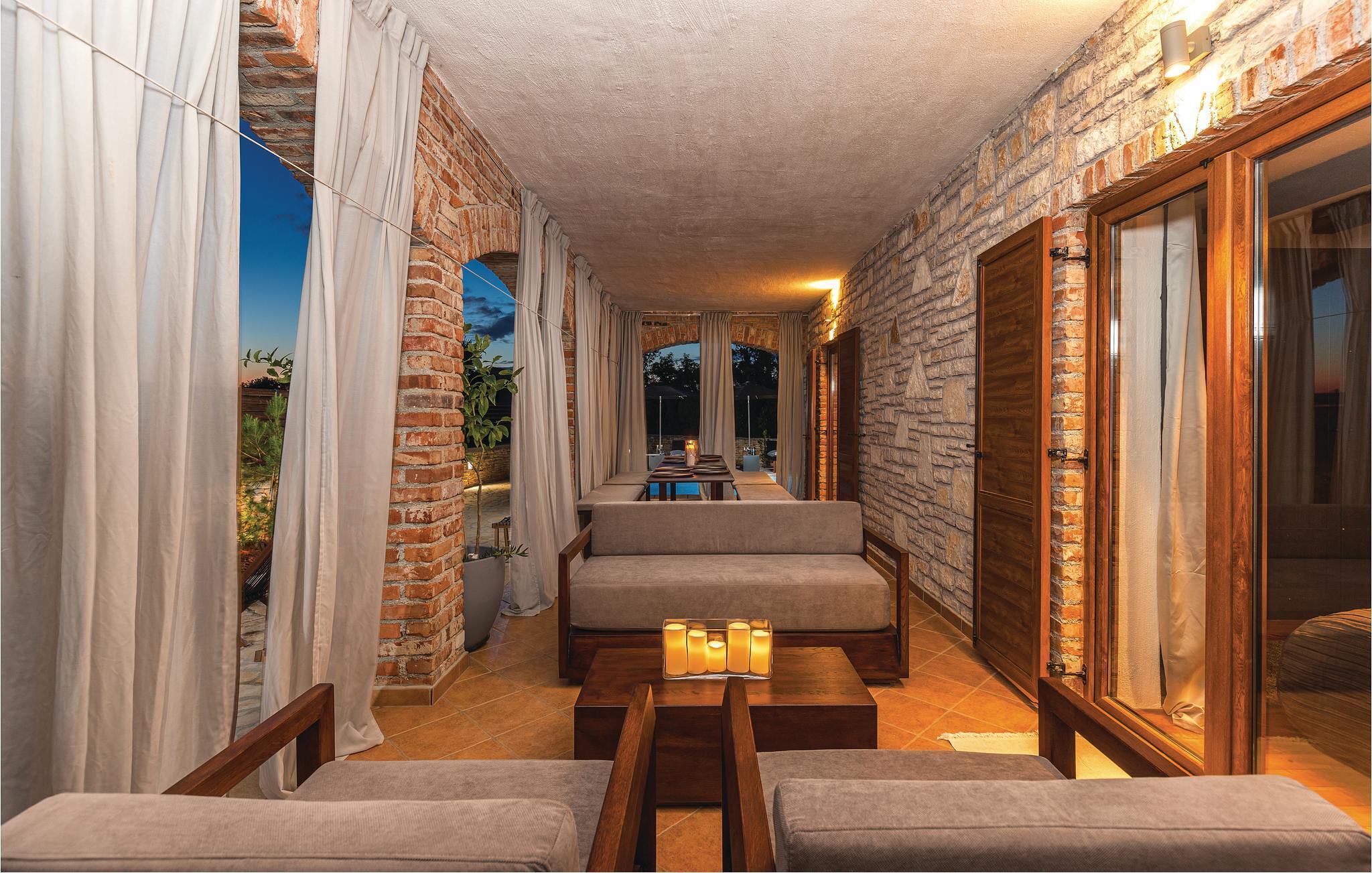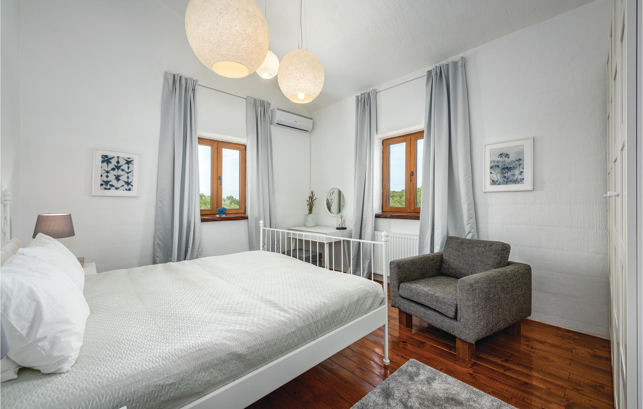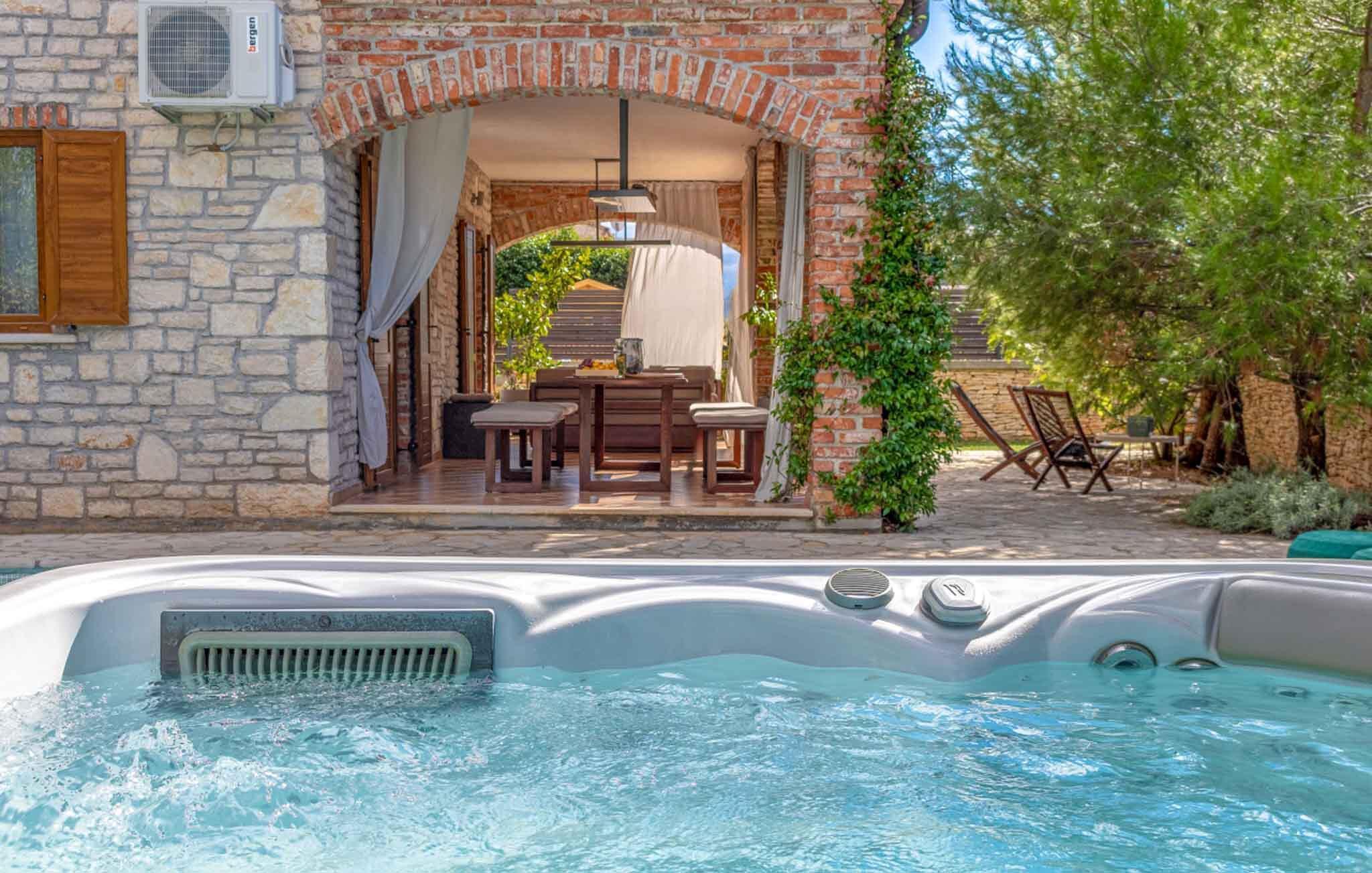 Dette usædvanlige feriehus med privat pool, ligger i en lille by og har en skøn beliggenhed og en komfortable indretning både ude og inde til en afslappet ferie. Huset er indrettet med kærlighed helt ned i de små detaljer og kombinationen af sten og træ, tilføjer huset noget ganske særligt. Poolen med solstole, den indhegnede og velplejede have, samt den dejlige overdækkede veranda med loungeområde og den udendørs grill, sætter prikken over jeres vellykkede deler det krystalklare hav med øerne i Brioni Nationalparken. Tag med på tur til en af disse vidunderlige øer og besøg også den nærliggende by Fažana, hvor der er mange former for underholdning om aftenen og rigtig gode restauranter.