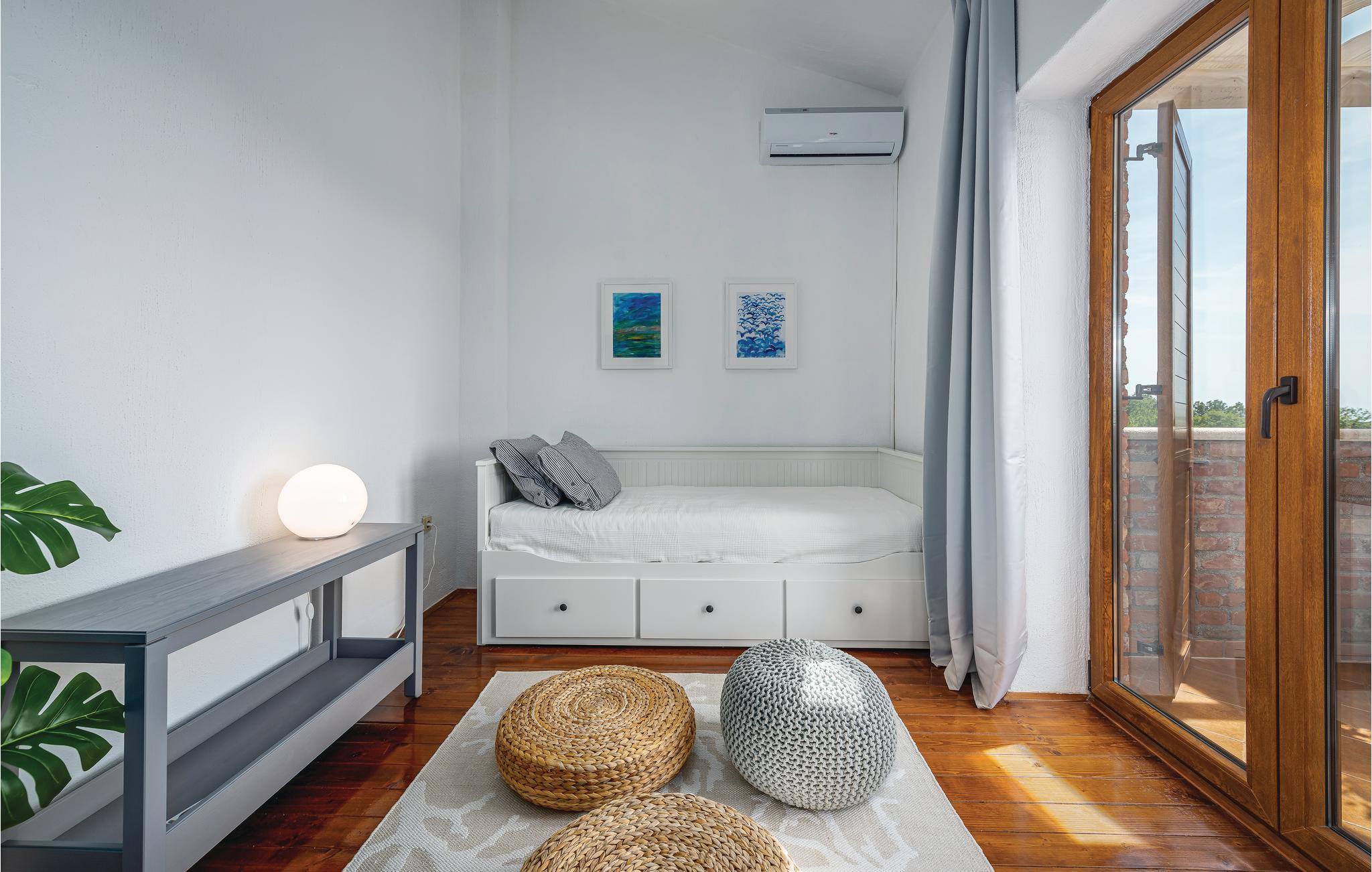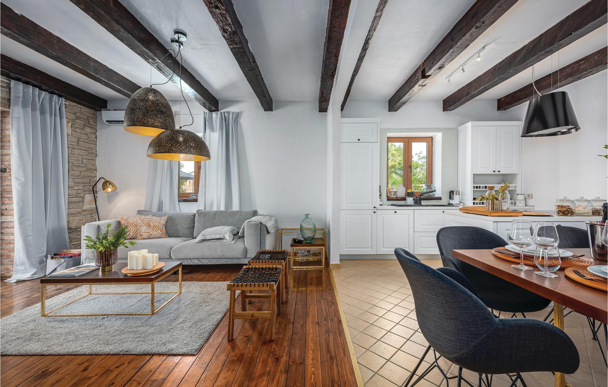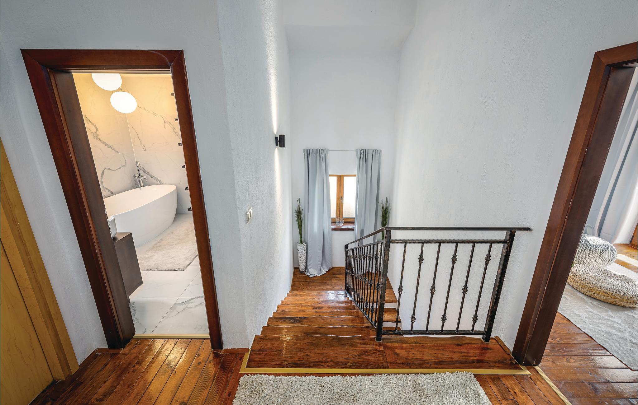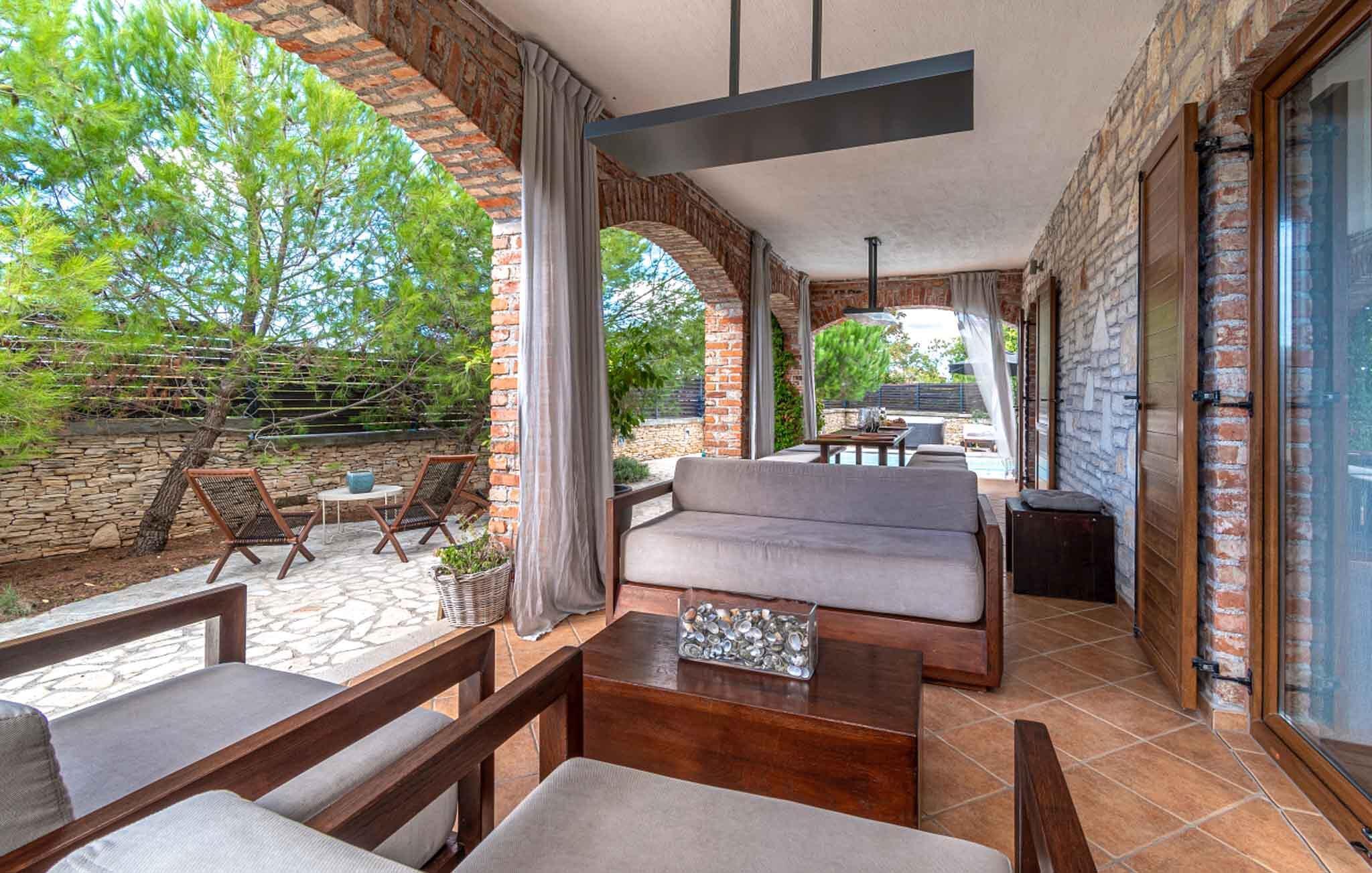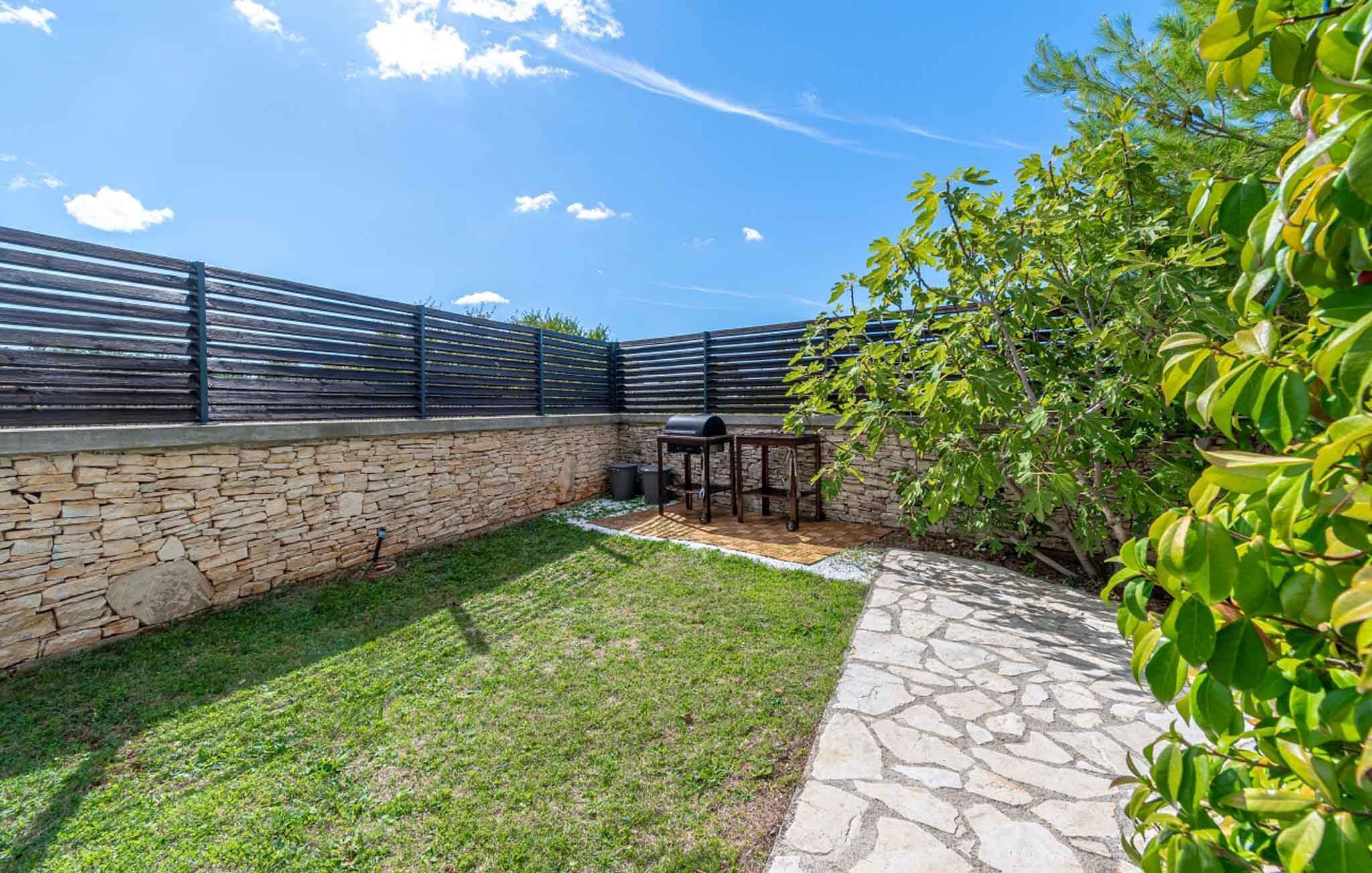 Dette usædvanlige feriehus med privat pool, ligger i en lille by og har en skøn beliggenhed og en komfortable indretning både ude og inde til en afslappet ferie. Huset er indrettet med kærlighed helt ned i de små detaljer og kombinationen af sten og træ, tilføjer huset noget ganske særligt. Poolen med solstole, den indhegnede og velplejede have, samt den dejlige overdækkede veranda med loungeområde og den udendørs grill, sætter prikken over jeres vellykkede deler det krystalklare hav med øerne i Brioni Nationalparken. Tag med på tur til en af disse vidunderlige øer og besøg også den nærliggende by Fažana, hvor der er mange former for underholdning om aftenen og rigtig gode restauranter.