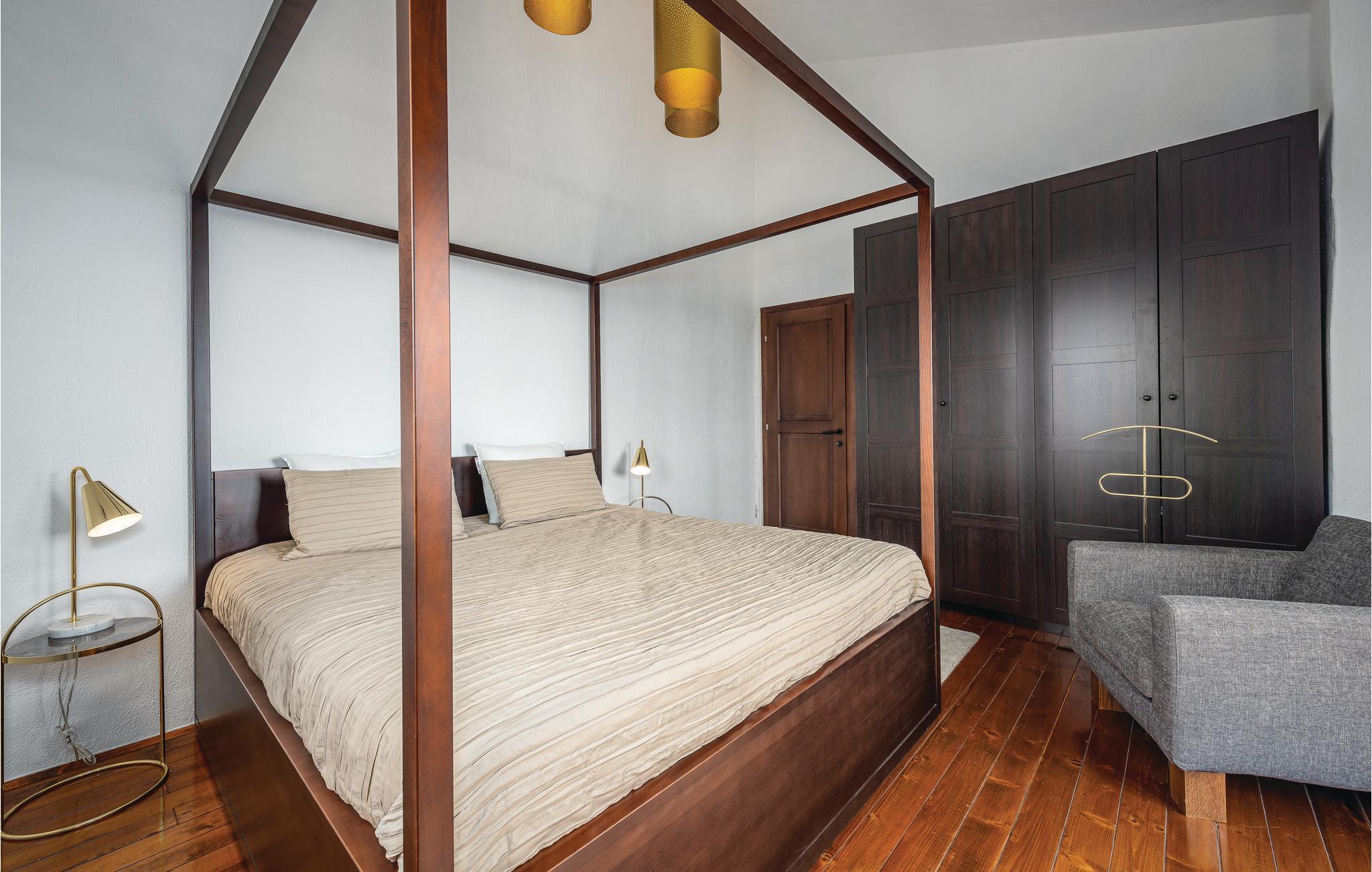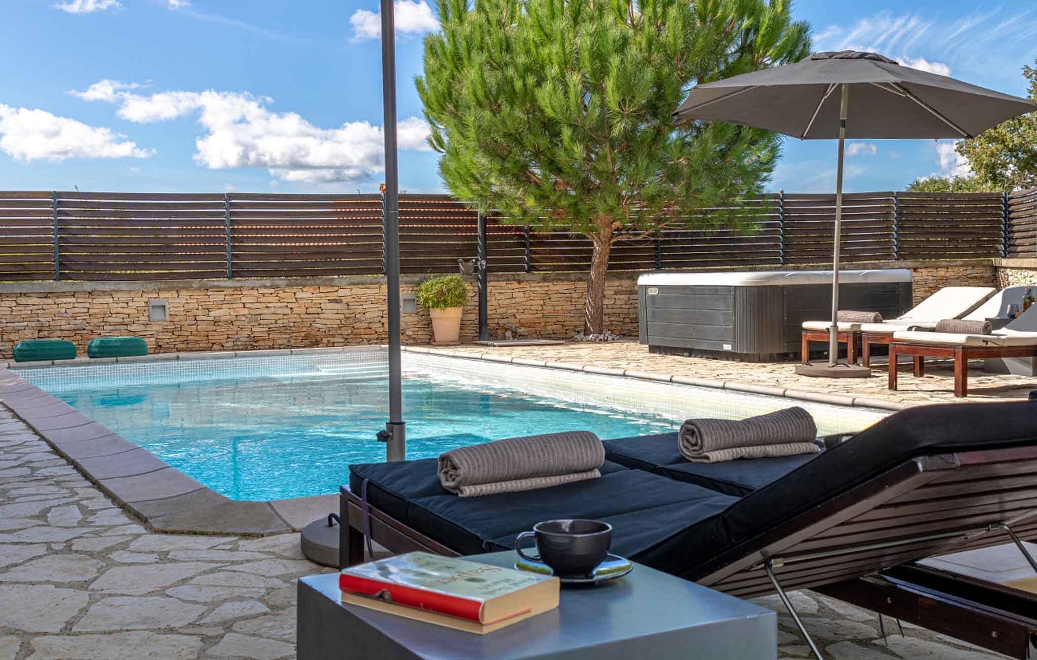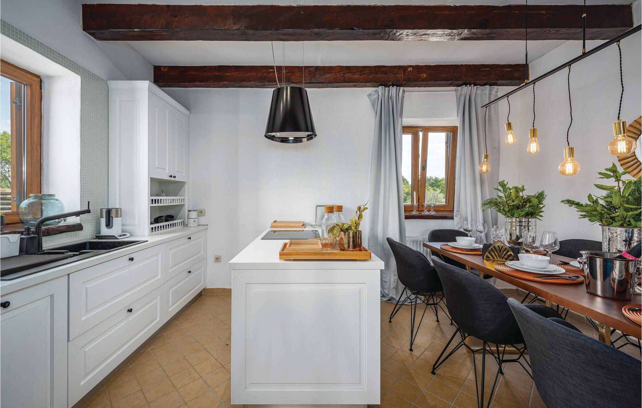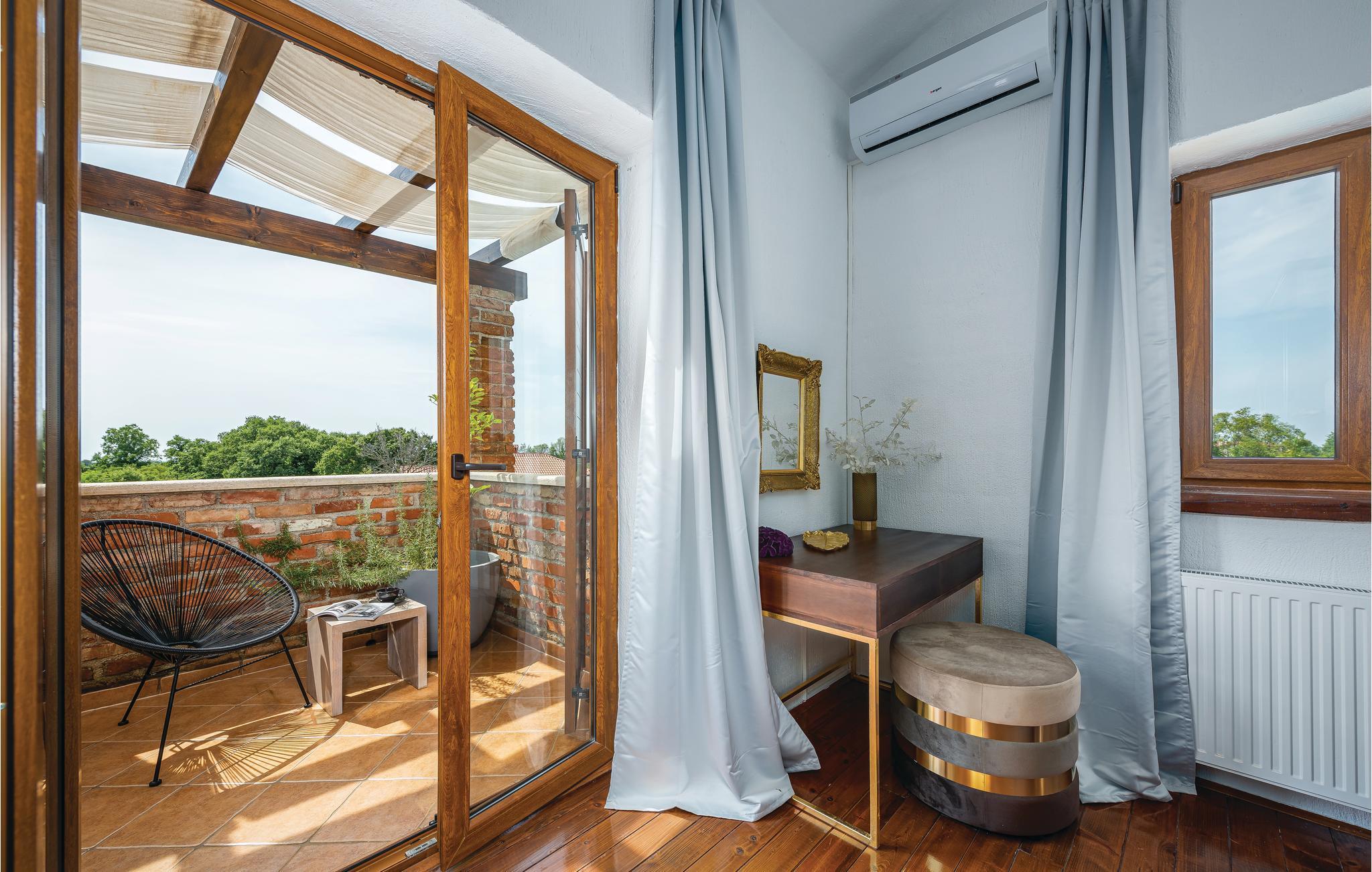 Dette usædvanlige feriehus med privat pool, ligger i en lille by og har en skøn beliggenhed og en komfortable indretning både ude og inde til en afslappet ferie. Huset er indrettet med kærlighed helt ned i de små detaljer og kombinationen af sten og træ, tilføjer huset noget ganske særligt. Poolen med solstole, den indhegnede og velplejede have, samt den dejlige overdækkede veranda med loungeområde og den udendørs grill, sætter prikken over jeres vellykkede deler det krystalklare hav med øerne i Brioni Nationalparken. Tag med på tur til en af disse vidunderlige øer og besøg også den nærliggende by Fažana, hvor der er mange former for underholdning om aftenen og rigtig gode restauranter.