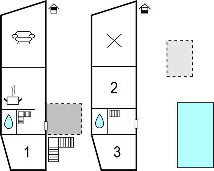 Huset fordeler sig på to etager, er ideelt til en afslappet ferie med en stor familie eller med mange venner. På den øverste etage ligger en rummelig stue og køkkenet. Soveværelse og badeværelse ligger på begge etager. Fra stueplan kommer I ud til poolen, som er skøn at plaske og svømme i, især når det er rigtigt varmt. Nyd hyggelige timer på terrassen, imponer hinanden med lækre retter fra husets udendørs grill.
