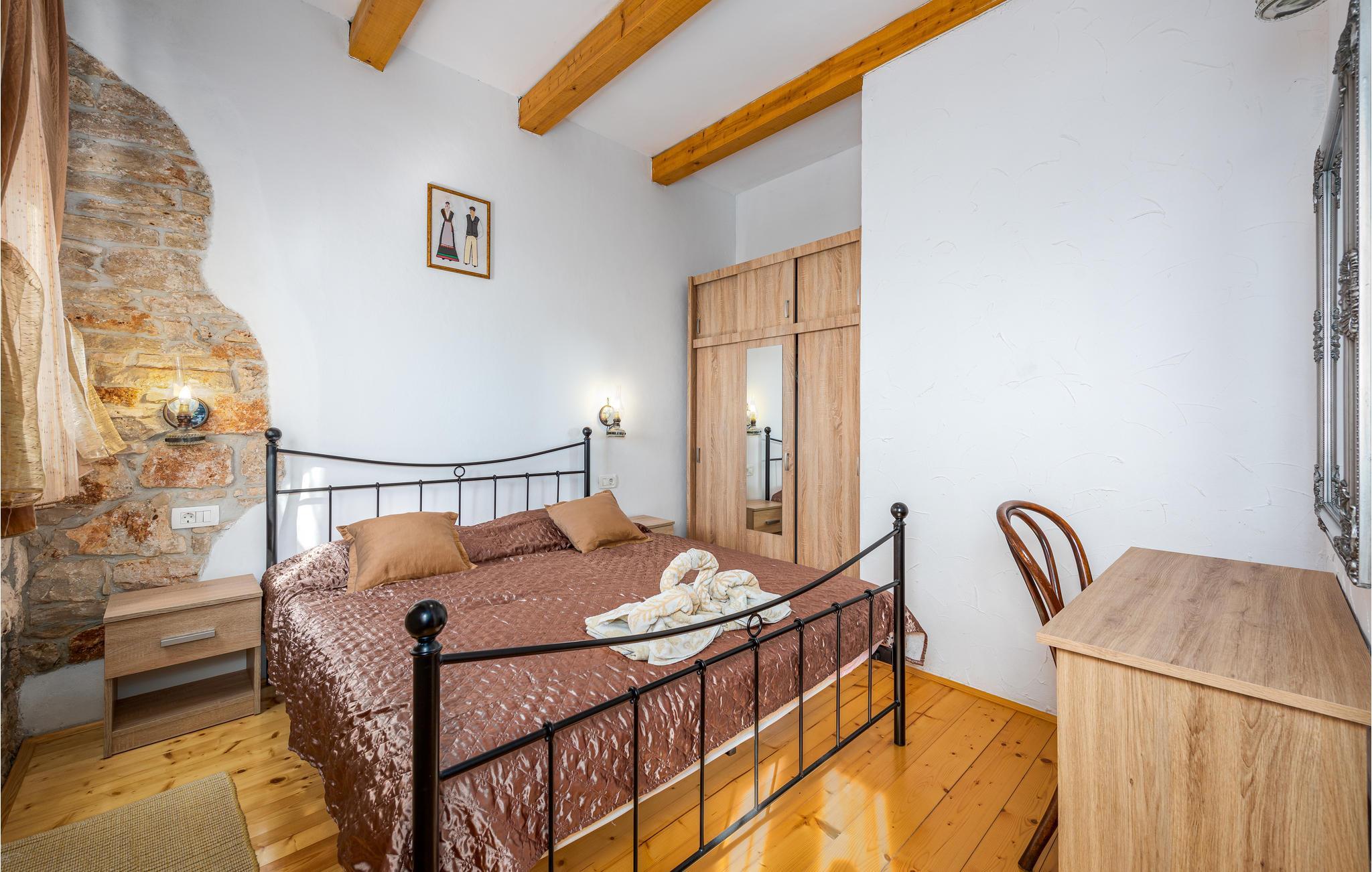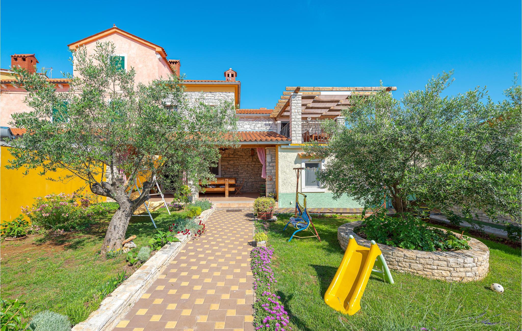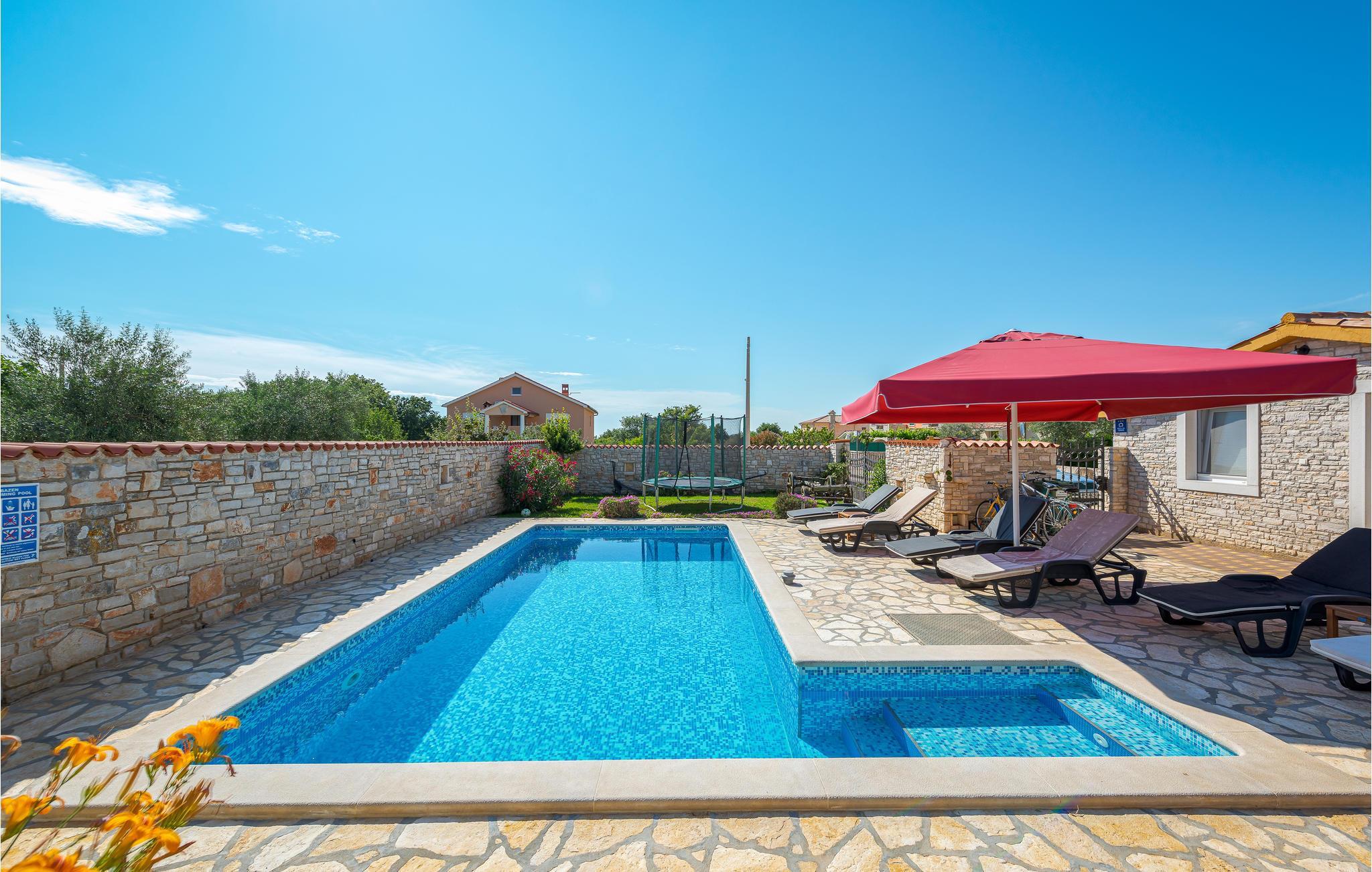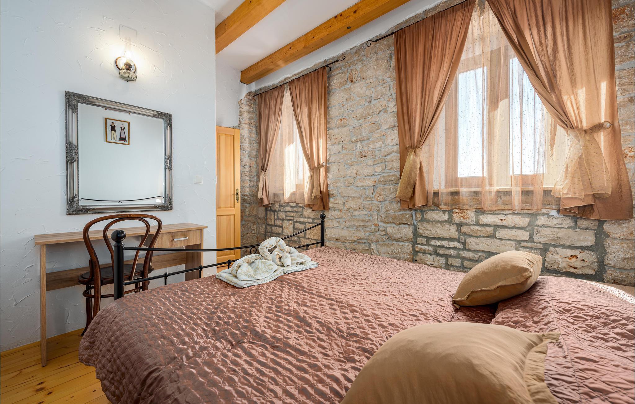 Tilbring en afslappende sommerferie i dette istriske dobbelthus med udendørs pool i den rolige landsby Golubovo. Feriehuset ligger på en generøs indhegnet grund, som også en olivenlund hører til. Da boligen består af to særskilte lejligheder er den også oplagt til to familier eller en gruppe venner, der vil på ferie sammen uden at give afkald på deres privatsfære. Den ene lejlighed ligger i stueetagen, mens den anden er fordelt over stueetage og første sal. På terrassen i stuen med massivt træbord har I god plads til at tilbringe dejlige timer i det fri og omkring grillen, mens I venter på et lækkert måltid. Ejeren er erhvervsfisker, og I kan få arrangeret en bådstur med ham. Undervejs kan I få kendskab til særlig fagviden, eller I kan nøjes med at blive sejlet til badning og udflugter på Brijuni.