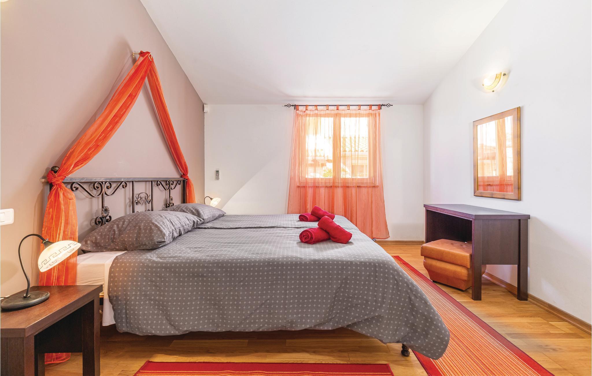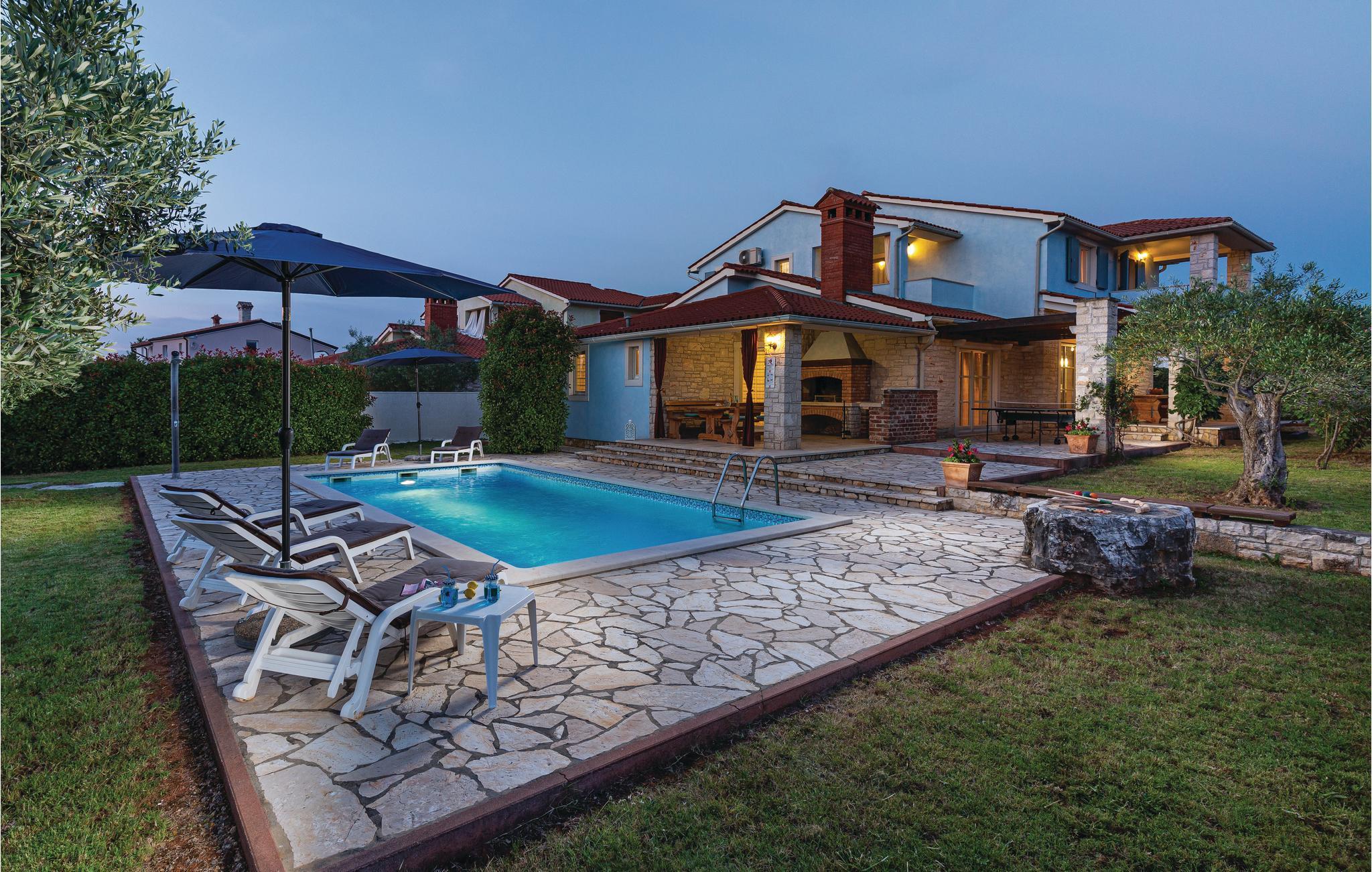 Dette feriehus ligger i den lille by Golubovo, nær den lille by Fazana og øen Brijuni. Huset er meget moderne og luksuriøst indrettet og råder over en skøn privat have med terrasse og swimmingpool. Nyd solen i en af liggestolene eller en god bog i parasollens skygge. I stueplan har I køkken, stue, WC og en stor kamin. På 1. sal har I soveværelserne med badeværelse. I soveværelse 2 er der en kamin. For den aktive gæst er der mulighed for et spil bordtennis. Tag bilen til byen Barbariga, hvor I kan bade og plaske på den dejlige kiselstrand. Besøg også nationalparken Brijuni, hvor I bl.a. finder en safaripark og en golfbane. Derudover byder øen også på forskellige spændende ruiner fra romertiden. Kun 8 km fra huset ligger Pula, som er Istriens største by. Byen byder på mange aktivitetsmuligheder, hyggelige caféer og restauranter og et festligt natteliv.
