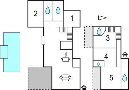 Badeværelse (nr. 5) - WC. Varmt og koldt vand. Bruser